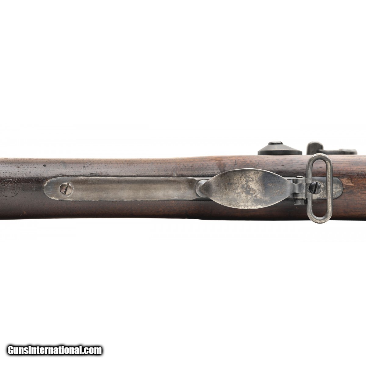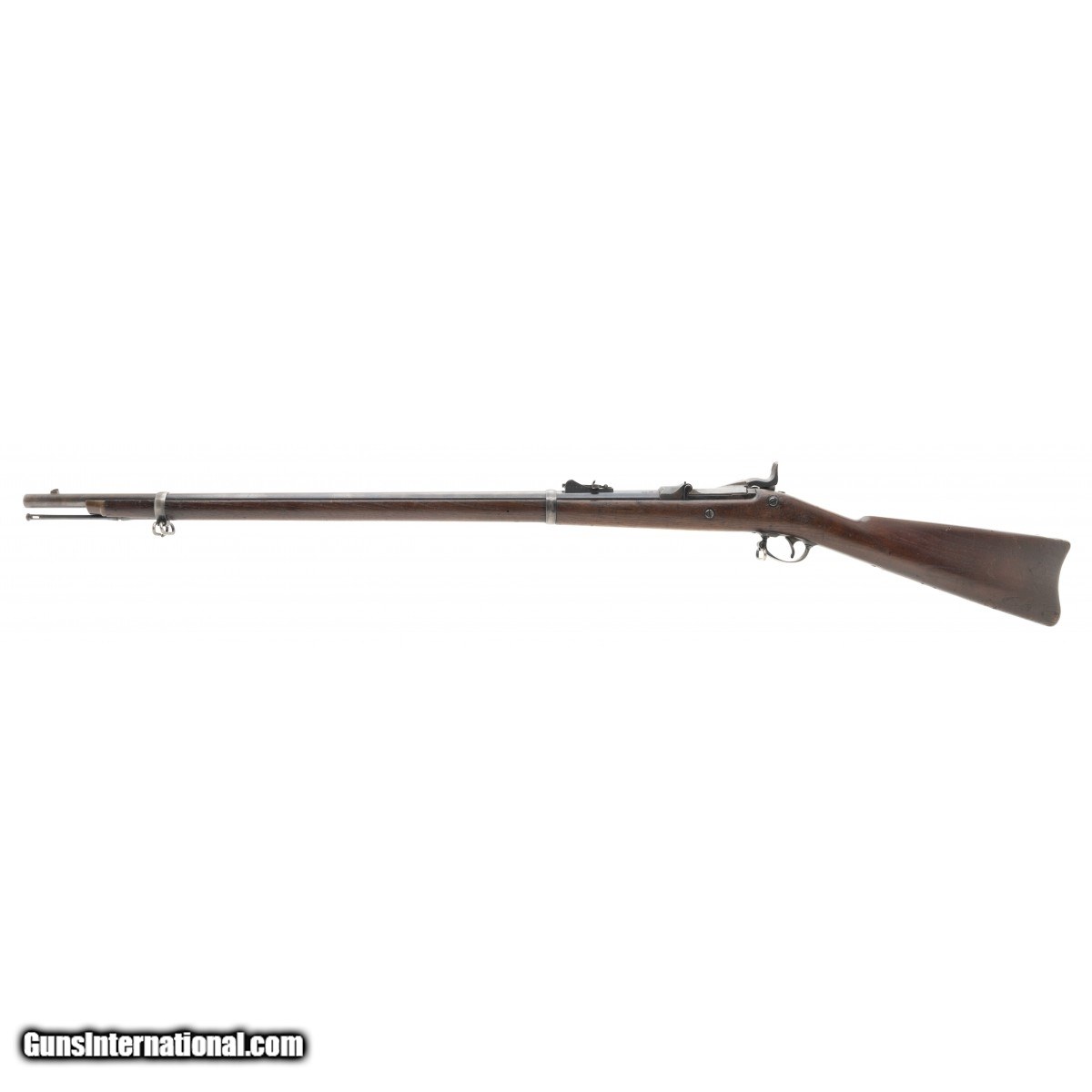 Description: " U.S. Springfield Model 1879 trapdoor rifle chambered .45-70. Metal is a smooth grey patina. Stock is good with a handling wear. Cartouche is dated 1884. Bore is bright and shiny with strong rifling. SOLD Antique: Yes |