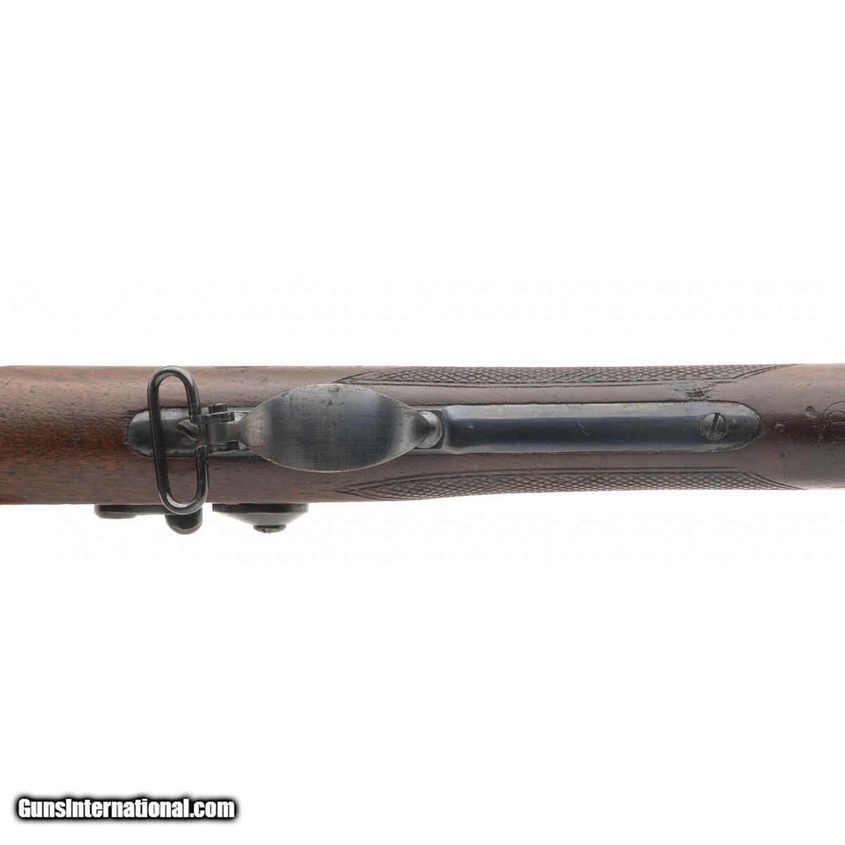 Description: " Serial No. 460008, .45-70, 25.5"" round barrel cut down trapdoor rifle in overall good condition. Barrel finish is starting to turn, case coloring is noted on the breech block. Custom checkering has been added to the wrist. Bore is good with strong rifling visible. SOLD Antique: Yes |