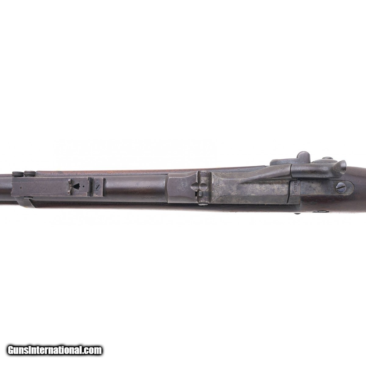 Description: " Serial No. 477770, made in 1890, .45-70, 32 5/8"" round proofed barrel. Barrel and breech are a brown/plum patina, bore has scattered areas of pitting visible, rifling remains strong. Stock has handsome 1889 cartouche, visible nicks, dings and scratches are noted. Action functions correctly. CONSIGNMENT SOLD Antique: Yes |