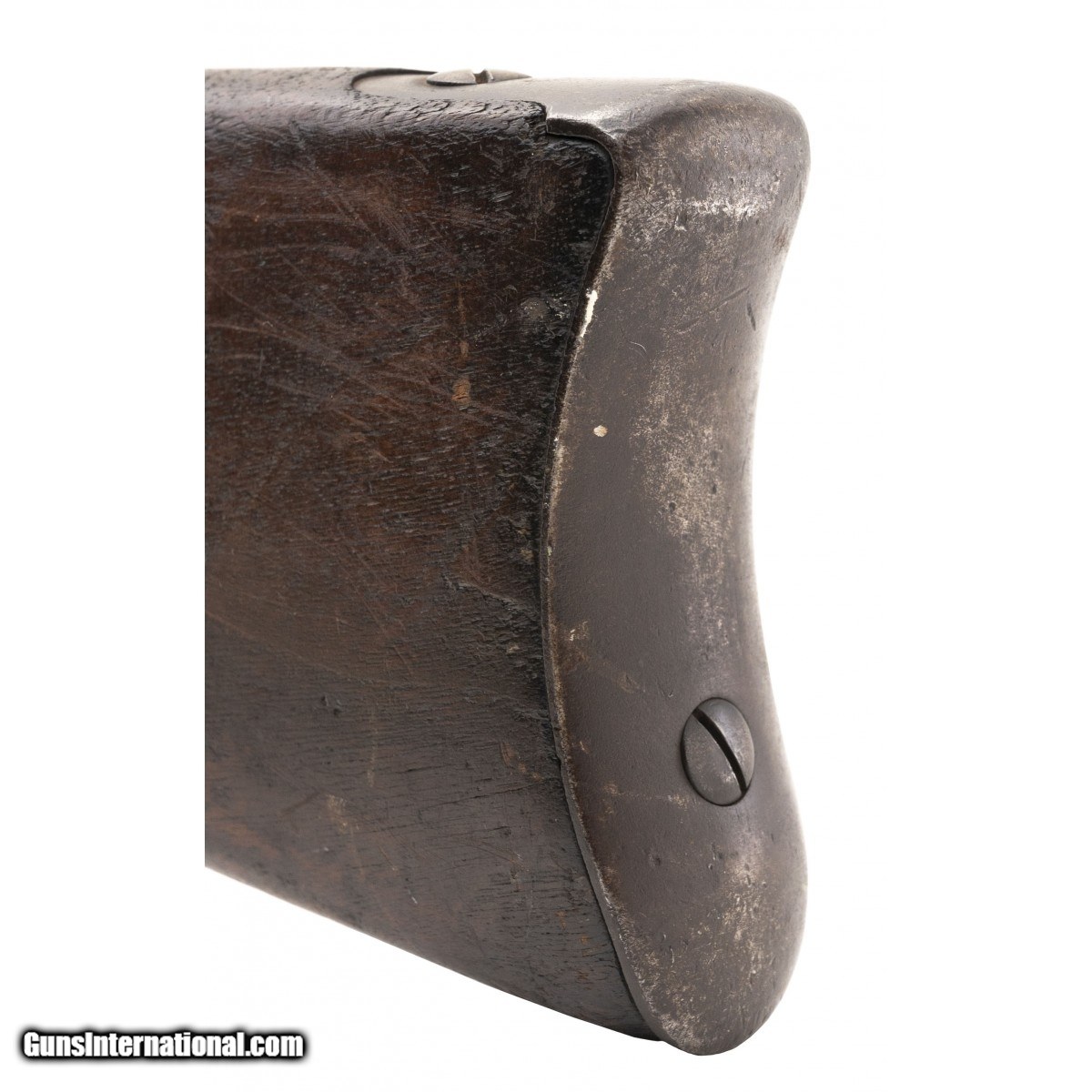 Description: " Serial No. 136979, 45-70, 29.5"" round barrel U.S. Springfield Model 1884 Cadet trapdoor rifle. Overall fair condition, metal is a dark grey patina with surface oxidation noted. Stock shows usage and handling wear with faint cartouche visible. Action functions correctly, bore is good with some frosting noted in the grooves. Rear sight is missing the elevation section. SOLD Antique: Yes |