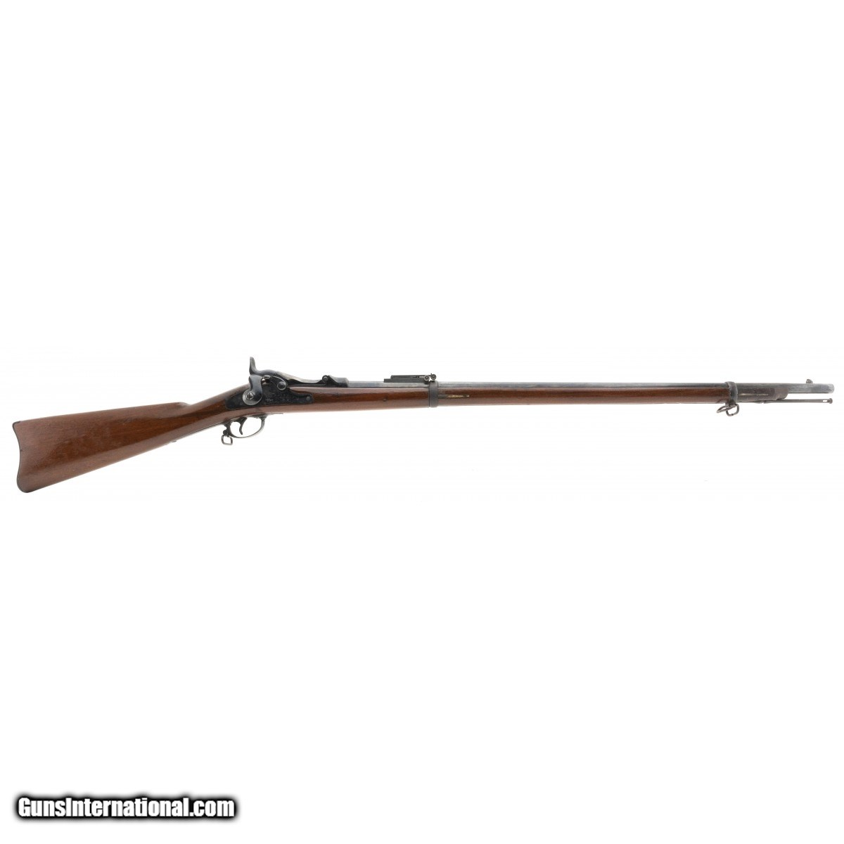 Description: " U.S. Springfield Model 1884 trapdoor chambered in .45-70. Rifle has been refinished at some point and is a glossily blued finish. Wood is good with heavy varnish coating the outside. Has a 1889 cartouche visible and sharp. Bore is good with frosting in the grooves. Affordable trapdoor rifle! SOLD Antique: Yes |