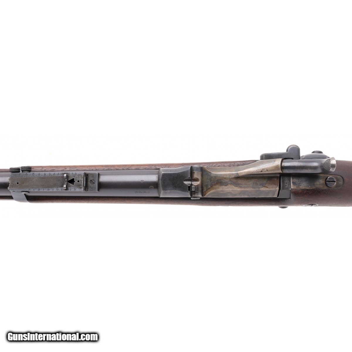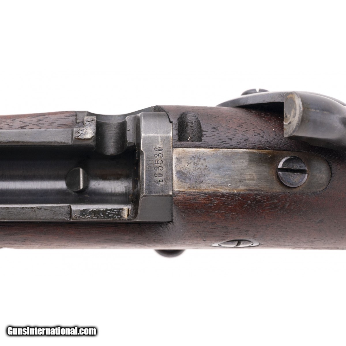 Description: " Serial No. 463536, made in 1889, .45-70, 32.5"" round proofed barrel. Gorgeous example with a bright and shiny bore. 95% blue remains with beautiful case coloring on the breech block. Stock is near excellent with a handsome cartouche, very minimal handling wear is noted. SOLD Antique: Yes |