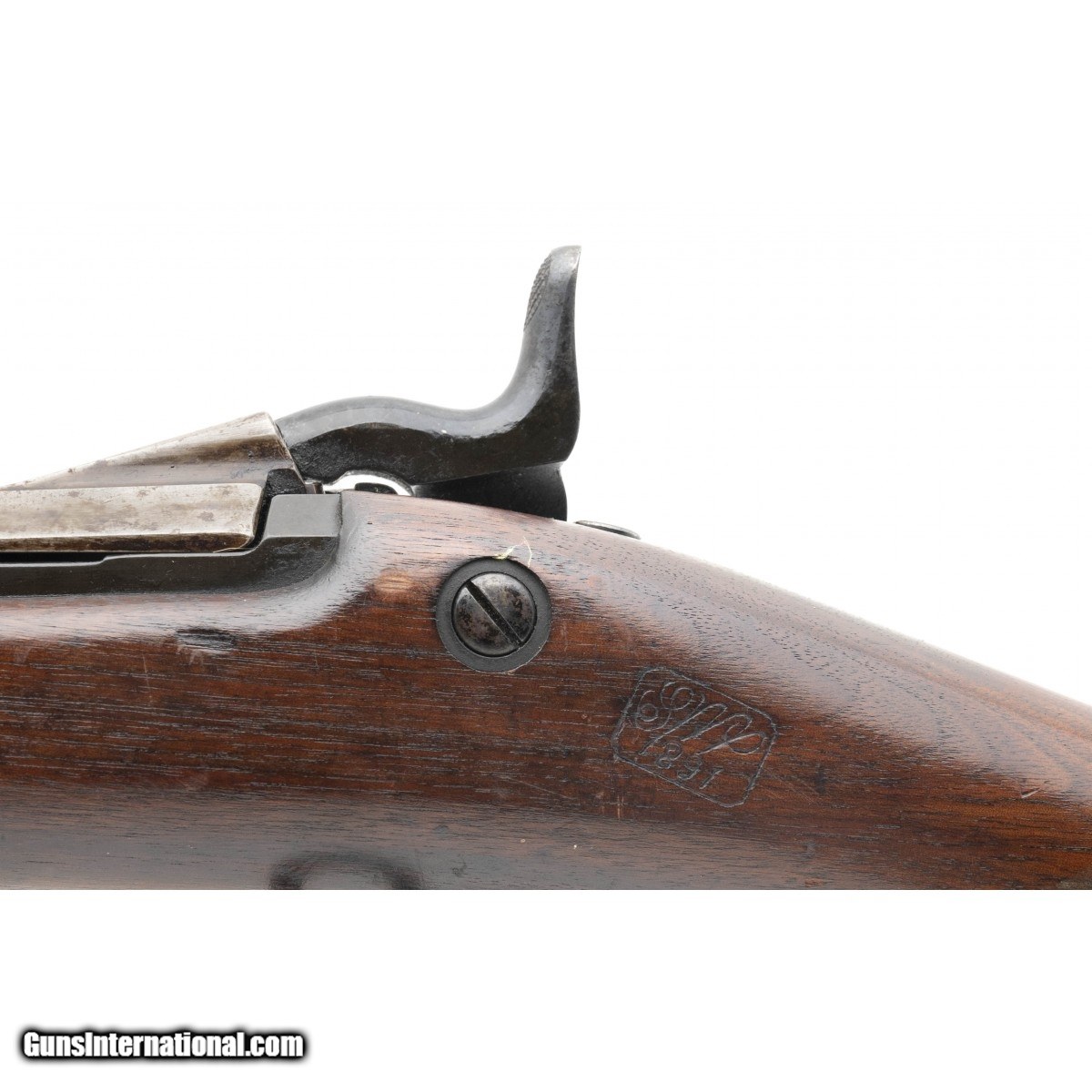 Description: " Serial No. 317131, 45-70, 32 5/8"" round barrel circa 1884 upgraded with 1888 improvements with 93-95% original blue with some thinning noted on the trigger guard. Traces of case coloring are noted on the breech block, Wood shows usage and handling wear with a crips cartouche dated 1891. The Springfield Research Service states this rifle was issued to Company I of the 11th Infantry in October of 1889, this was a company of mostly Apache stationed in the Arizona territory. SOLD Antique: Yes |