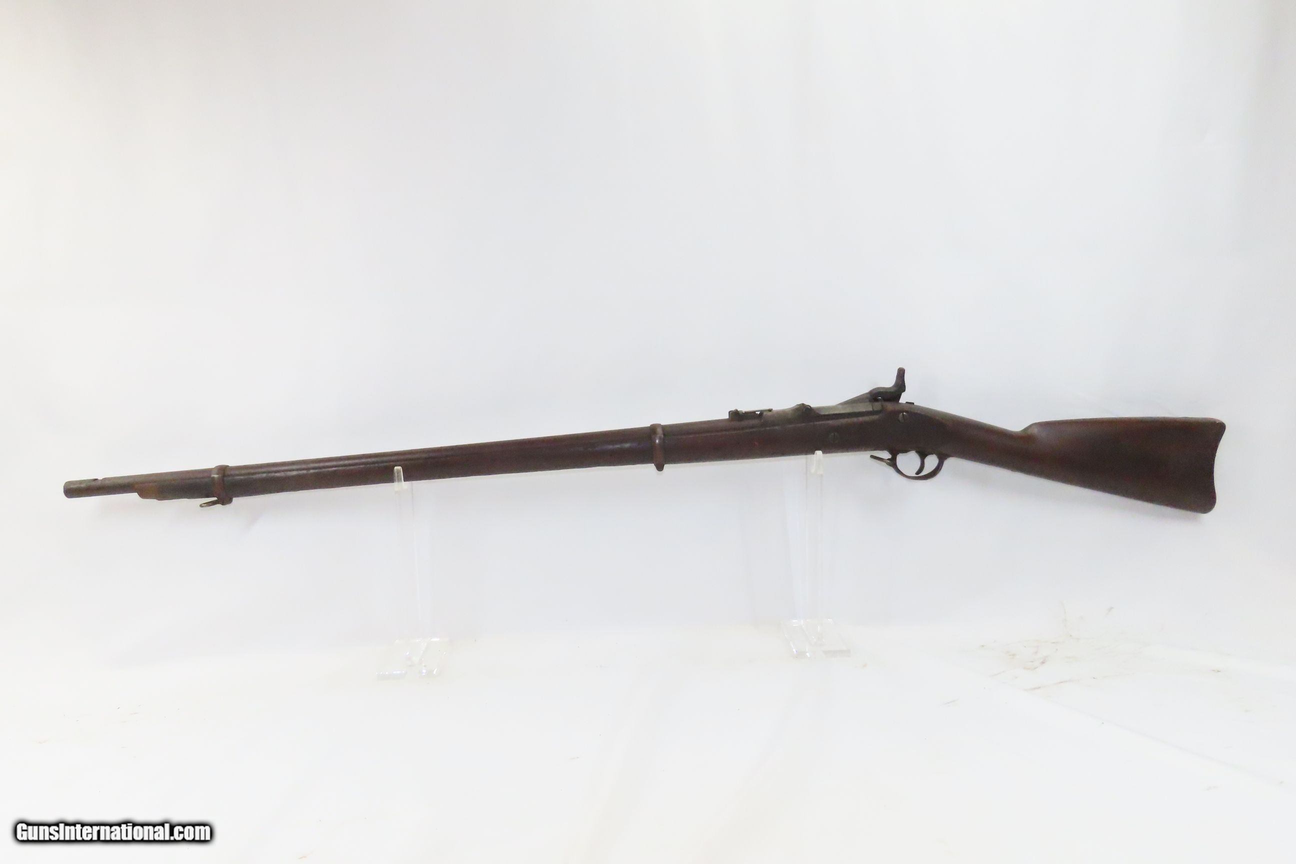 Description: 1869 Date INDIAN WARS Antique U.S. SPRINGFIELD Breech Loading 1868 TRAPDOOR 1863 Dated Lock & 1869 Dated Breech Here we present a Springfield U.S. Model 1868 Trapdoor Rifle, made circa 1869 in Springfield, Massachusetts for the U.S. Military. Over 51,000 Model 1868 rifles were produced at the Springfield Armory between 1868 and 1872. These arms feature the distinctive “Trap Door” breech loading system designed by Master Armorer Erskine S. Allin, who was the key to many military issued and experimental arms between 1865 and 1894. Some Model 1868 rifles, including this one, were produced with lockplates bearing the dates of 1863 or 1864, while barrels are dated 1869 or 1870. The Trapdoor Rifle was the primary weapon in the U.S. military from the end of the Civil War to the end of the 19th Century, encompassing the Indian Wars and even the Spanish-American War in Cuba. It was still being used when the Springfield 1903 was adopted. These rifles were initially made by converting muzzle loading Civil War muskets to single load cartridges from the breech by installing a “trapdoor”. Later iterations were purpose built from the ground up and chambered for .45-70 GOVT, but these early conversion examples were chambered for the even more massive .50-70 GOVT. The overall condition is good. Robust action. The bore has darkened. A crack wraps the wrist and movement is present when pressure is applied. Numbers match. Legible markings. The cleaning rod is absent. This example has an “1869” dated breechblock and an “1863” dated lock. Own the original! This is a legitimate antique and not a reproduction. Barrel is 32-1/2 inches. Caliber: .50-70 GOVT Overall condition as seen in photos. Very Fast. Very Safe. FREE SHIPPING WORLDWIDE. Delivered directly to your door by express mail! Guaranteed AUTHENTIC & Includes CERTIFICATE OF AUTHENTICITY. ancestryguns $1200 #230689 SOLD Antique: Yes |