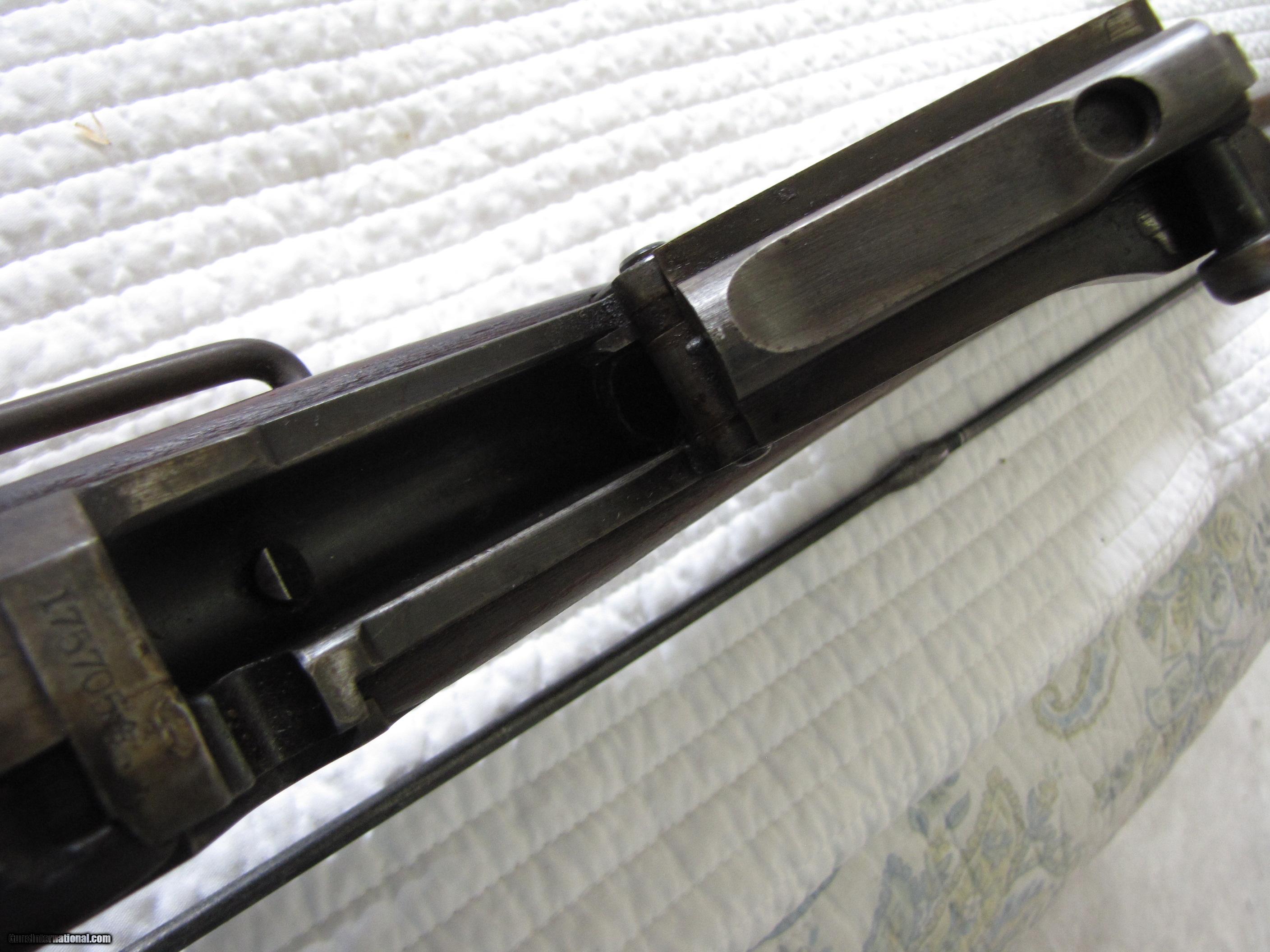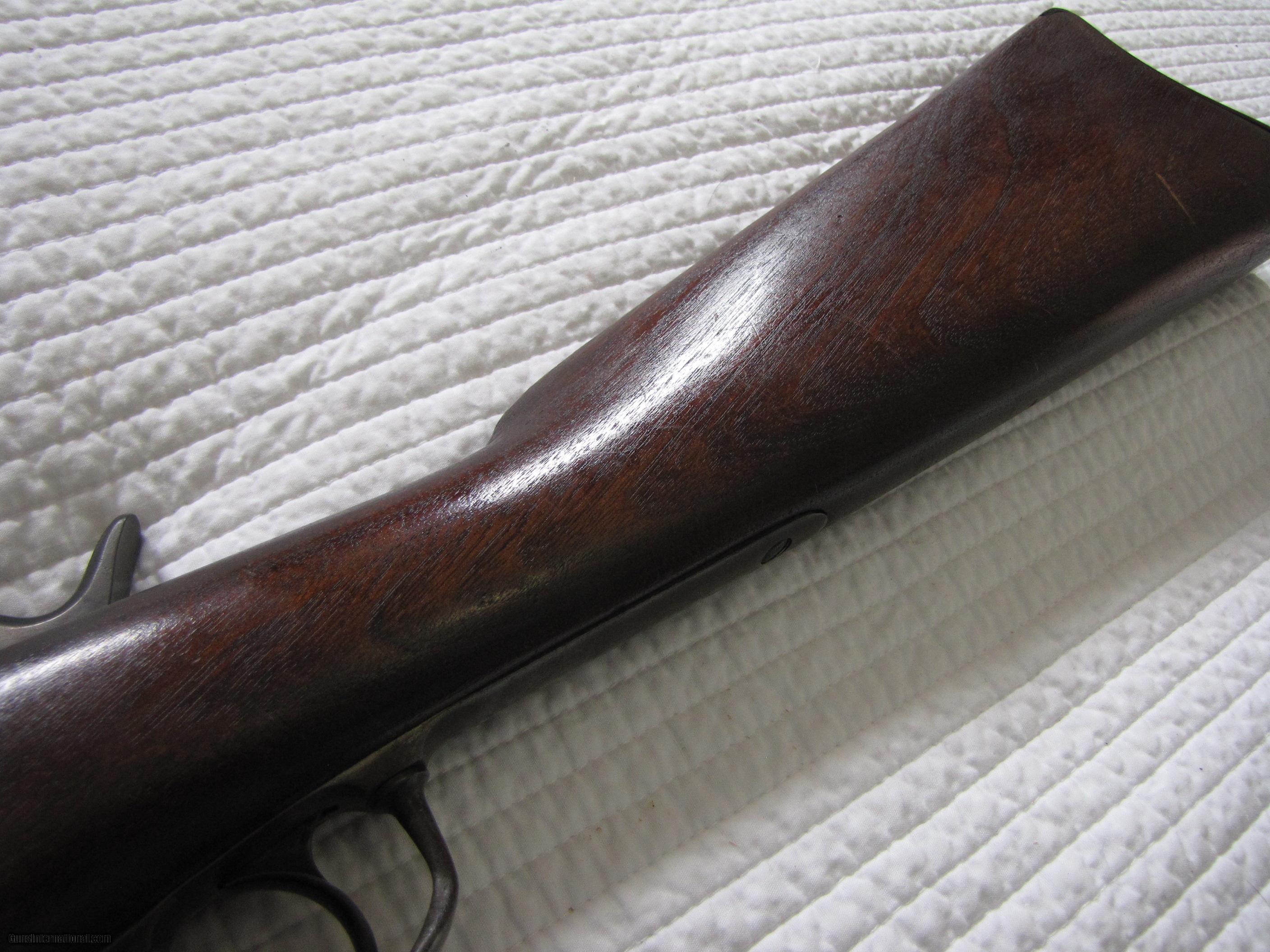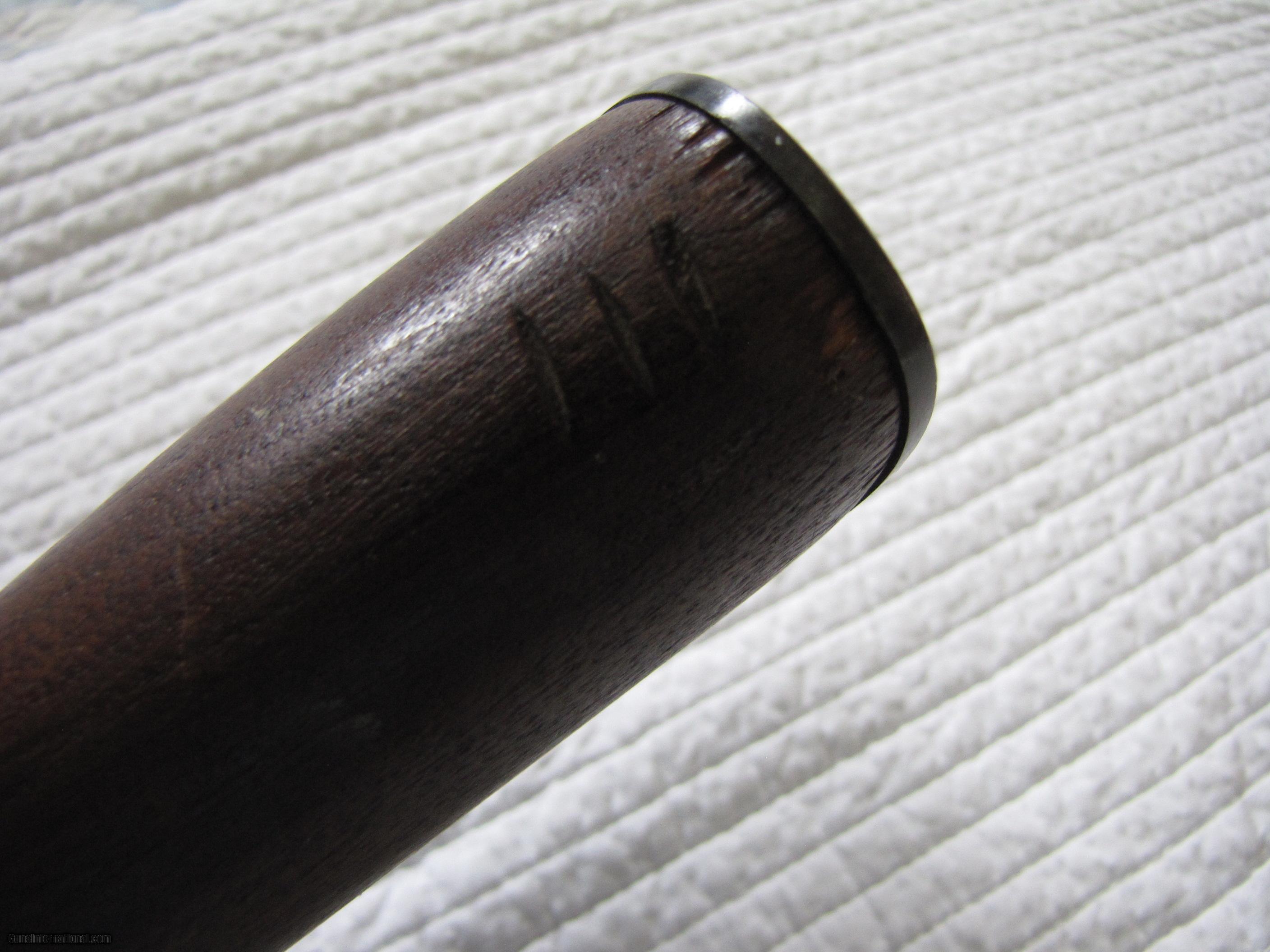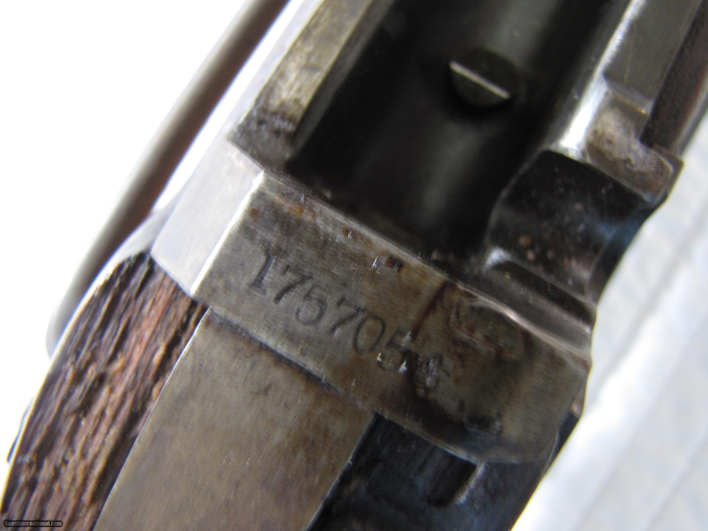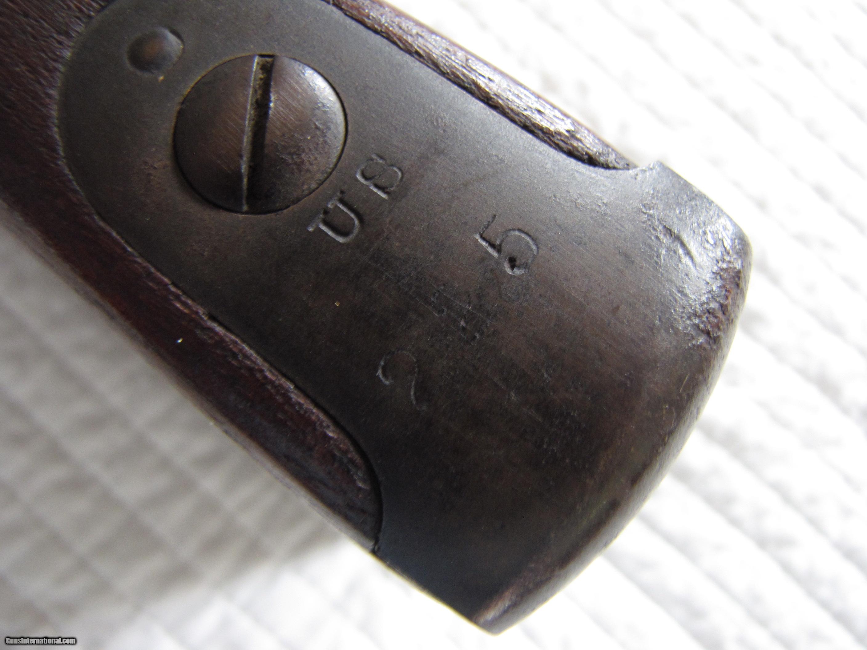Description: This original 1873 springfield is in above good condition, bore almost untouched. The wood is out standing with one tiny chip up by the block effect nothing ,easy fix, if you are a perfectionist. This comes with the original three piece cleaning rods in the butt. The original sight hood cover is still intact , most have been removed, all parts function smoothly, You just don't see them in this condition. The serial number is 175705 and a 5 pointed star. The U.S. MODEL 1873 on the trap door is clear, as is the U.S. SPRINGFIELD AND EAGLE ARE CLEAR. The barrel is marked VP EAGLES HEAD,V , The barrel band has a U , The butt plate has U.S. 225 , The butt plate storage door works smoothly. Any Questions Call 859-533-5445 . Paypal also. SOLD Antique: Yes Manufacturer: U.S. SPRINGFIELD Model: 1873 CARBINE TRAPDOOR Serial Number: 175705 5 pointed star Caliber Info: 45-70 Ejectors: TRAPDOOR Condition: ABOVE GOOD Metal Condition: ABOVE GOOD Wood Condition: ABOVE GOOD TINY CHIP Bore Condition: ABOVE GOOD Sights: HOODED SIGHT Manufacture Date: 1873 |