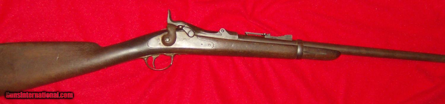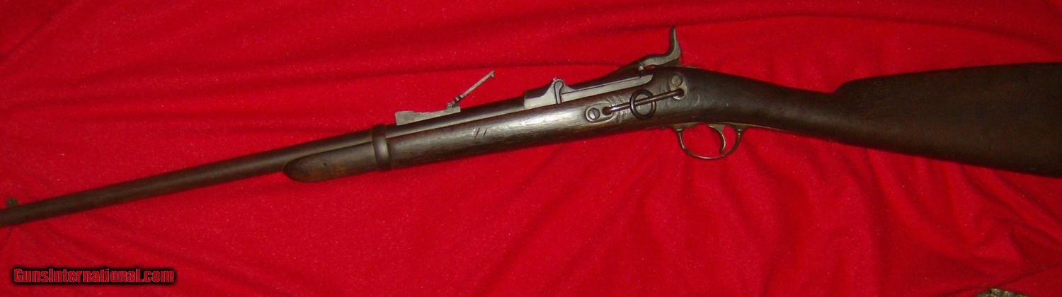 Description: SN-16695. Gun in good cond. Orig. and complete except rear sight spring is missing. Good markings on lock plate and breech block. Good wood, no cracks or missing wood. Metal surfaces brown patina, no rust or pitting, some orig blue on breech block. This SN is in the same series issued to the 7th Cavalry at the Little Big Horn. (SN 166680 issued to Benteen.) $3950.00 cashiers check. Price incl shipping in U.S. Sale pending SOLD Antique: Yes |
