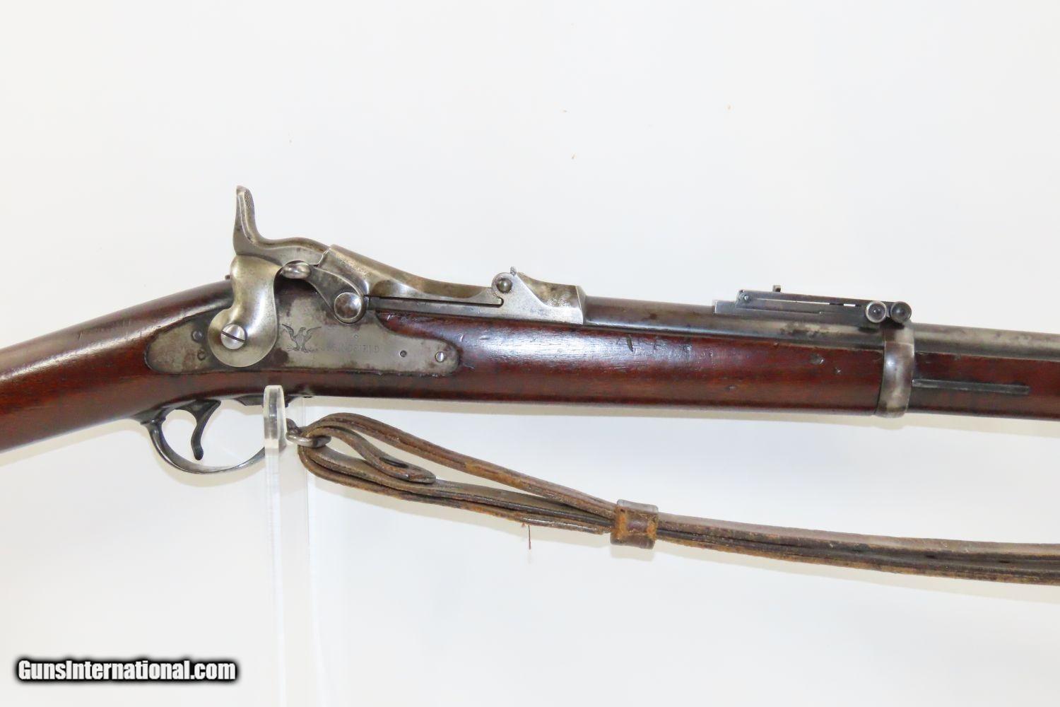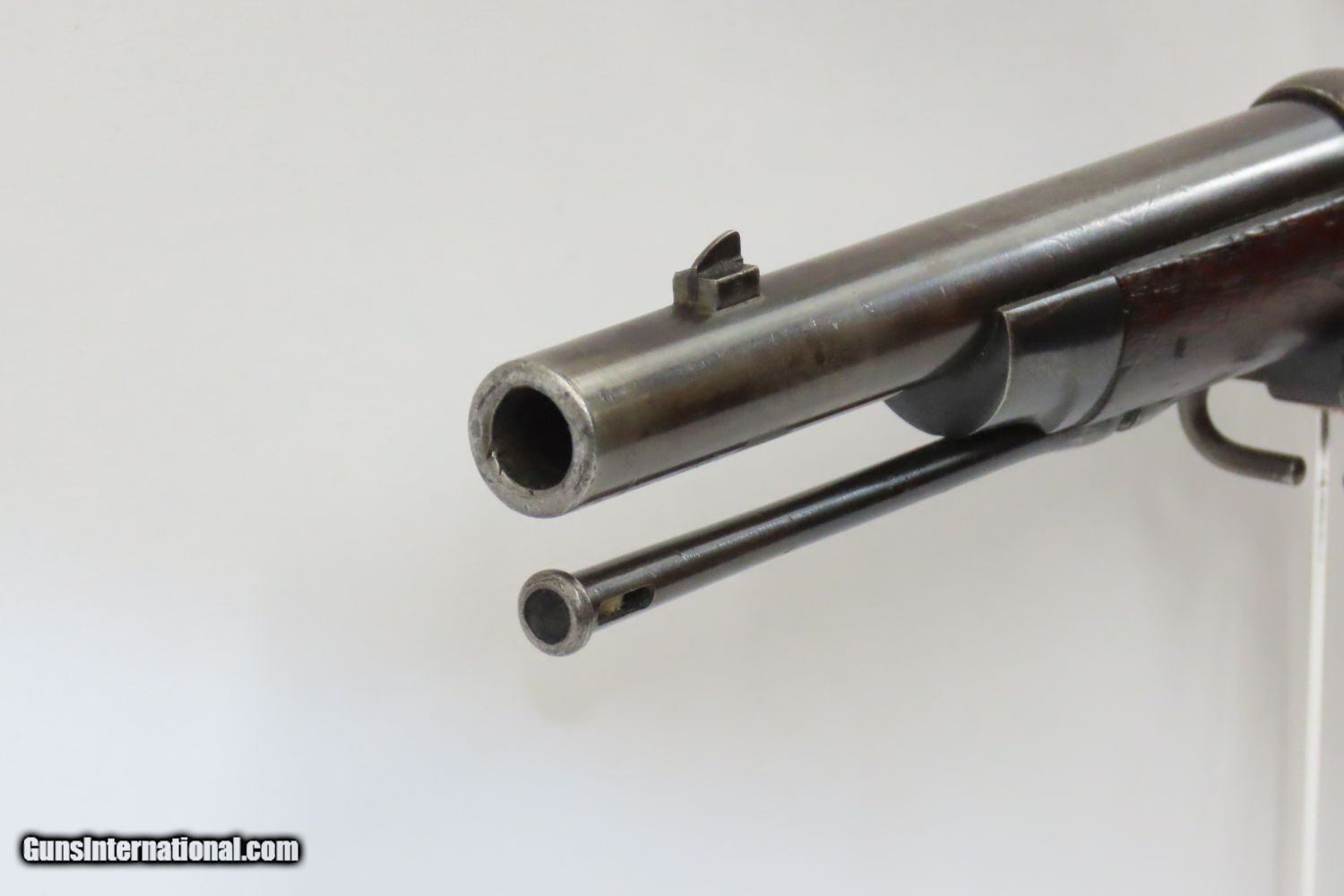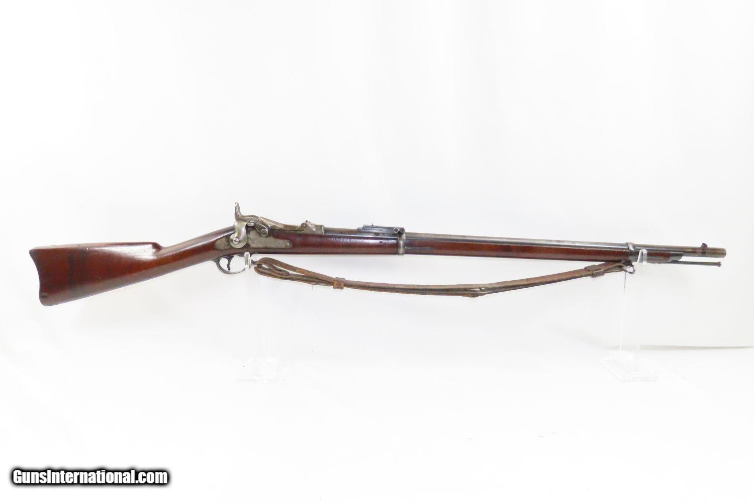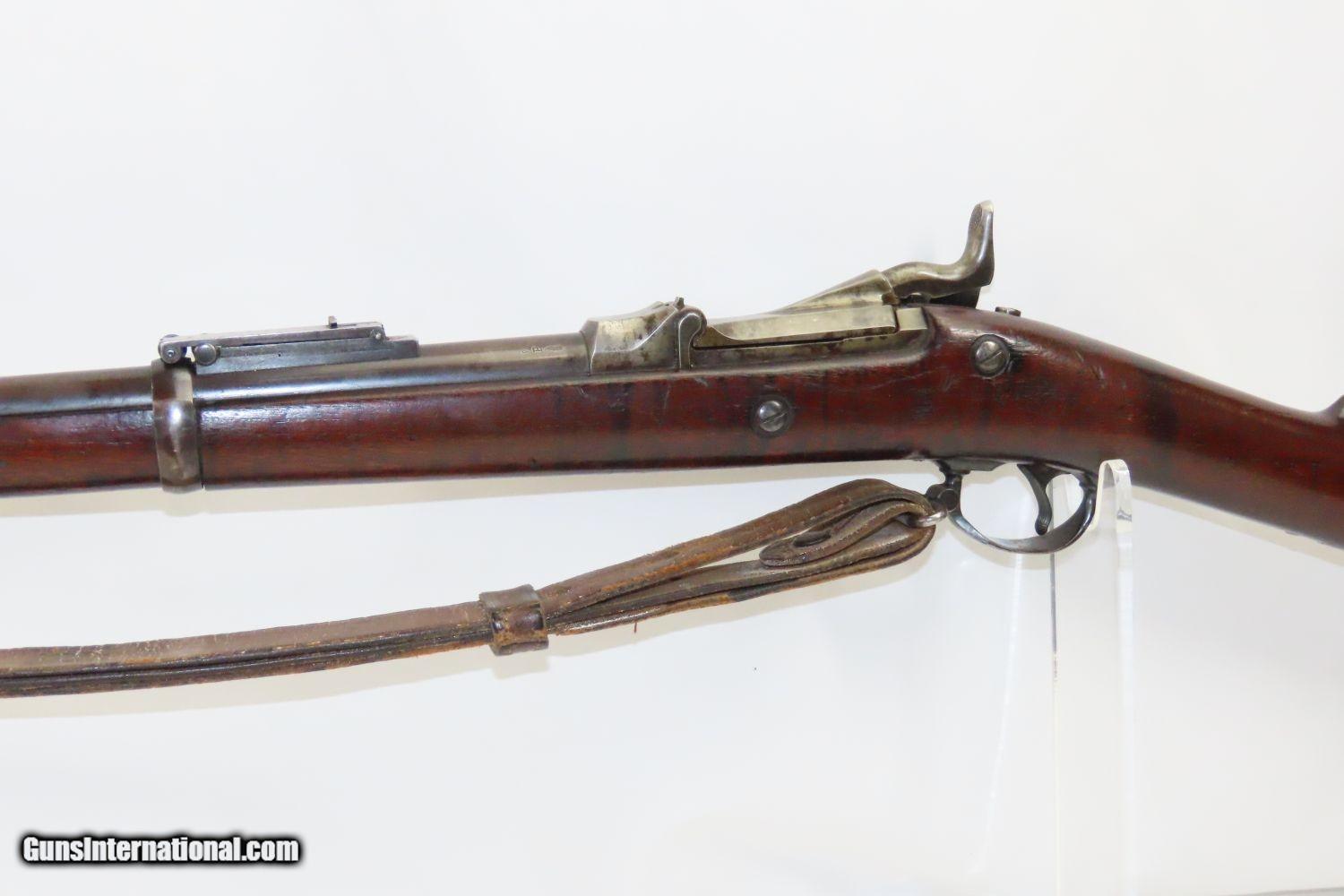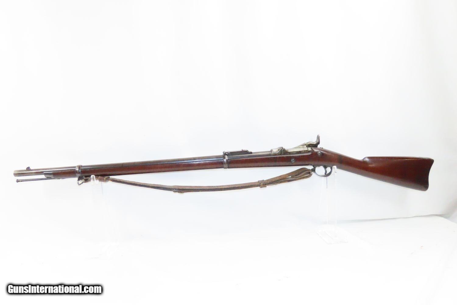 Description: 1890 SPRINGFIELD ARMORY Model 1884 TRAPDOOR .45-70 GOVT CADET Rifle Antique Chambered in the Original 45-70 GOVT! Here we present an antique U.S. Springfield Model 1884 Trapdoor Cadet Rifle, made by the Springfield Armory. Manufactured circa1890 nearing the end of the Indian Wars, this is a cadet rifle version of the U.S. Springfield Model 1884. The 1884 Cadet Model Trapdoor Rifle is identical to the Standard 1884 Infantry Rifle, from the butt plate up to the rear or lower barrel band. The obvious difference is the overall length of the barrel, and thus the rifle. The standard Infantry barrel length was about 31-5/8" whereas the barrel on a Cadet Rifle was just about 2 inches shorter coming in at about 29-5/8". After the Civil War, the War Department wanted a breech-loading rifle. To be specific, it wanted a breech-loading rifle that would chamber a self-primed, metallic cartridge. Amazingly, despite the adoption of the ill-fated Model 1882 Chaffee-Reese Bolt Action Magazine Rifle, new models of trapdoor rifles continued to be produced and used all the way through the mid-1890s, until finally, the Krag-Jorgensen was adopted. The U.S. continued to see unrest and conflict with the displaced Native Americans during this time, including the Wounded Knee Massacre on December 29th, 1890. Trapdoors continued to see use all the way through the Spanish American War. The overall condition is near fine. Excellent action. Bright bore with sharp rifling. Sharp SWP/1890 cartouche on the left stock flat. Solid walnut stock with a nice, smooth finish. A great piece of Americana! Own the original! This is a legitimate antique and not a reproduction. Barrel is 29-5/8 inches. Caliber: .45-70 GOVT Overall condition as seen in photos. Very Fast. Very Safe. FREE SHIPPING WORLDWIDE. Delivered directly to your door by express mail! Guaranteed AUTHENTIC & Includes CERTIFICATE OF AUTHENTICITY. ancestryguns $2245 #210365 SOLD Antique: Yes |