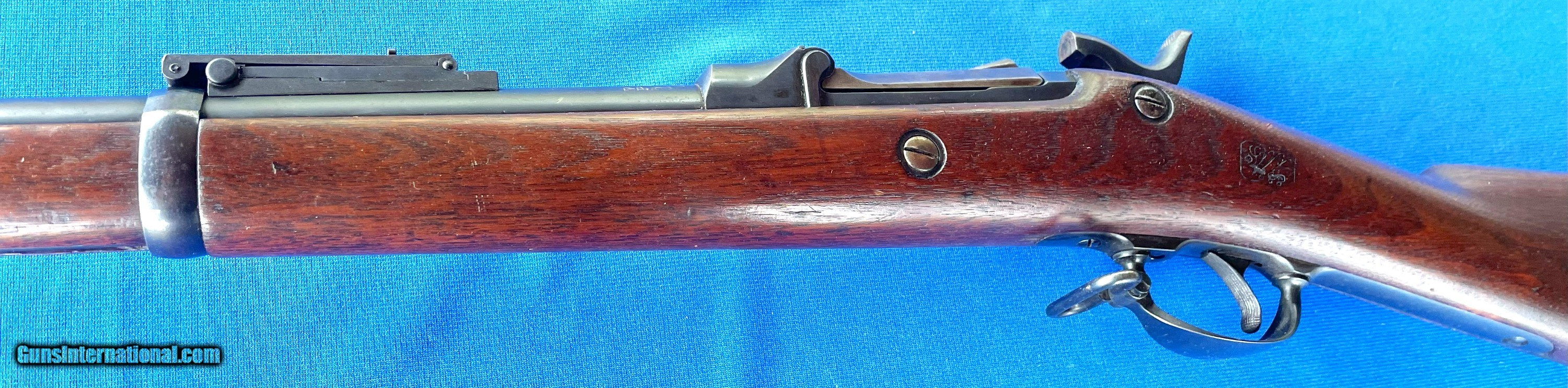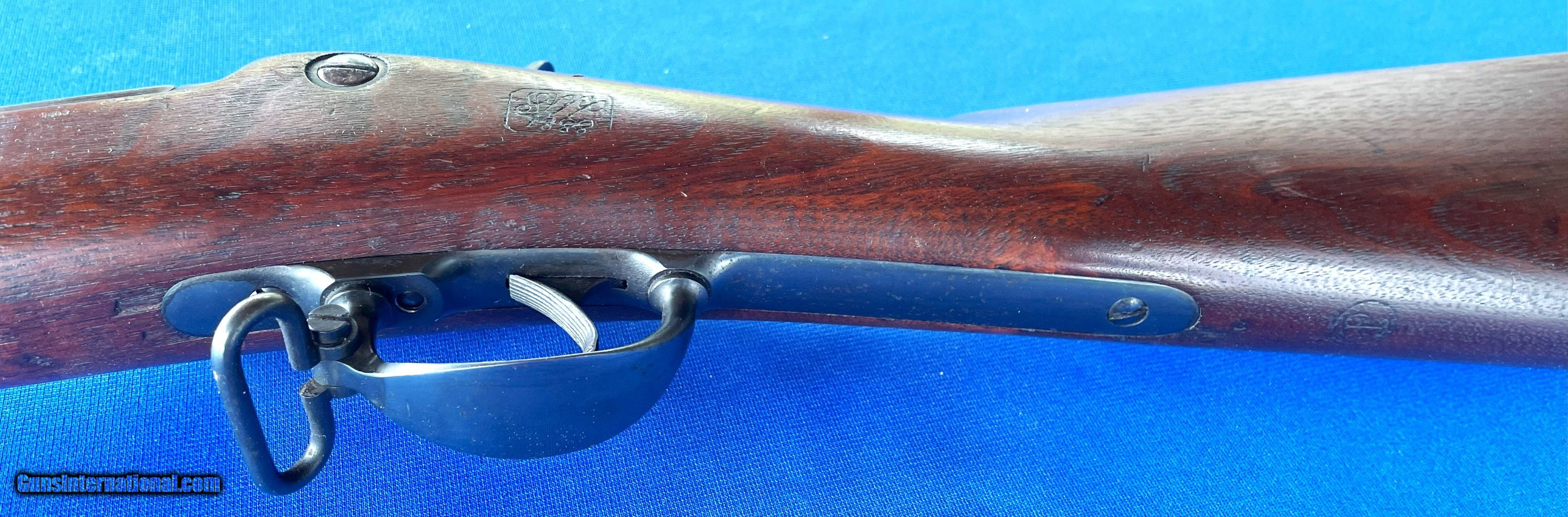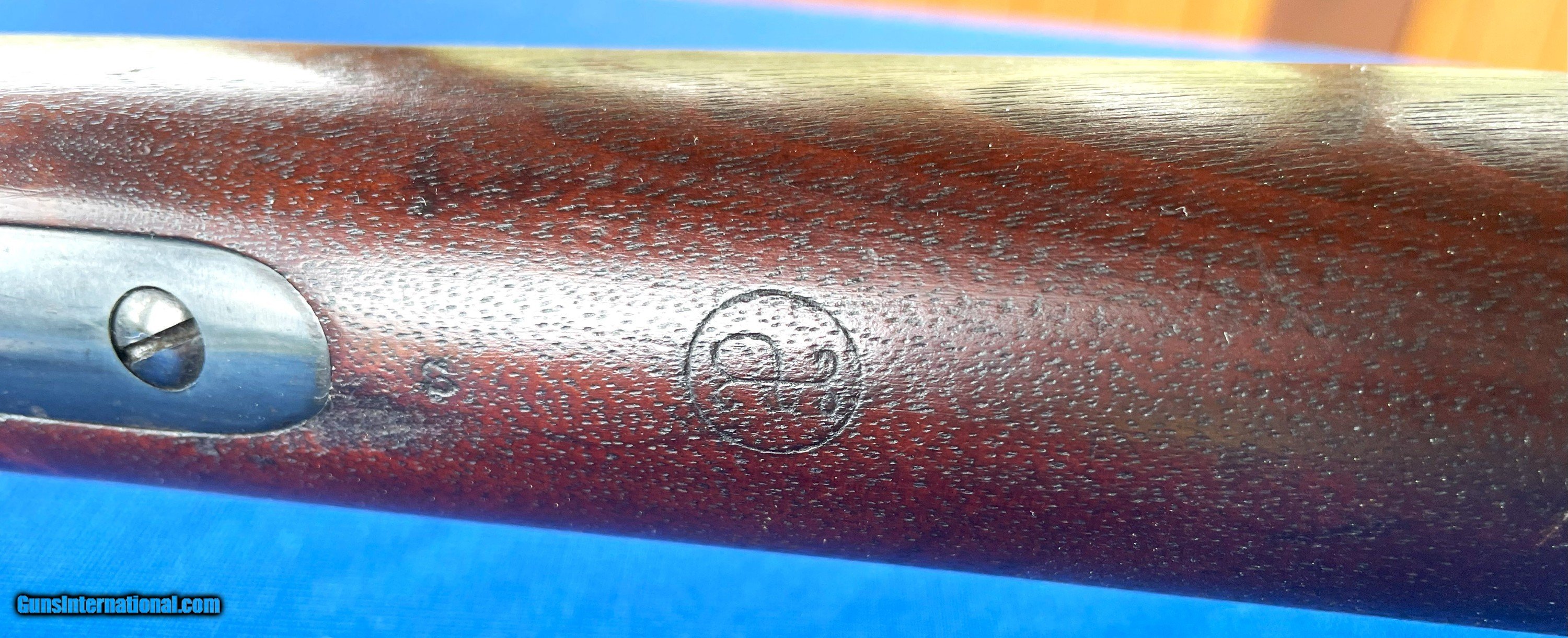 Description: U.S. SPRINGFIELD .45-70 CALIBER TRAPDOOR MILITARY RIFLE. 32 5/8" BARREL, EXCELLENT MIRROR BRIGHT BORE. SER. # 465807 FEATURING THE "BUFFINGTON" REAR SIGHT. METAL SURFACES HAVE MOST OF THE ORIGINAL BRIGHT BLUE WITH DARKENED CASE COLORS ON BREECH BLOCK & TANG. SHOWS BRIGHT FIRE BLUE ON BARREL BANDS, LOCKING KEYS & SCREWS. BUTTPLATE MARKED U.S. WITH A LITTLE MODERATE OXIDATION ON THE HEAL. WALNUT STOCK RATES FINE TO NEAR EXCELLENT WITH SHARP "SWP 1888" CARTOUCH & "P" FIRING PROOF. A FEW SCATTERED LIGHT HANDLING MARKS AND A SMOOTHED OVER SLIVER ON RAMROD CHANEL. ACTION IS CRISP & ROBUST WITH 3 CLICK HAMMER. A GREAT EXAMPLE FOR YOUR COLLECTION & SHOOTING PLEASURE IF WANTED, AS PICTURED & FOUND IN A NEW ENGLAND COLLECTION. THIS NICE RIFLE MUST BE SOLD ASAP. OFFERS WELCOME ! $60.00 S&H DIRECT TO YOU NO LICENSE NEEDED ANYWHERE THAT'S OK, SOLD Antique: Yes Rifle Caliber: .45-70 Government Manufacturer: SPRINGFIELD Model: 1884 Serial Number: 465807 Barrel Length: 32 5.8 Bore: STRONG & BRIGHT Chambers: CLEAR Ejectors: WORKING Condition: NEAR EXCELLENT Metal Condition: VERY FINE PLUS Wood Condition: VERY FINE PLUS Bore Condition: EXCELLENT Barrel Type: ROUND Action: CRISP & RIBUST Stock: WALNUT Butt Pad: METAL Finish: ORIGINAL Sights: ORIGINAL |