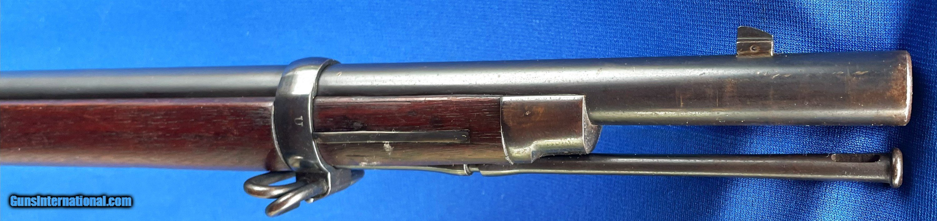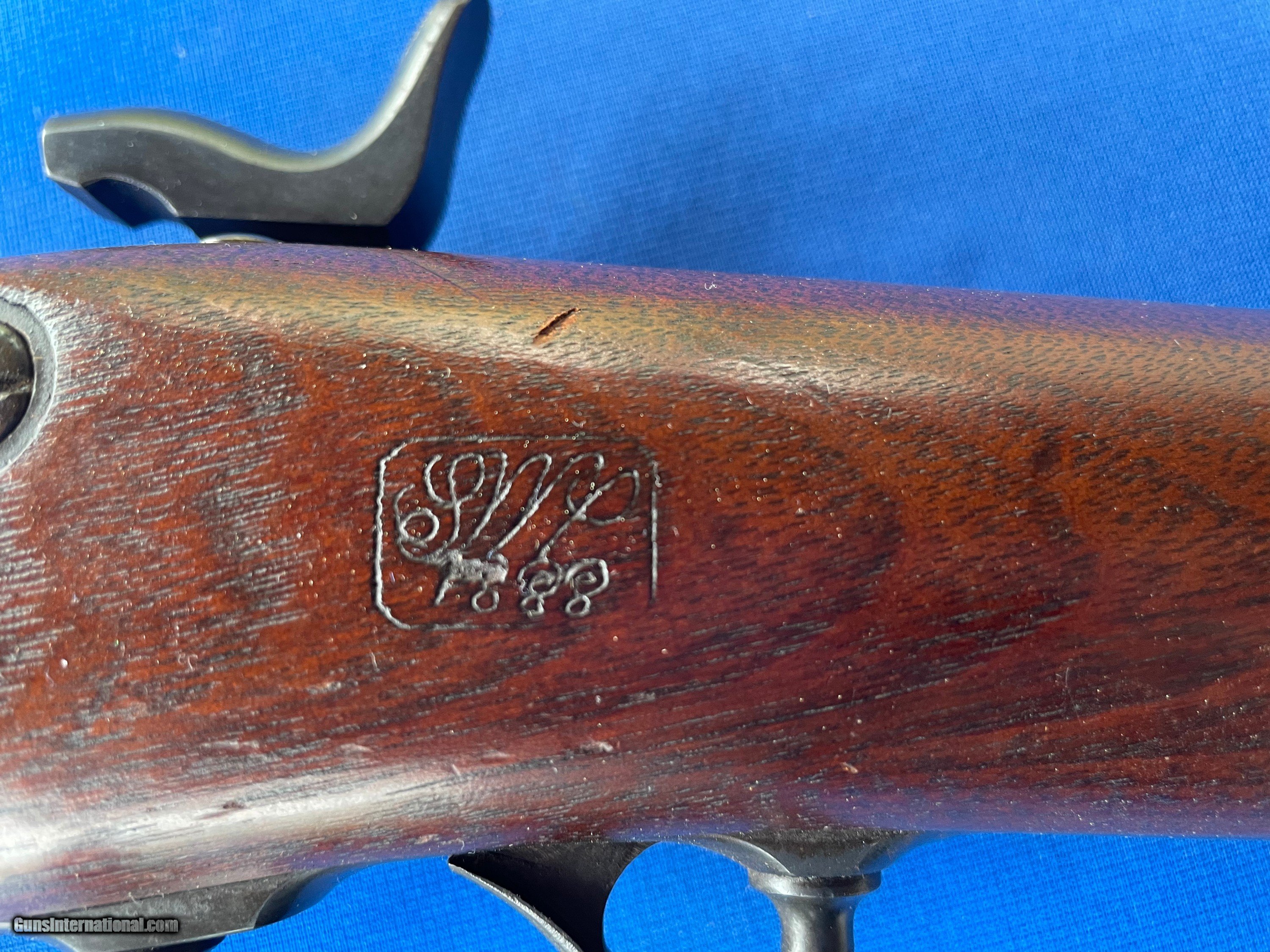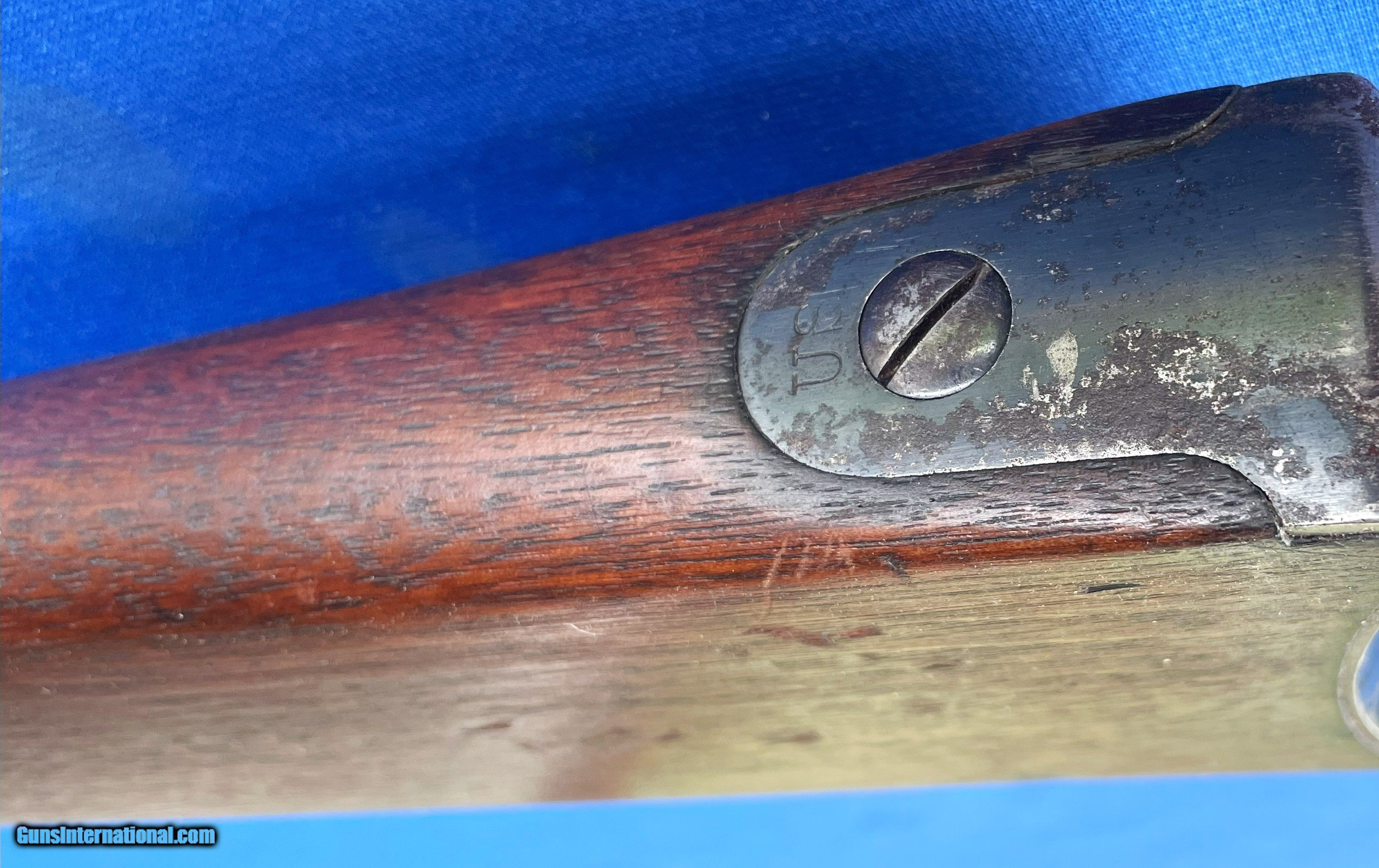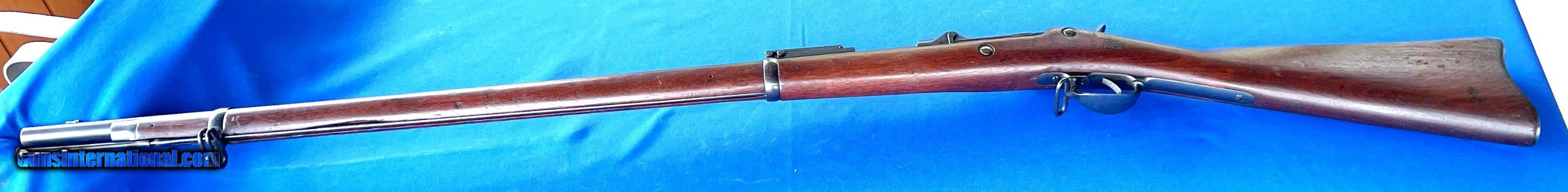 Description: U.S. SPRINGFIELD .45-70 CALIBER TRAPDOOR MILITARY RIFLE. 32 5/8" BARREL, EXCELLENT MIRROR BRIGHT BORE. SER. # 465807 FEATURING THE "BUFFINGTON" REAR SIGHT. METAL SURFACES HAVE MOST OF THE ORIGINAL BRIGHT BLUE WITH DARKENED CASE COLORS ON BREECH BLOCK & TANG. SHOWS BRIGHT FIRE BLUE ON BARREL BANDS, LOCKING KEYS & SCREWS. BUTTPLATE MARKED U.S. WITH A LITTLE MODERATE OXIDATION ON THE HEAL. WALNUT STOCK RATES FINE TO NEAR EXCELLENT WITH SHARP "SWP 1888" CARTOUCH & "P" FIRING PROOF. A FEW SCATTERED LIGHT HANDLING MARKS AND A SMOOTHED OVER SLIVER ON RAMROD CHANEL. ACTION IS CRISP & ROBUST WITH 3 CLICK HAMMER. A GREAT EXAMPLE FOR YOUR COLLECTION & SHOOTING PLEASURE IF WANTED, AS PICTURED & FOUND IN A NEW ENGLAND COLLECTION. THIS NICE RIFLE MUST BE SOLD ASAP. OFFERS WELCOME ! $60.00 S&H DIRECT TO YOU NO LICENSE NEEDED ANYWHERE THAT'S OK, SOLD Antique: Yes Rifle Caliber: .45-70 Government Manufacturer: SPRINGFIELD Model: 1884 Serial Number: 465807 Barrel Length: 32 5.8 Bore: STRONG & BRIGHT Chambers: CLEAR Ejectors: WORKING Condition: NEAR EXCELLENT Metal Condition: VERY FINE PLUS Wood Condition: VERY FINE PLUS Bore Condition: EXCELLENT Barrel Type: ROUND Action: CRISP & RIBUST Stock: WALNUT Butt Pad: METAL Finish: ORIGINAL Sights: ORIGINAL |