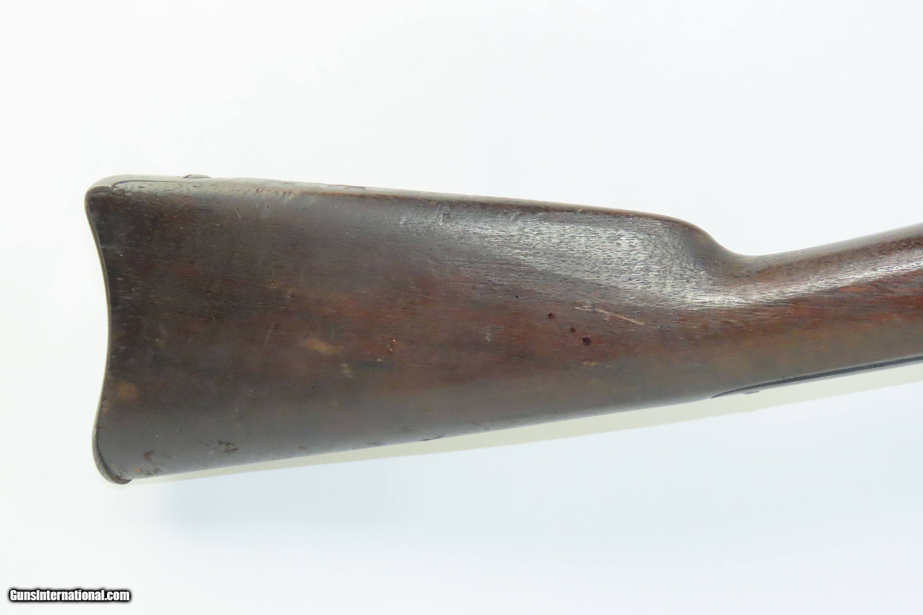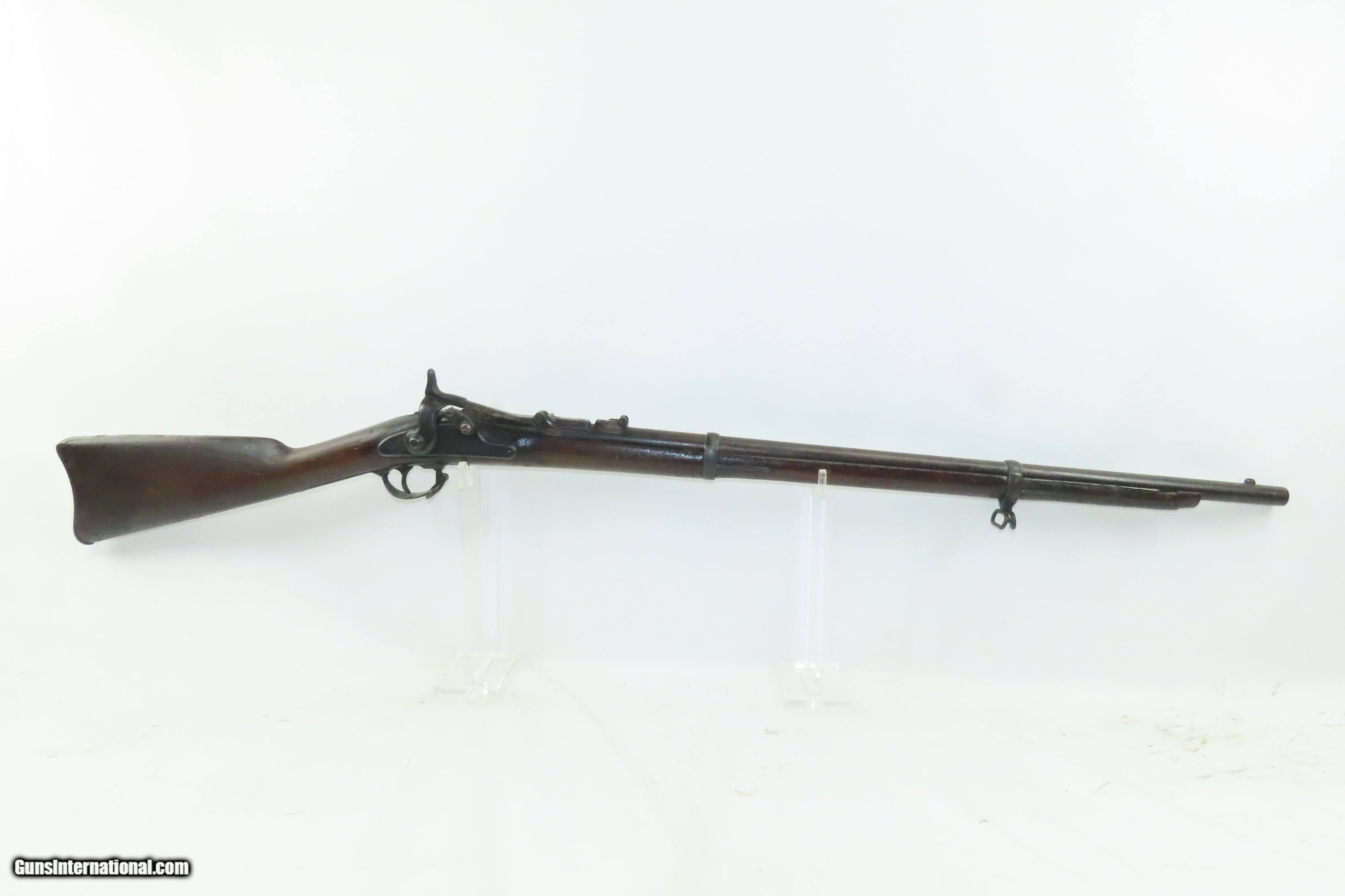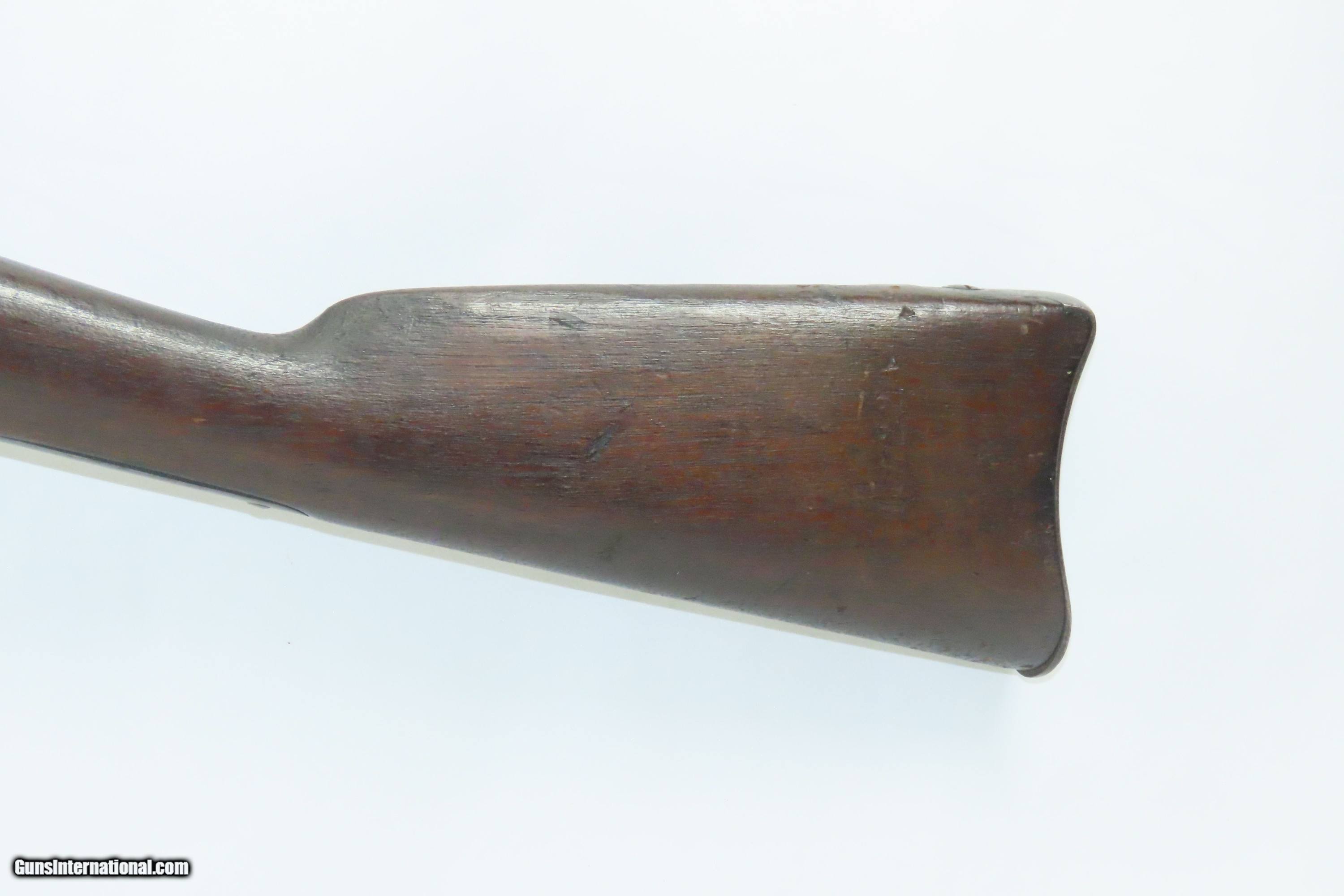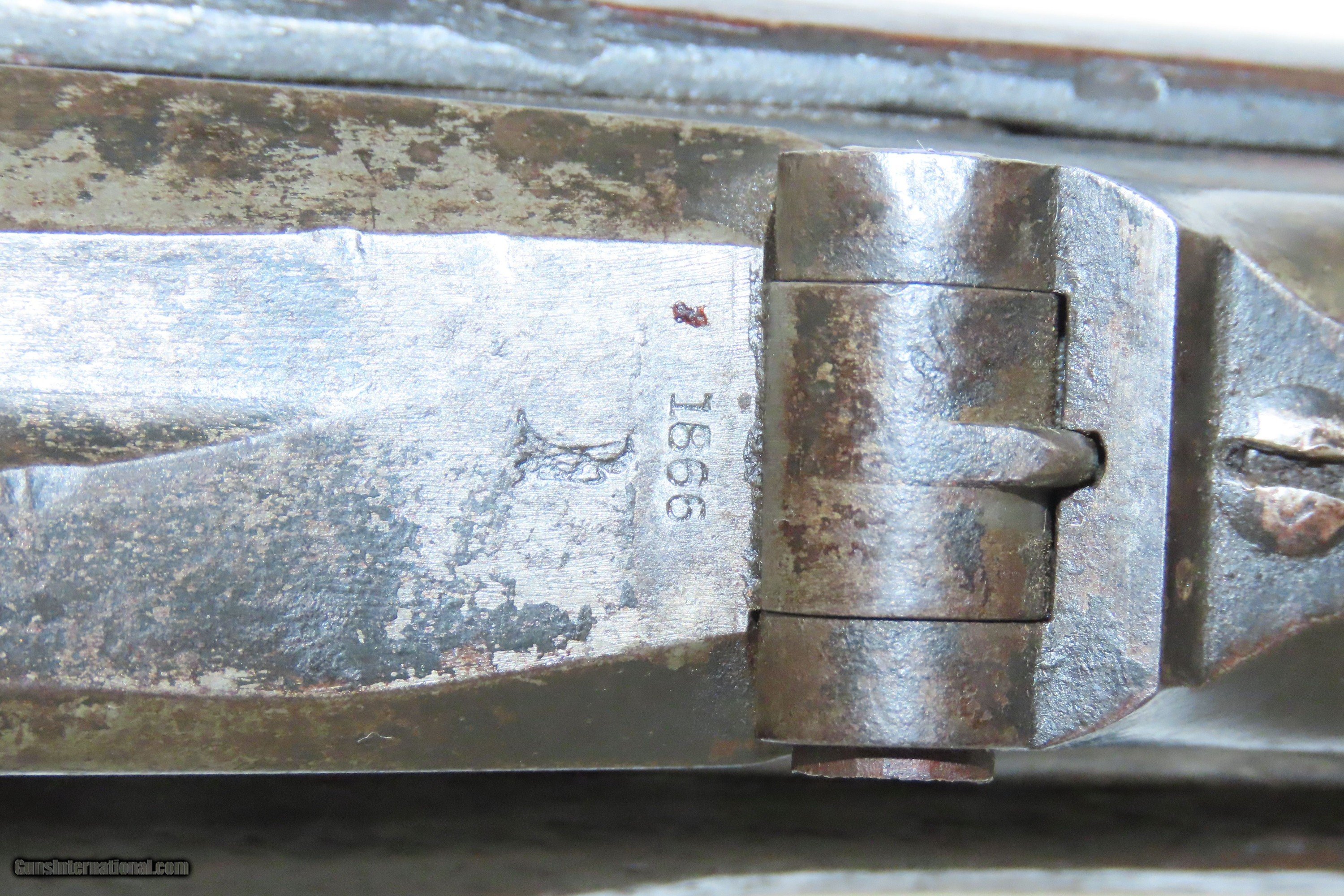Description: Antique U.S. SPRINGFIELD M1866 .50-70 GOVT ALLIN Conversion TRAPDOOR Rifle Rifle Made Famous During the INDIAN WARS Here is an antique Springfield Model 1866 Allin Conversion Trapdoor, the rifle being manufactured circa 1864 and then converted shortly after that circa 1866. After the American Civil War, the United States military was slow to adopt new technological advances in firearms and opted to retrofit their enormous surplus inventory of Model 1861 type muskets to fire cartridges. Many different types of conversions were conceived and implemented. This one is named for its inventor, Erskine S. Allin, Master Armorer for Springfield Armory. The Springfield Model 1866 was the second iteration of the Allin designed trapdoor breech-loading mechanism. Originally developed as a means of converting rifle muskets to breechloaders, the Allin modification ultimately became the basis for the definitive Springfield Model 1873 Trapdoor, the first breech-loading rifle adopted by the United States War Department for manufacture and widespread issue to U.S. troops. These conversions were the main infantry weapon of the West and played a large role in the Indian Wars of the late 19th century. Approximately 25,000 .58 caliber Springfield Model 1863 rifled muskets were converted by Springfield Armory for use by U.S. troops, the barrels being relined and rifled to .50 caliber and the trapdoor breech system affixed. The rifle was chambered for the powerful centerfire .50-70 Government cartridge. The overall condition is good. Dark patina throughout. The action is strong. The bore is in good shape with strong rifling. The stock shows much use with some chipping around the nose cap. Cleaning rod absent. Own the original! This is a legitimate antique and not a reproduction. Barrel is 29 inches. Caliber: .50-70 GOVT Overall condition as seen in photos. Very Fast. Very Safe. FREE SHIPPING WORLDWIDE. Delivered directly to your door by express mail! Guaranteed AUTHENTIC & Includes CERTIFICATE OF AUTHENTICITY. ancestryguns $1500 #240363 SOLD Antique: Yes |