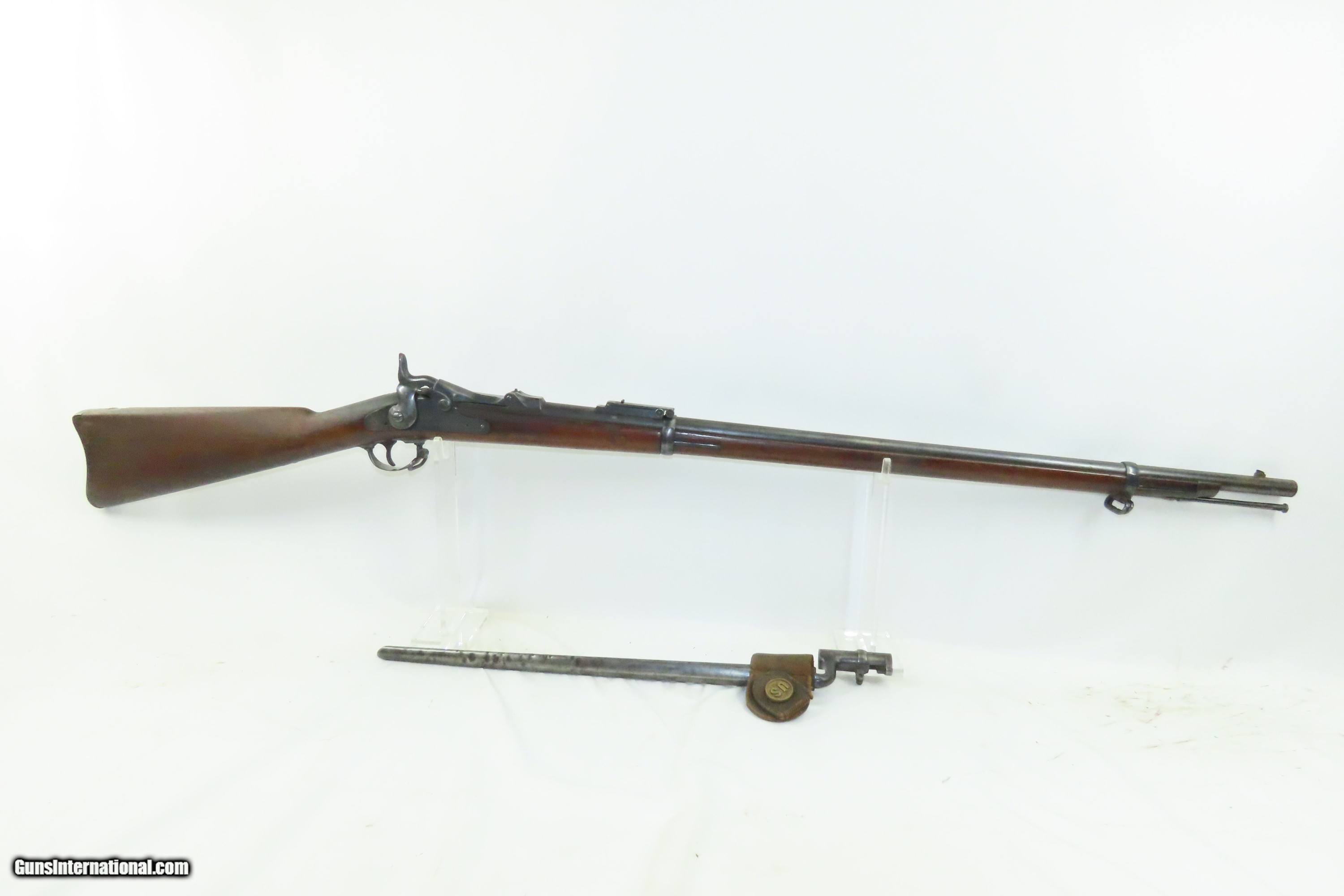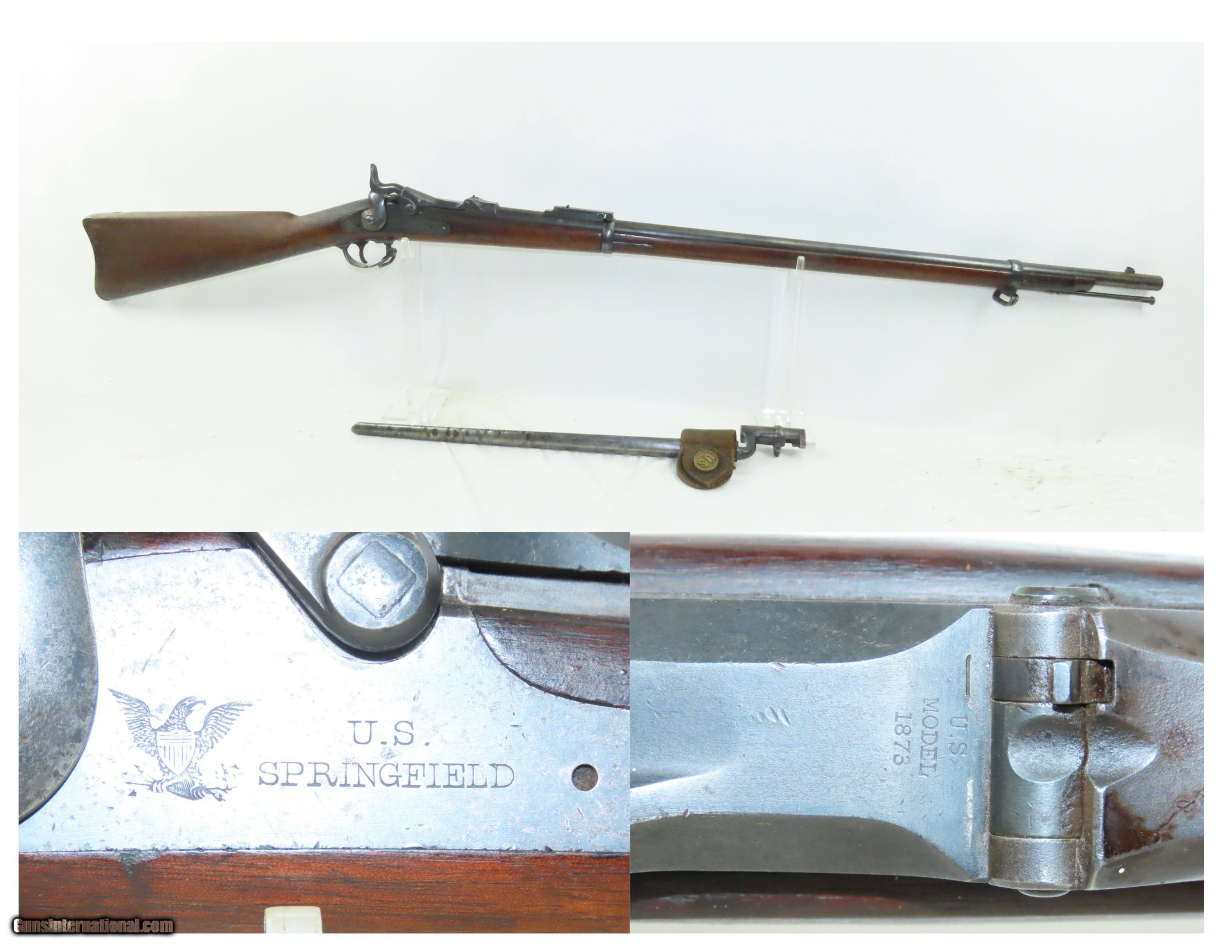 Description: Antique U.S. SPRINGFIELD M1873 TRAPDOOR .45-70 GOVT Rifle “SWP” CARTOUCHE U.S. Military Rifle Made at the SPRINGFIELD ARMORY Here we present an antique U.S. Springfield Model 1873 Trapdoor Rifle, made by the Springfield Armory circa July/August of 1887. After the Civil War, the War Department wanted a breech-loading rifle. To be specific, it wanted a breech-loading rifle that would chamber a self-primed, metallic cartridge. Amazingly, despite the adoption of the ill-fated Model 1882 Chaffee-Reese Bolt Action Magazine Rifle, new models of trapdoor rifles continued to be produced and used all the way through the mid-1890s, until finally, the Krag-Jorgensen was adopted. As white settlers moved into the Great Plains region, they battled the Plains Indian tribes in a series of conflicts known as the Sioux Wars, which lasted from 1854 to 1890. In 1875, the discovery of gold in the Black Hills region of South Dakota brought prospective miners into the area and onto the hunting grounds of the Sioux Indians. The US Army responded to the pleas of the white settlers and miners for protection against the Sioux, and the Great Sioux War of 1876-77 erupted. It was the last major conflict between the US Army and the Sioux tribe. The U.S. continued to see unrest and conflict with the displaced Native Americans during this time, all the way through to the Wounded Knee Massacre on December 29th, 1890. Trapdoors continued to see use all the way through the Spanish American War. This example has a “SWP/1888” cartouche on the left stock, for Ordnance Inspector Steven W. Porter. The overall condition is very good. Original finish. The action is excellent. Bright bore with strong rifling. Walnut stock shows use and remains solid. The bayonet is in very good condition and fits nicely. Own the original! This is a legitimate antique and not a reproduction. Barrel is 32-5/8 inches. Caliber: .45-70 GOVT Overall condition as seen in photos. Very Fast. Very Safe. FREE SHIPPING WORLDWIDE. Delivered directly to your door by express mail! Guaranteed AUTHENTIC & Includes CERTIFICATE OF AUTHENTICITY. ancestryguns $1750 #240484 SOLD Antique: Yes |
