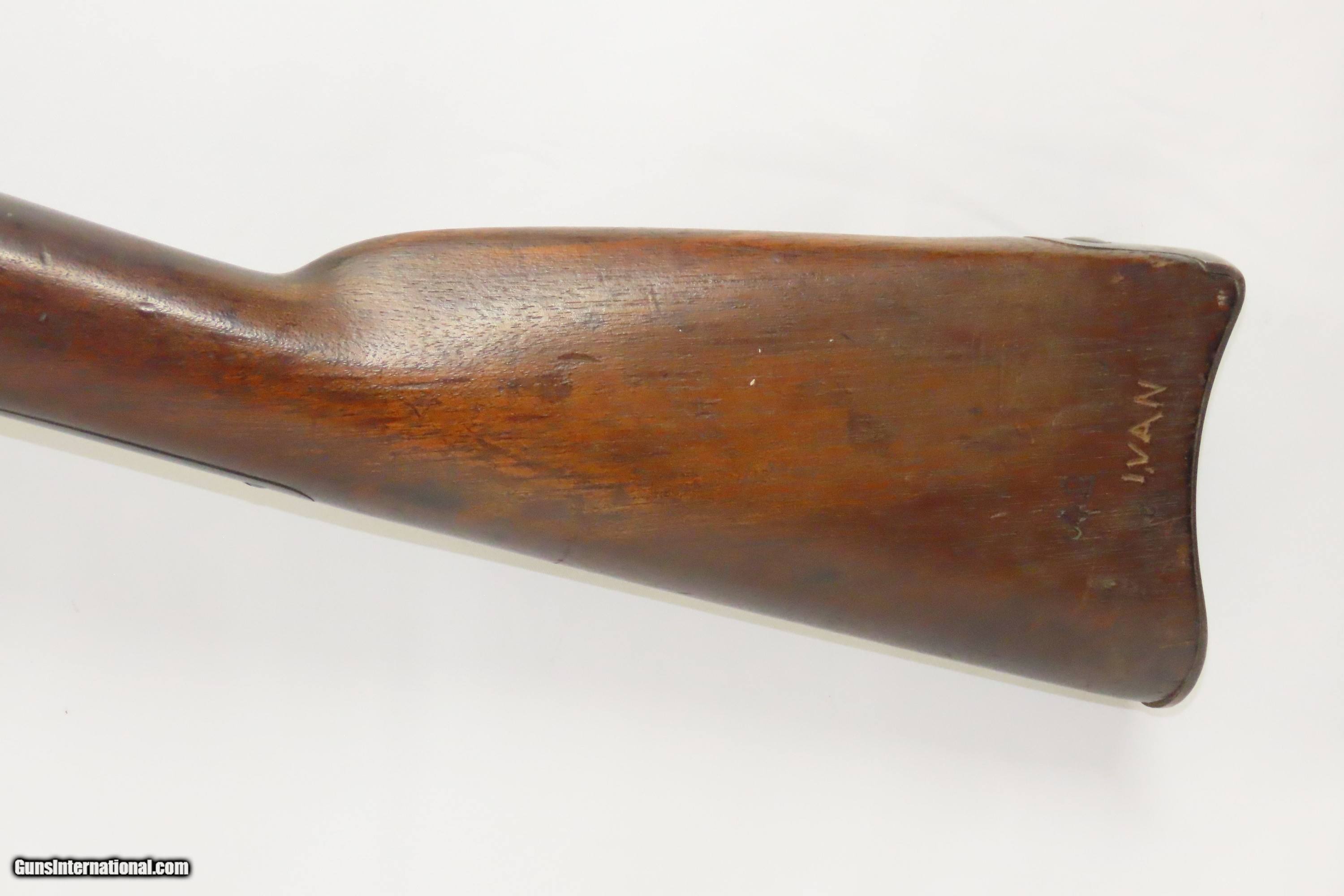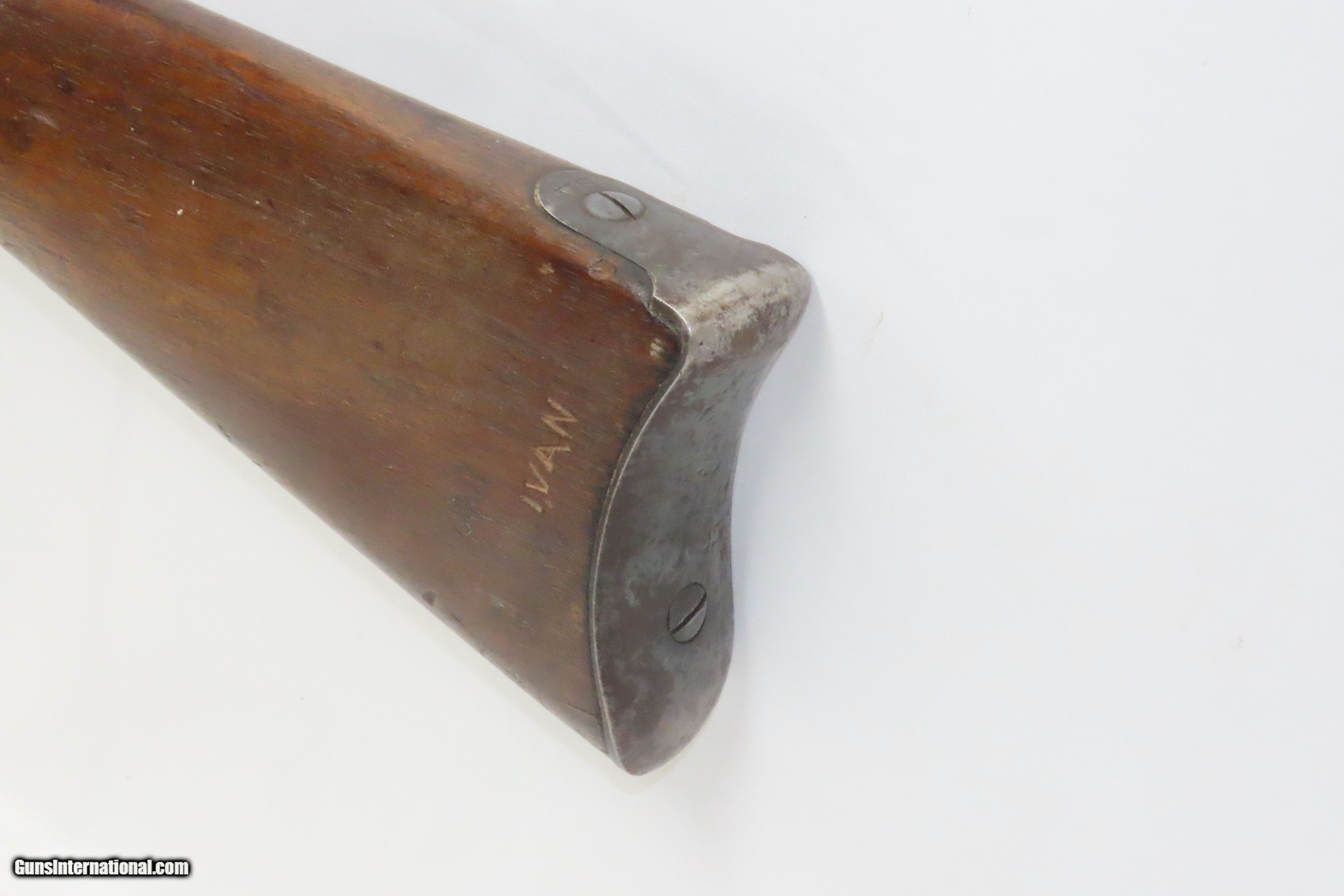 Description: Antique U.S. SPRINGFIELD M1884 “TRAPDOOR” .45-70 GOVT Rifle INDIAN WARS U.S. MILITARY Rifle with LEATHER SLING Here we present an antique U.S. Springfield Model 1884 Trapdoor Rifle, manufactured by the Springfield Armory. This rifle was manufactured in mid-1886, nearing the end of the Indian Wars and just four years before the Wounded Knee massacre. After the Civil War, the War Department wanted a breech-loading rifle. To be specific, it wanted a breech-loading rifle that would chamber a self-primed, metallic cartridge. Amazingly, despite the adoption of the ill-fated Model 1882 Chaffee-Reese Bolt Action Magazine Rifle, new models of trapdoor rifles continued to be produced and used all the way through the mid-1890s, until finally, the Krag-Jorgensen was adopted. The U.S. continued to see unrest and conflict with the displaced Native Americans during this time, including the Wounded Knee Massacre on December 29th, 1890. Trapdoors continued to see use all the way through the Spanish American War. The overall condition is very good. Robust action. bright bore. This example sports a solid stock showing an average amount of use. “IVAN” is hand carved into the left buttstock near the plate. The rear sight and cleaning rod are replacements. Sharply marked. Some original finish remains present in low trafficked areas. Good leather sling. Own the original! This is a legitimate antique and not a reproduction. Barrel is 32-5/8 inches. Caliber: .45-70 GOVT Overall condition as seen in photos. Very Fast. Very Safe. FREE SHIPPING WORLDWIDE. Delivered directly to your door by express mail! Guaranteed AUTHENTIC & Includes CERTIFICATE OF AUTHENTICITY. ancestryguns $1400 #233033 SOLD Antique: Yes |