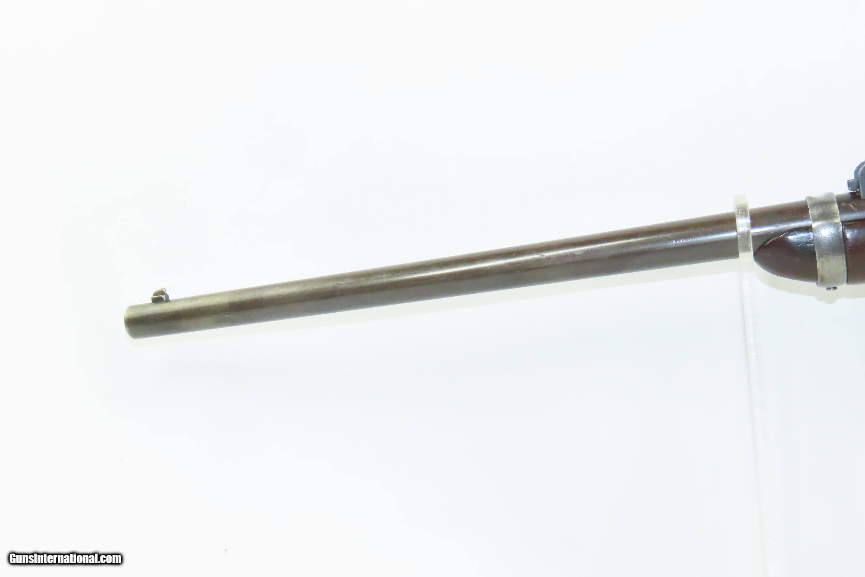 Description: Antique U.S. SPRINGFIELD M1884 TRAPDOOR .45-70 GOVT SR Carbine INDIAN WARS Single Shot U.S. MILITARY Rifle w/ “SWP” CARTOUCHE Here we present an antique U.S. Springfield Model 1884 Trapdoor Rifle that has been converted to a Saddle Ring Carbine, manufactured by the Springfield Armory. This rifle was manufactured circa April of 1886, nearing the end of the Indian Wars and just four years before the Wounded Knee massacre. After the Civil War, the War Department wanted a breech-loading rifle. To be specific, it wanted a breech-loading rifle that would chamber a self-primed, metallic cartridge. Amazingly, despite the adoption of the ill-fated Model 1882 Chaffee-Reese Bolt Action Magazine Rifle, new models of trapdoor rifles continued to be produced and used all the way through the mid-1890s, until finally, the Krag-Jorgensen was adopted. As white settlers moved into the Great Plains region, they battled the Plains Indian tribes in a series of conflicts known as the Sioux Wars, which lasted from 1854 to 1890. In 1875, the discovery of gold in the Black Hills region of South Dakota brought prospective miners into the area and onto the hunting grounds of the Sioux Indians. The US Army responded to the pleas of the white settlers and miners for protection against the Sioux, and the Great Sioux War of 1876-77 erupted. It was the last major conflict between the U.S. Army and the Sioux tribe. The U.S. continued to see unrest and conflict with the displaced Native Americans during this time, all the way through to the Wounded Knee Massacre on December 29th, 1890. Trapdoors continued to see use all the way through the Spanish American War. The overall condition is good. Converted from a rifle to a saddle ring carbine. Patina throughout. The action is strong. The bore is bright with strong rifling. The stock has been repaired around the wrist and action area. Own the original! This is a legitimate antique and not a reproduction. Barrel is 21-1/2 inches. Caliber: .45-70 GOVT Overall condition as seen in photos. Very Fast. Very Safe. FREE SHIPPING WORLDWIDE. Delivered directly to your door by express mail! Guaranteed AUTHENTIC & Includes CERTIFICATE OF AUTHENTICITY. ancestryguns $1500 #240364 SOLD Antique: Yes |
