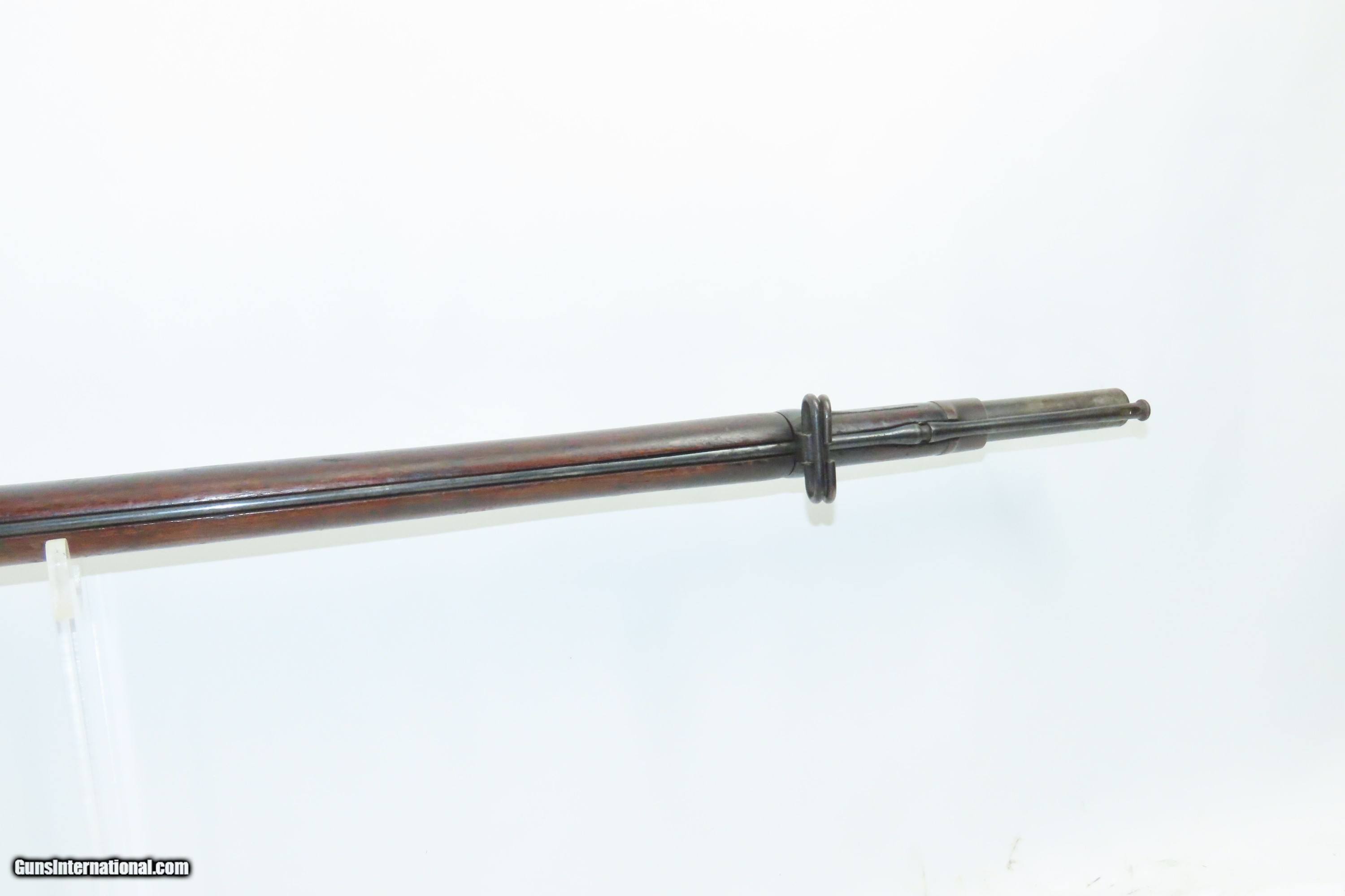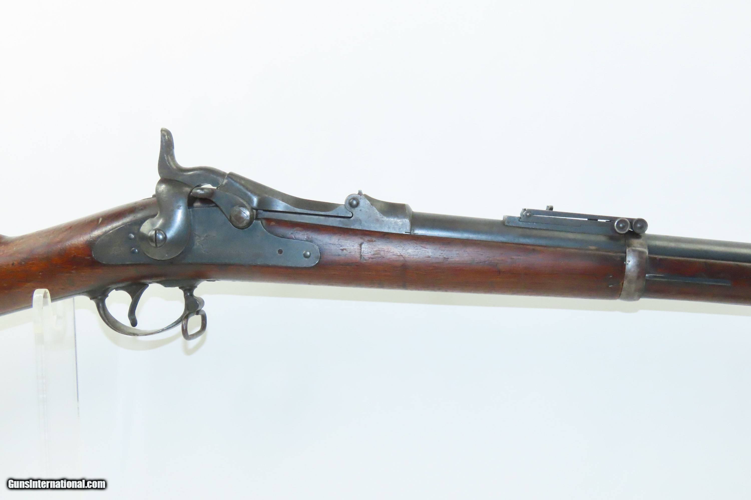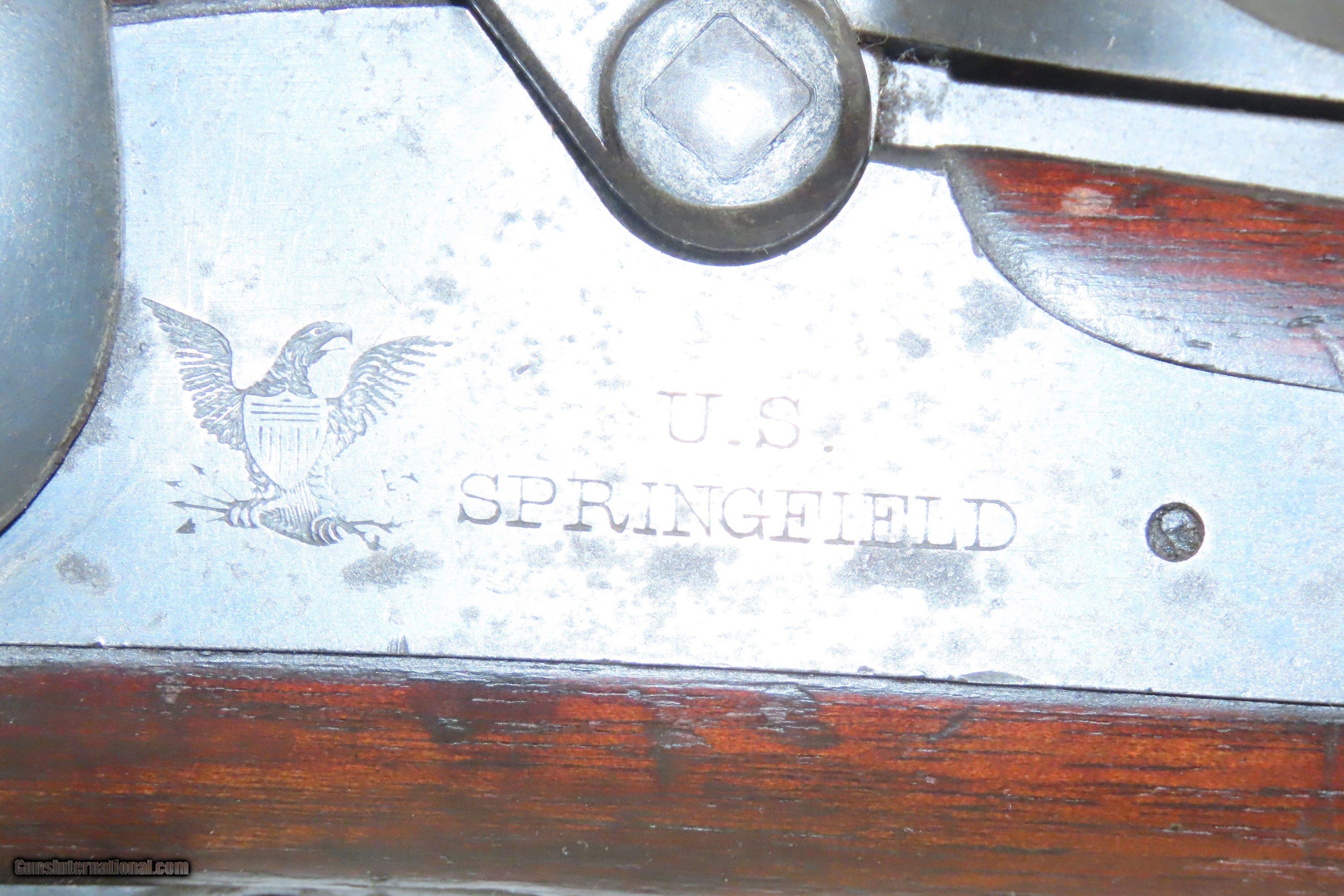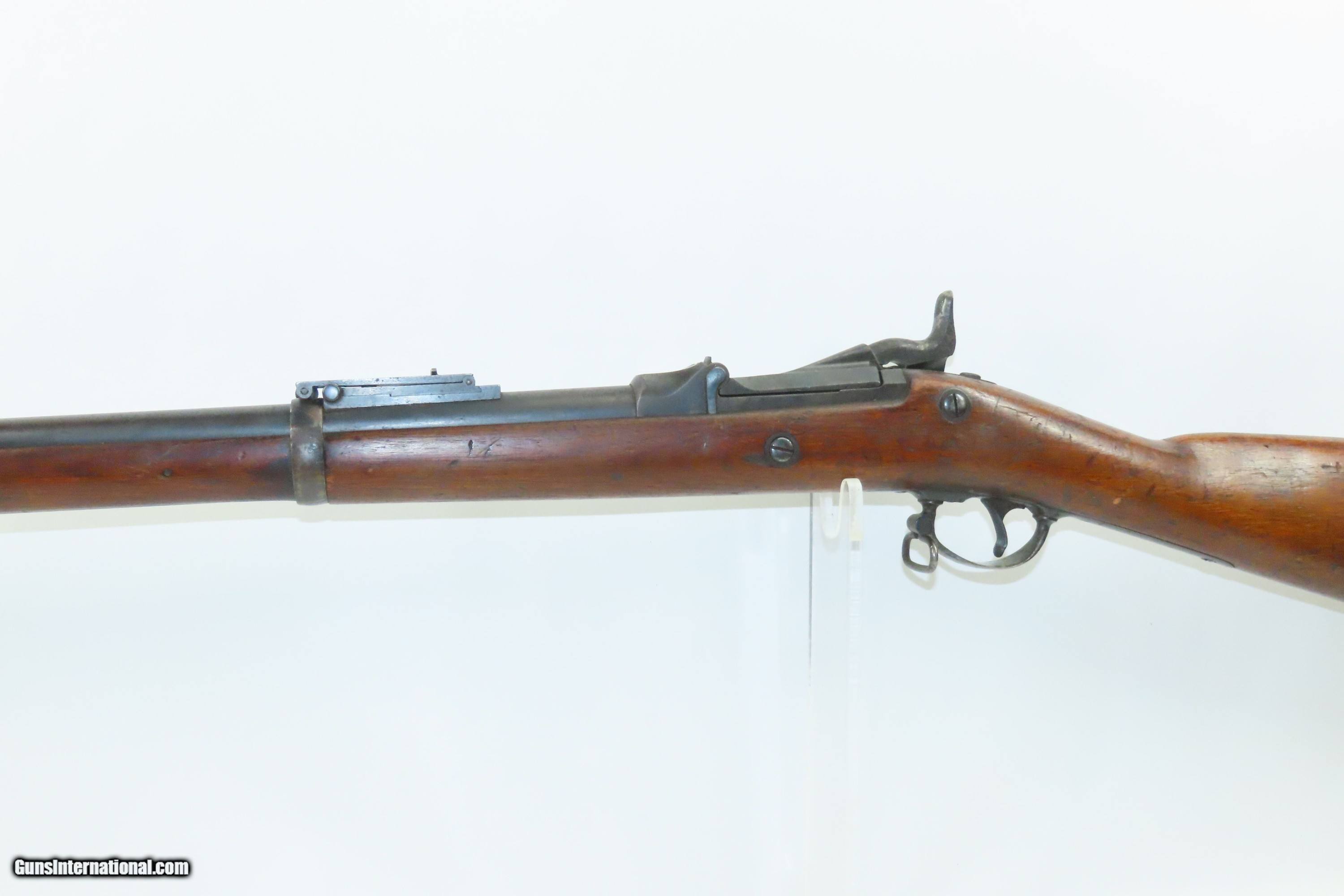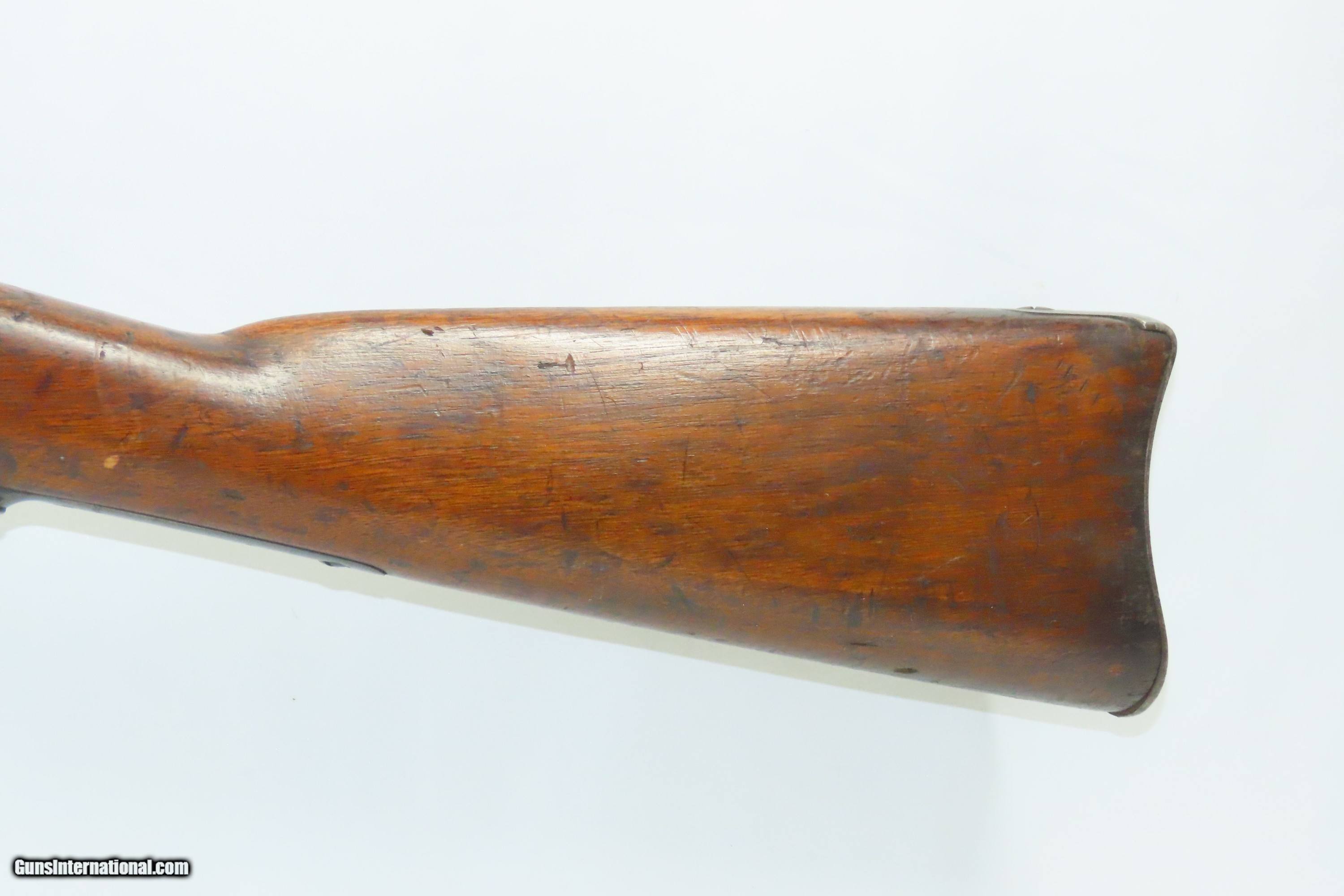 Description: Antique U.S. SPRINGFIELD M1884 TRAPDOOR .45-70 Rifle INDIAN WARS w/BAYONET U.S. MILITARY Rifle with BAYONET & SHEATH Here we present an antique U.S. Springfield Model 1884 Trapdoor Rifle, manufactured by the Springfield Armory. This rifle was manufactured circa April of 1888, nearing the end of the Indian Wars and just two years before the Wounded Knee massacre. After the Civil War, the War Department wanted a breech-loading rifle. To be specific, it wanted a breech-loading rifle that would chamber a self-primed, metallic cartridge. Amazingly, despite the adoption of the ill-fated Model 1882 Chaffee-Reese Bolt Action Magazine Rifle, new models of trapdoor rifles continued to be produced and used all the way through the mid-1890s, until finally, the Krag-Jorgensen was adopted. The U.S. continued to see unrest and conflict with the displaced Native Americans during this time, including the Wounded Knee Massacre on December 29th, 1890. Trapdoors continued to see use all the way through the Spanish American War. The overall condition is very good. Original finish. The action is excellent. The bore is bright with strong rifling. The walnut stock shows use and remains solid. The bayonet is in very good condition and fits nicely. Own the original! This is a legitimate antique and not a reproduction. Barrel is 32-5/8 inches. Caliber: .45-70 GOVT Overall condition as seen in photos. Very Fast. Very Safe. FREE SHIPPING WORLDWIDE. Delivered directly to your door by express mail! Guaranteed AUTHENTIC & Includes CERTIFICATE OF AUTHENTICITY. ancestryguns $1650 #240483 SOLD Antique: Yes |