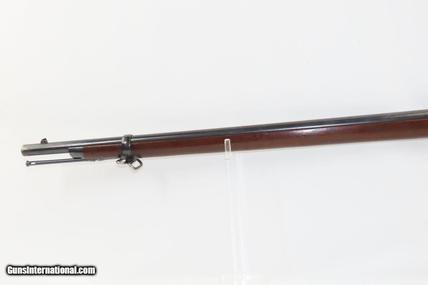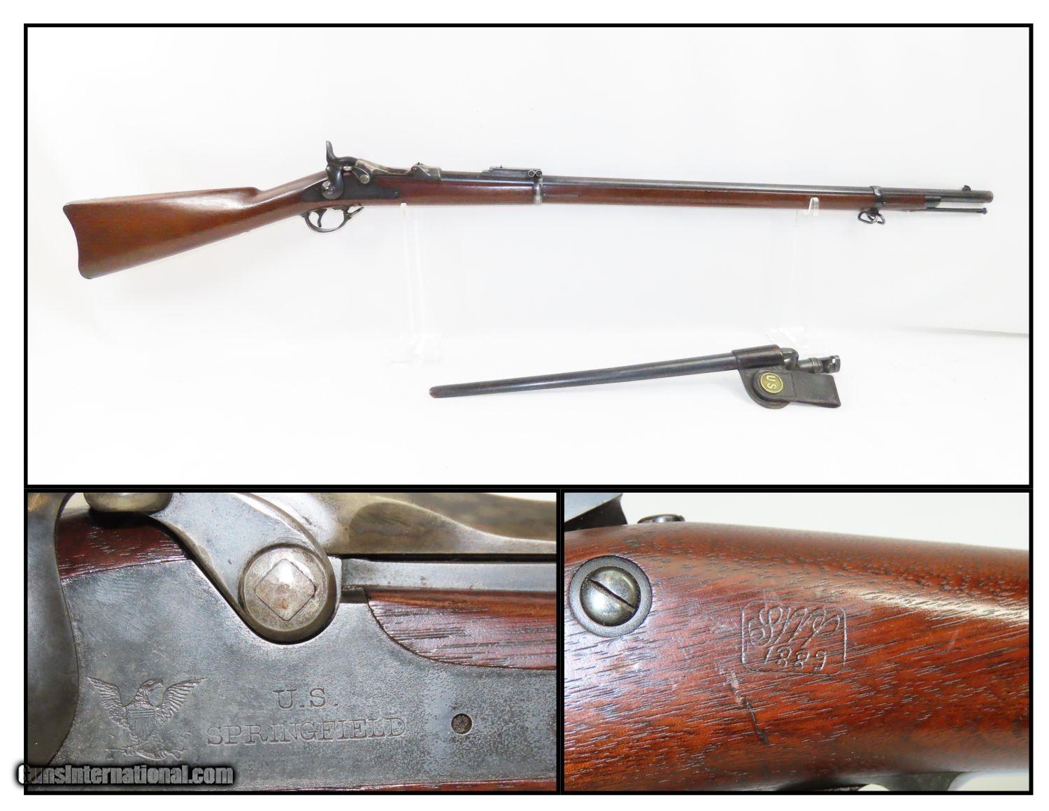 Description: Antique U.S. SPRINGFIELD Model 1884 “TRAPDOOR” .45-70 GOVT Caliber Rifle With SOCKET BAYONET and SCABBARD/HANGER Here we present an antique U.S. Springfield Model 1884 Trapdoor Rifle, made by the Springfield Armory. This rifle was manufactured in 1889, around the Indian the end of the Indian Wars and just before the Wounded Knee massacre. After the Civil War, the War Department wanted a breech-loading rifle. To be specific, it wanted a breech-loading rifle that would chamber a self-primed, metallic cartridge. Amazingly, despite the adoption of the ill-fated Model 1882 Chaffee-Reese Bolt Action Magazine Rifle, new models of trapdoor rifles continued to be produced and used all the way through the mid-1890s, until finally, the Krag-Jorgensen was adopted. The U.S. continued to see unrest and conflict with the displaced Native Americans during this time, including the Wounded Knee Massacre on December 29th, 1890. Trapdoors continued to see use all the way through the Spanish American War. This example has a very clear 1889 dated inspector cartouche with the initials “SWP”, for Master Armorer and Ordnance Inspector Samuel W. Porter. The overall condition is fine. Here is a truly beautiful rifle that showcases a bright bore, strong action, and an excellent stock! On the left wrist a “1889” dated cartouche is legible. There is a “circle/P” stamped behind the trigger guard. Original blue and case colors have been preserved. The bayonet and scabbard are fine! Own the original! This is a legitimate antique and not a reproduction. Barrel is 32-5/8 inches. Caliber: .45-70 GOVT Overall condition as seen in photos. Very Fast. Very Safe. FREE SHIPPING WORLDWIDE. Delivered directly to your door by express mail! Guaranteed AUTHENTIC & Includes CERTIFICATE OF AUTHENTICITY. ancestryguns $1945 #210856 SOLD Antique: Yes |