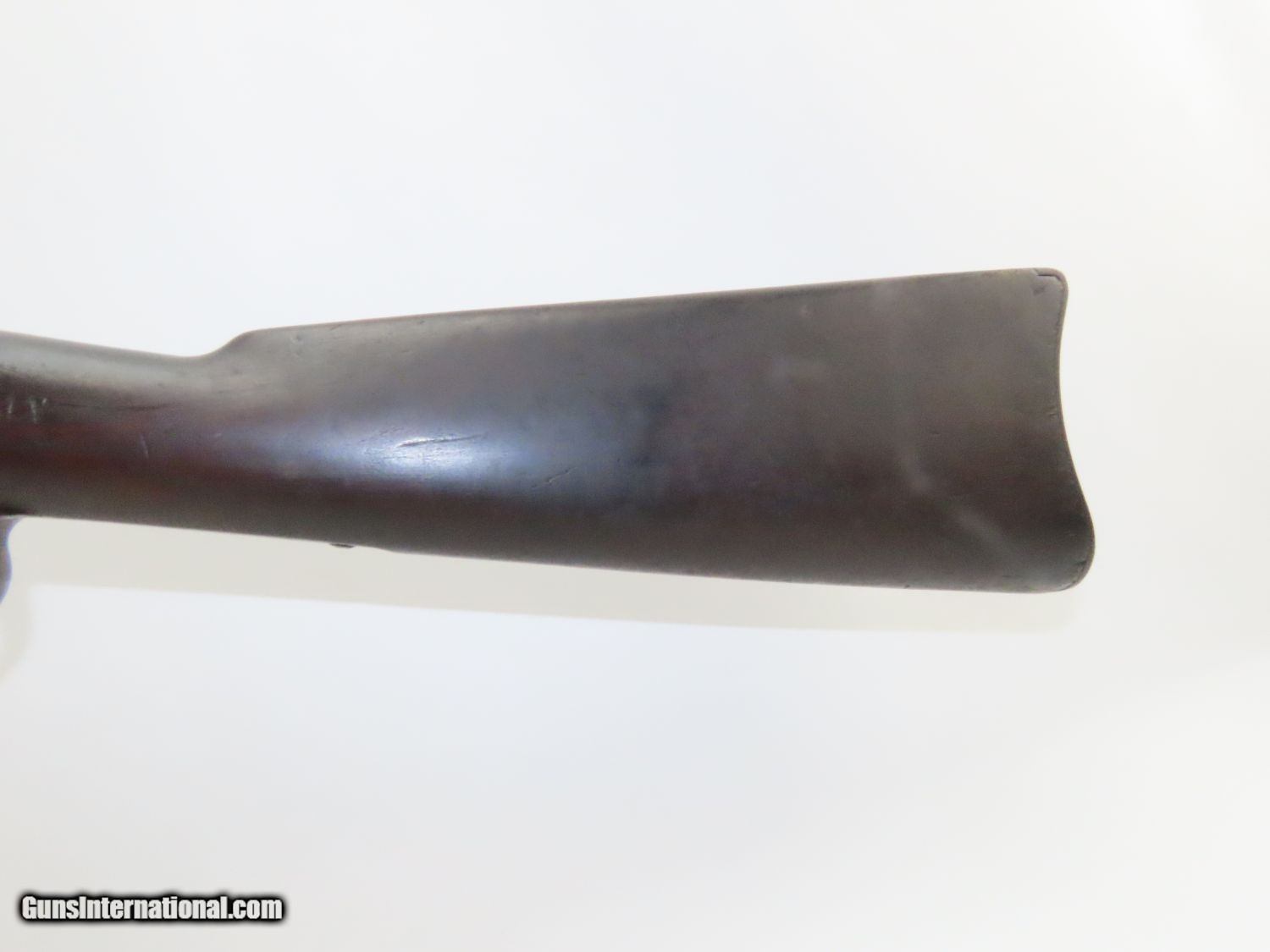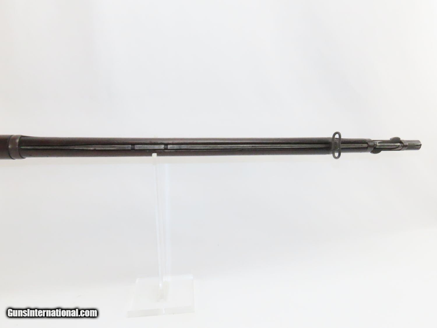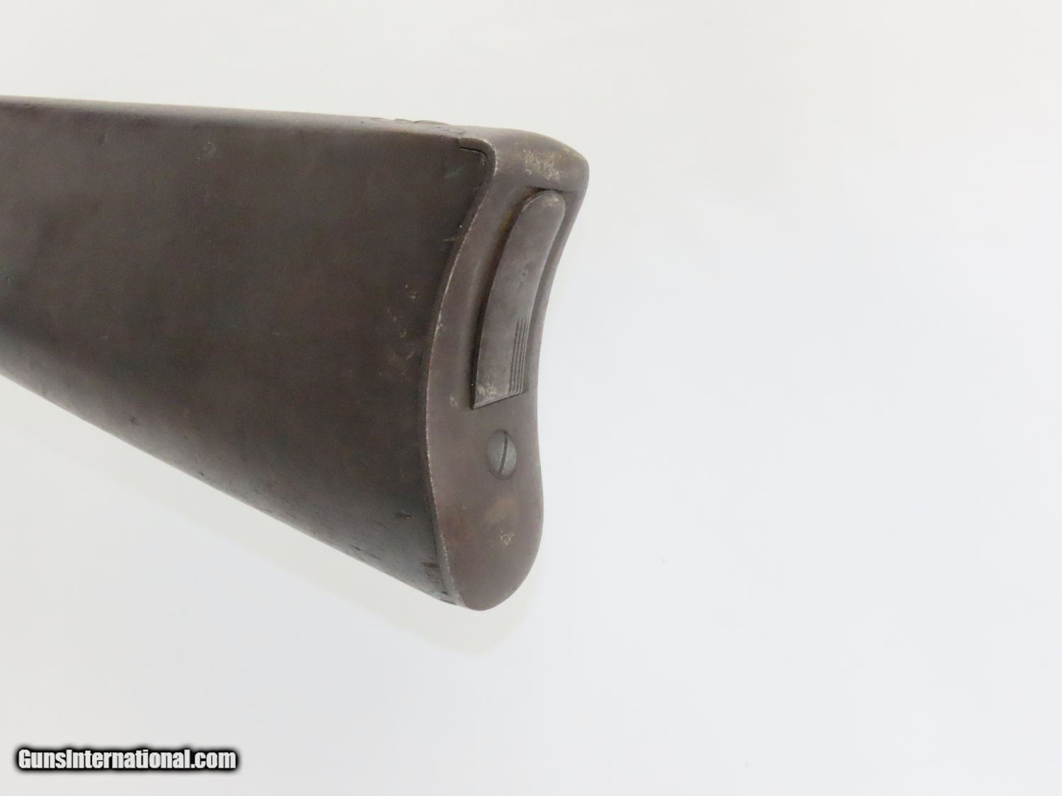 Description: Antique U.S. SPRINGFIELD Model 1888 TRAPDOOR Rifle Chambered in 45-70 GOVT Marked “JEM”, “69” & “J. DALY”! Here we present an antique U.S. Springfield Model 1888 Trapdoor Rifle in .45-70 GOVT, made circa 1892 in Springfield, Massachusetts. These were the last of the trapdoor rifles that were in use since the end of the American Civil War. It also marked the end of the black powder-era, single shot, big-bore, hammer-fired rifles in U.S. service. The U.S. government would adopt the Krag-Jorgensen in 30-40 Krag, a smokeless, small-bore, bolt action repeater. However, when the U.S. went to war with Spain in the Spanish-American War in Cuba, many, if not a majority, of the state militia troops were still using the latest models of trapdoor rifle. This rifle is equipped with a ramrod bayonet and a highly adjustable and optimistic Buffington rear sight. The breech block is marked “US MODEL 1884”, though the Model 1888 is its own distinct variant. The lock is marked with a federal eagle and “U.S. SPRINGFIELD”. It has a late serial number making it one of the produced. Many state militias purchased these and used them long after they were out of use with the federal military. The overall condition is very good. The action is strong with the bore remaining shiny bright with sharp rifling. A “SWP/1892” cartouche is clearly seen on the left stock representing SW Porter, an Ordnance Inspector at the Springfield Armory at that time. Circle “P” marking is present on the underside of the stock. “J. DALY” is stamped into the left stock as well. “69” is stamped nearly atop the “US” on the butt plate tang. “JEM” is carved into the right side of the butt stock. An original trapdoor full of character and in great condition! Own the original! This is a legitimate antique and not a reproduction. Barrel is 32-5/8 inches. Caliber: .45-70 GOVT Overall condition as seen in photos. Very Fast. Very Safe. FREE SHIPPING WORLDWIDE. Delivered directly to your door by express mail! Guaranteed AUTHENTIC & Includes CERTIFICATE OF AUTHENTICITY. ancestryguns $1635 #20596 SOLD Antique: Yes |