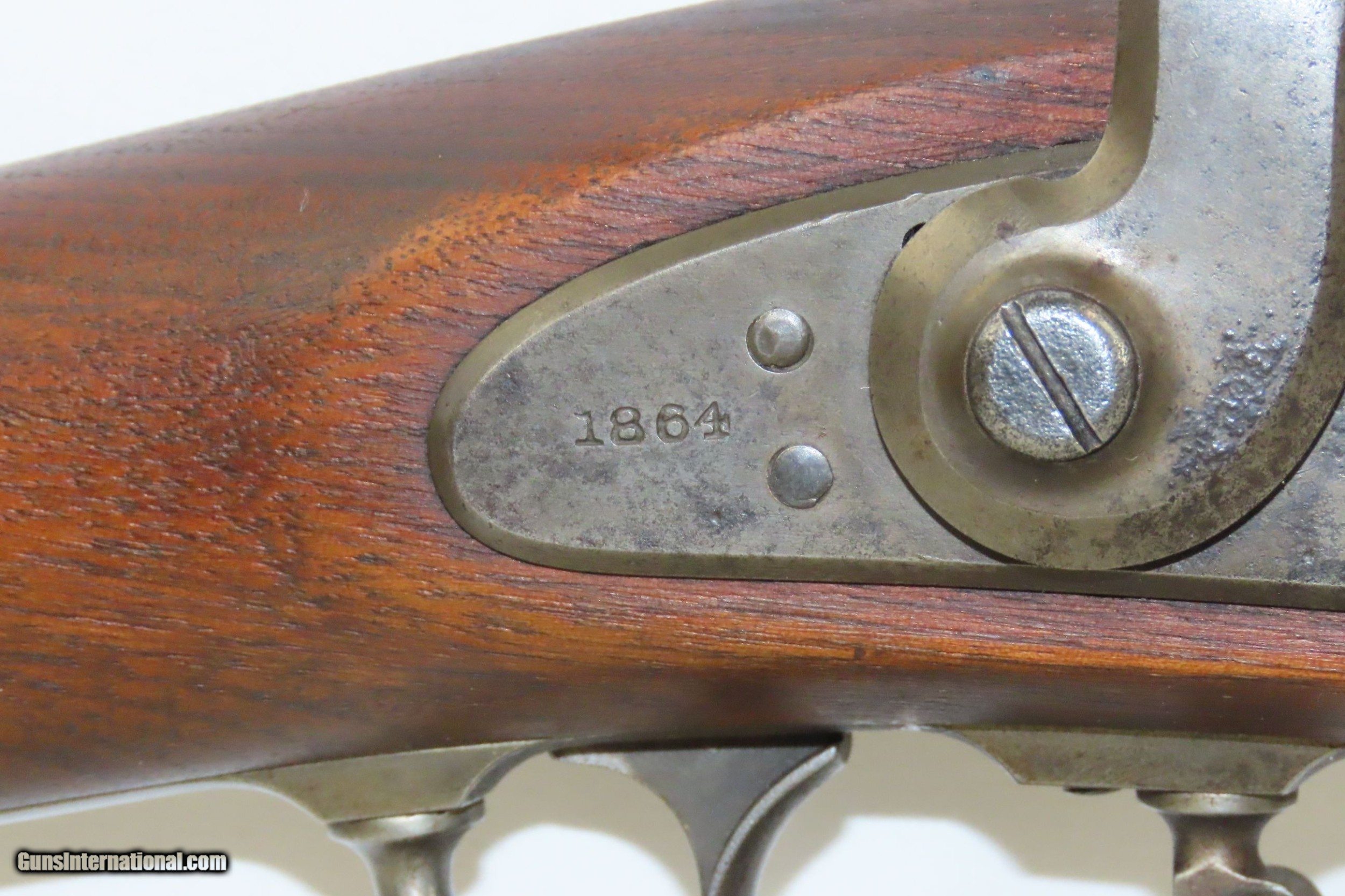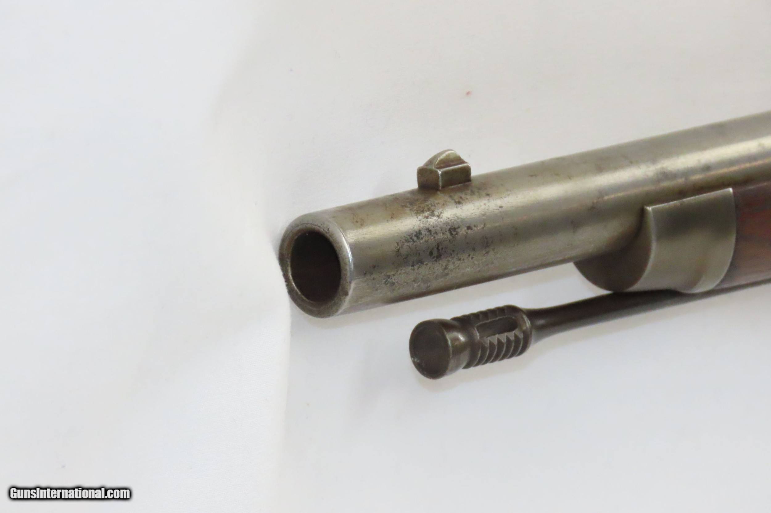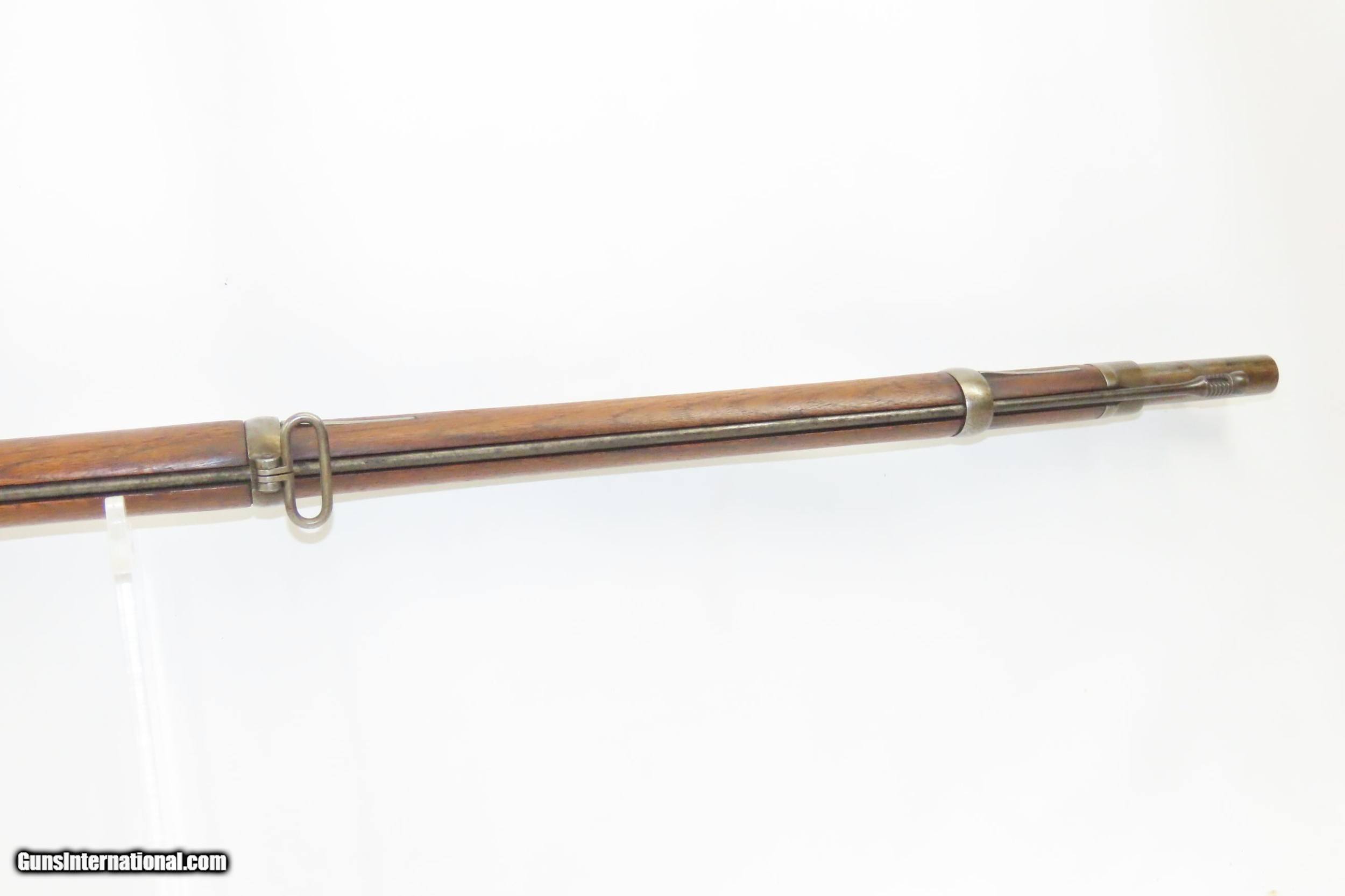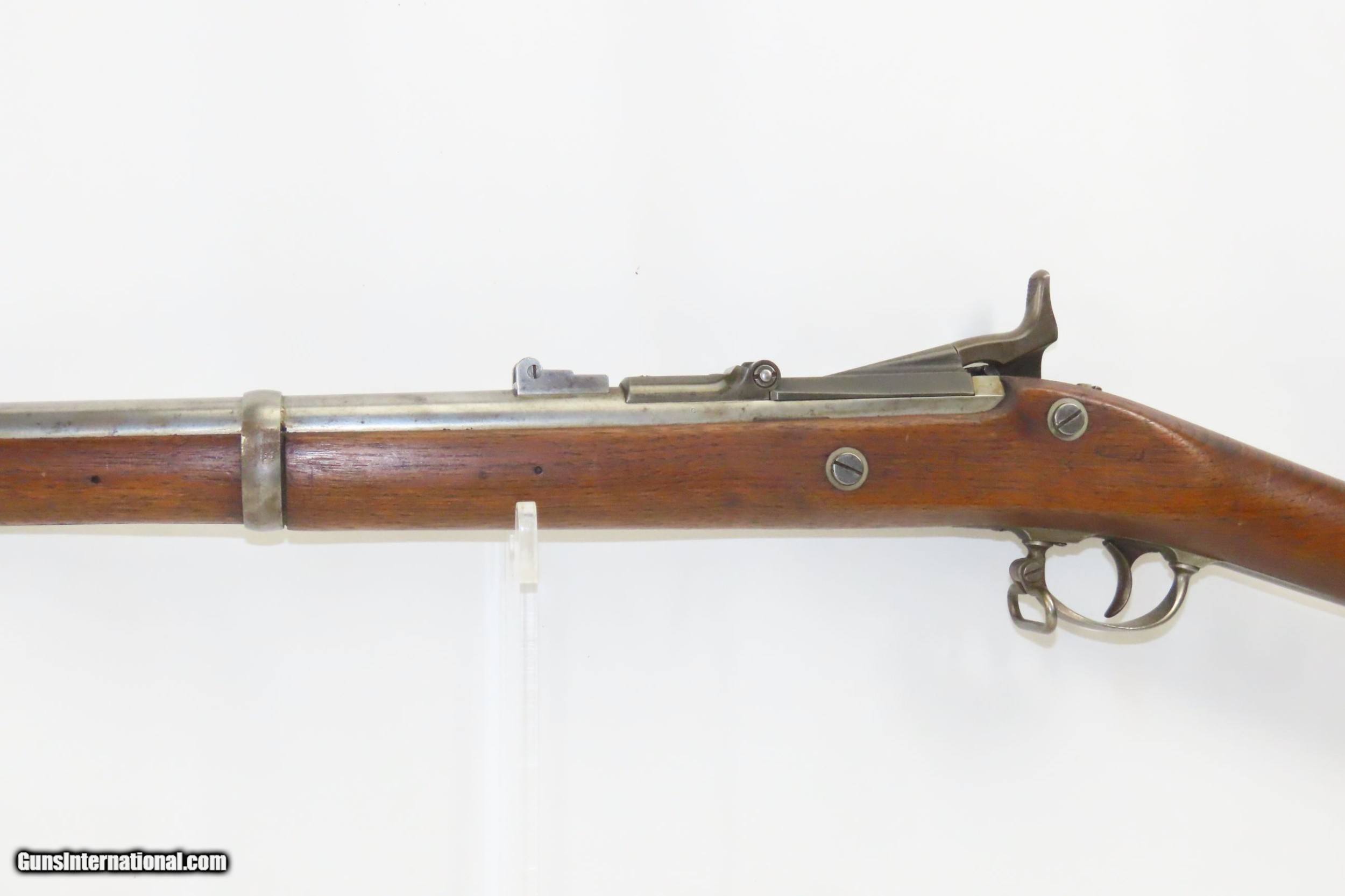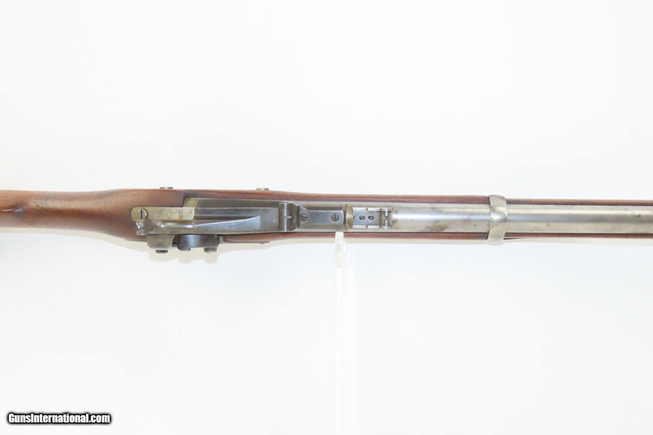 Description: Antique US SPRINGFIELD Model 1866 .50-70 GOVT 2nd ALLIN Conversion TRAPDOOR INDIAN WARS Infantry Rifle Here we present an antique Springfield Model 1866 2nd Allin Conversion Trapdoor, the rifle being manufactured circa 1864 and then converted shortly after that circa 1866. After the American Civil War, the United States military was slow to adopt new technological advances in firearms and opted to retrofit their enormous surplus inventory of Model 1861 type muskets to fire cartridges. Many different types of conversions were conceived and implemented. This one is named for its inventor, Erskine S. Allin, Master Armorer for Springfield Armory. The Springfield Model 1866 was the second iteration of the Allin designed trapdoor breech-loading mechanism. Originally developed as a means of converting rifle muskets to breechloaders, the Allin modification ultimately became the basis for the definitive Springfield Model 1873 Trapdoor, the first breech-loading rifle adopted by the United States War Department for manufacture and widespread issue to U.S. troops. These conversions were the main infantry weapon of the West and played a large role in the Indian Wars of the late 19th century. Approximately 25,000 .58 caliber Springfield Model 1863 rifled muskets were converted by Springfield Armory for use by U.S. troops, the barrels being relined and rifled to .50 caliber and the trapdoor breech system affixed. The rifle was chambered for the powerful centerfire .50-70 Government cartridge. The overall condition is very good+. Original finish. The action is excellent and the bore is in very good condition for age and black powder use: sharp rifling with lands a bit brighter than the grooves. The walnut stock is smooth and solid and shows a cartouche on the left stock flat and a smaller stamp just behind the trigger guard tang. Overall, a very nicely preserved piece that was made during the Civil War and then updated for the Indian Wars and Westward Expansion! Own the original! This is a legitimate antique and not a reproduction. Barrel is 36-5/8 inches. Caliber: .50-70 GOVT Overall condition as seen in photos. Very Fast. Very Safe. FREE SHIPPING WORLDWIDE. Delivered directly to your door by express mail! Guaranteed AUTHENTIC & Includes CERTIFICATE OF AUTHENTICITY. ancestryguns $2425 #220037 SOLD Antique: Yes |