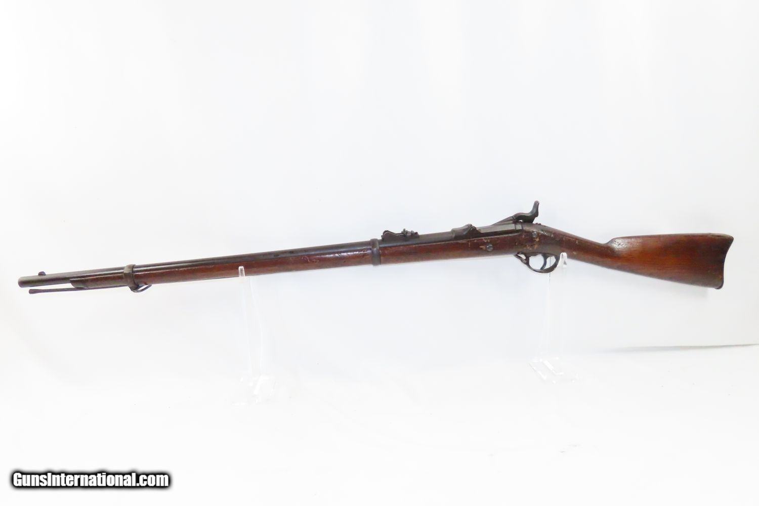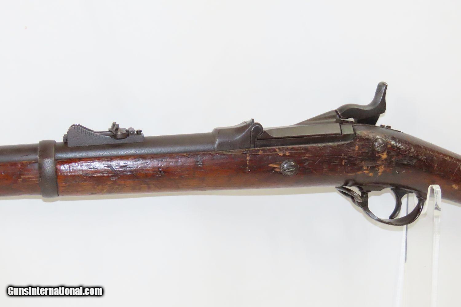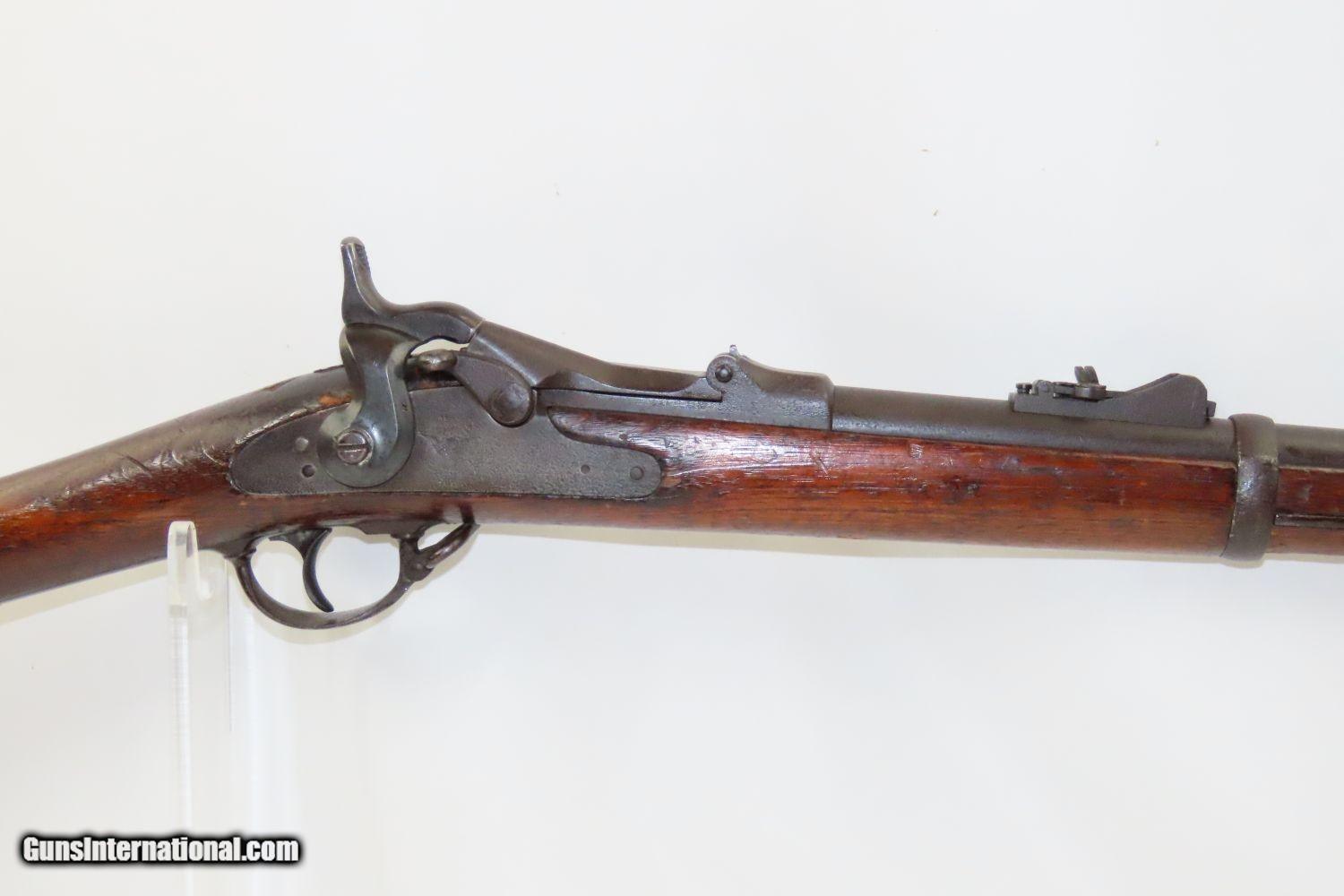 Description: Antique US SPRINGFIELD Model 1873 TRAPDOOR .45-70 GOVT Caliber CADET Rifle Manufactured at the Height of the Indian Wars! Here we present an antique U.S. Springfield Model 1873 Trapdoor Cadet Rifle, made by the Springfield Armory. Manufactured between 1873 and 1877 during the height of the Indian War and the Custer massacre, this is a cadet rifle version of the U.S. Springfield Model 1873. After the Civil War, the War Department wanted a breech-loading rifle. To be specific, it wanted a breech-loading rifle that would chamber a self-primed, metallic cartridge. Amazingly, despite the adoption of the ill-fated Model 1882 Chaffee-Reese Bolt Action Magazine Rifle, new models of trapdoor rifles continued to be produced and used all the way through the mid-1890s, until finally, the Krag-Jorgensen was adopted. The U.S. continued to see unrest and conflict with the displaced Native Americans during this time, including the Wounded Knee Massacre on December 29th, 1890. Trapdoors continued to see use all the way through the Spanish American War. The overall condition is good. Strong action. The bore is bright, with slight frosting. The stock is solid. Signs of weathering throughout. “1873” dated breech. “RL” is tamped on the left buttstock with “RWB” on the right. Own the original! This is a legitimate antique and not a reproduction. Barrel is 29-3/4 inches. Caliber: .45-70 GOVT Overall condition as seen in photos. Very Fast. Very Safe. FREE SHIPPING WORLDWIDE. Delivered directly to your door by express mail! Guaranteed AUTHENTIC & Includes CERTIFICATE OF AUTHENTICITY. ancestryguns $1425 #210832 SOLD Antique: Yes |