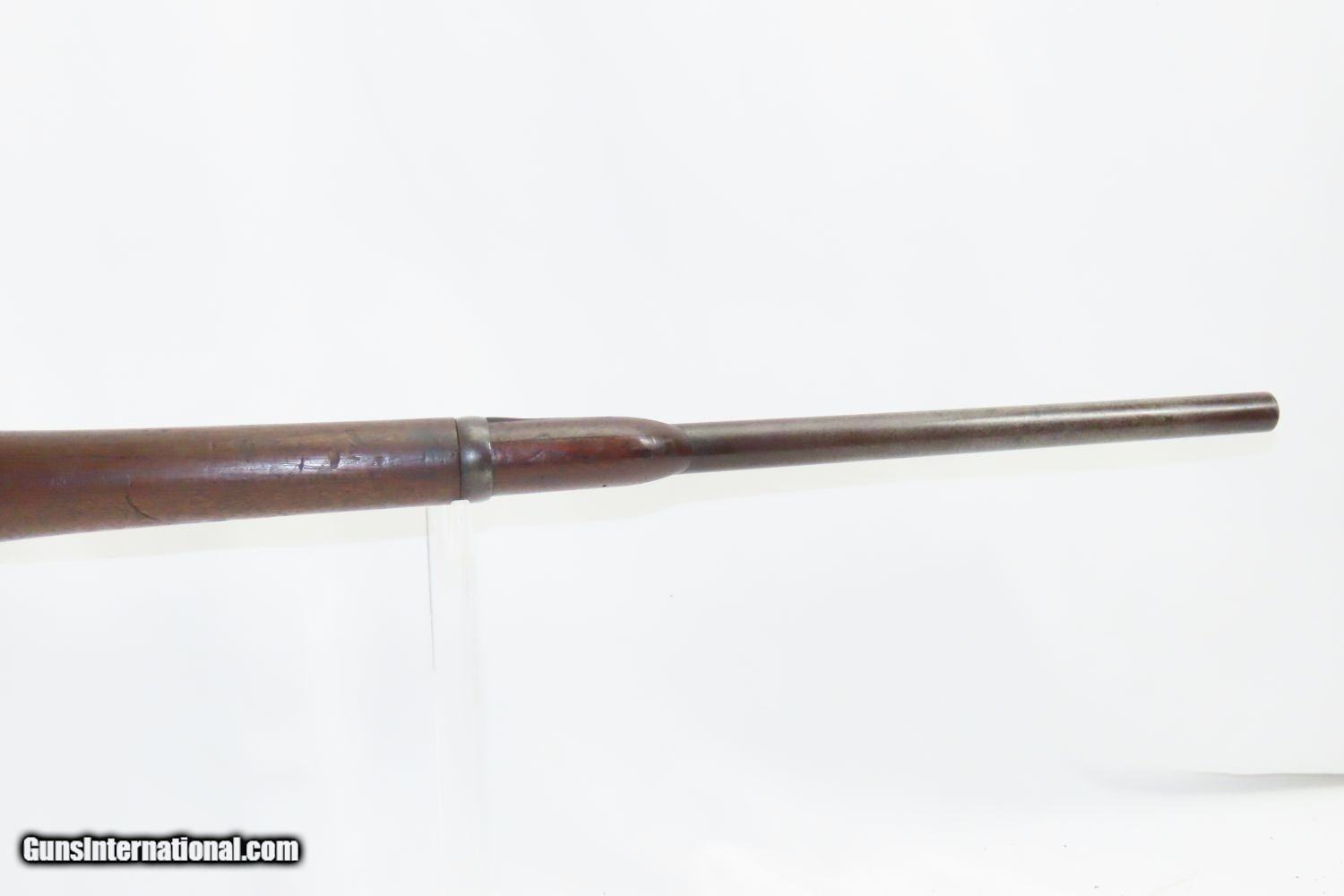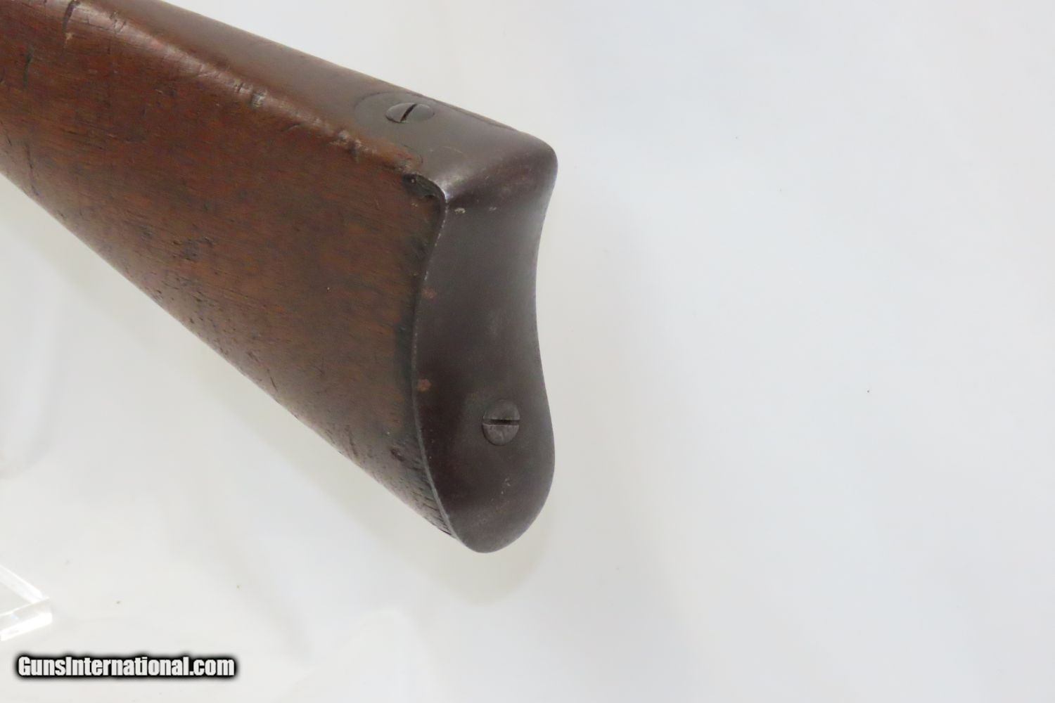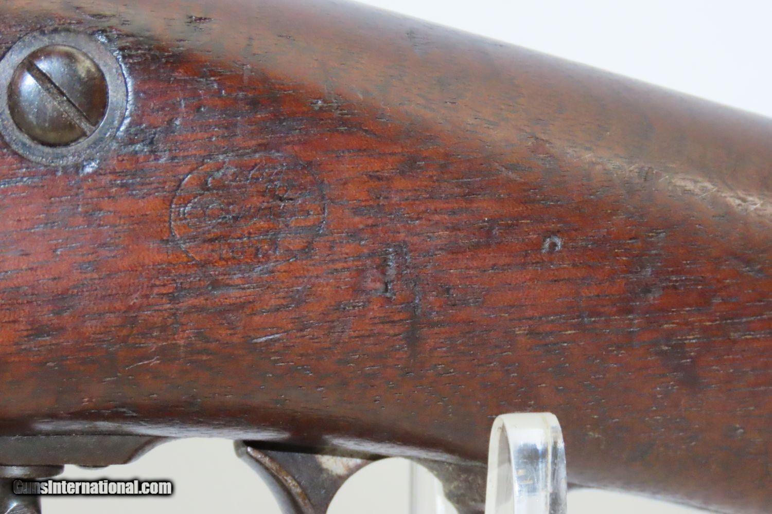Description: c1877 INDIAN WARS Antique SPRINGFIELD Model 1873 U.S. Military TRAPDOOR Rifle Converted to Carbine Length Here we present an antique U.S. Springfield Model 1873 Trapdoor Rifle, made circa 1877. After the Civil War, the War Department wanted a breech-loading rifle. To be specific, it wanted a breech-loading rifle that would chamber a self-primed, metallic cartridge. Amazingly, despite the adoption of the ill-fated Model 1882 Chaffee-Reese Bolt Action Magazine Rifle, new models of trapdoor rifles continued to be produced and used all the way through the mid-1890s, until finally, the Krag-Jorgensen was adopted. The U.S. continued to see unrest and conflict with the displaced Native Americans during this time, including the Wounded Knee Massacre on December 29th, 1890. Trapdoors continued to see use all the way through the Spanish American War. This one was shortened to approximately carbine length and smooth bored. The bore measures .471” at the muzzle. The rear sight is marked with a “C”. The front sight is a replacement after the shortening. The overall condition is good. Robust action, though the firing pin is short and could use replacing to make it functional again. Bright, smooth bored barrel. Solid walnut stock with a cartouche remnant on the left stock flat that is dated 1877. “US” is stamped on the lock and butt plate tang. Own the original! This is a legitimate antique and not a reproduction. Barrel is 21-3/4 inches. Overall condition as seen in photos. Very Fast. Very Safe. FREE SHIPPING WORLDWIDE. Delivered directly to your door by express mail! Guaranteed AUTHENTIC & Includes CERTIFICATE OF AUTHENTICITY. ancestryguns $1215 #210647 SOLD Antique: Yes |
