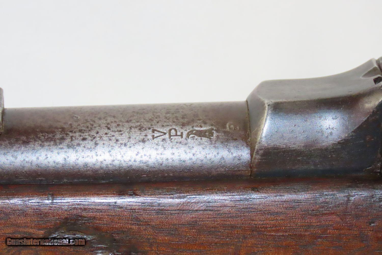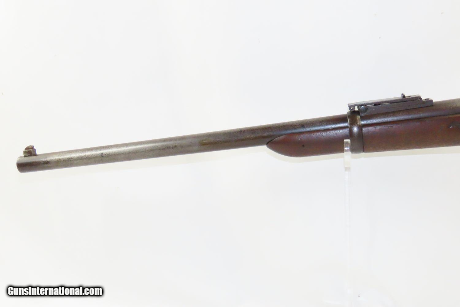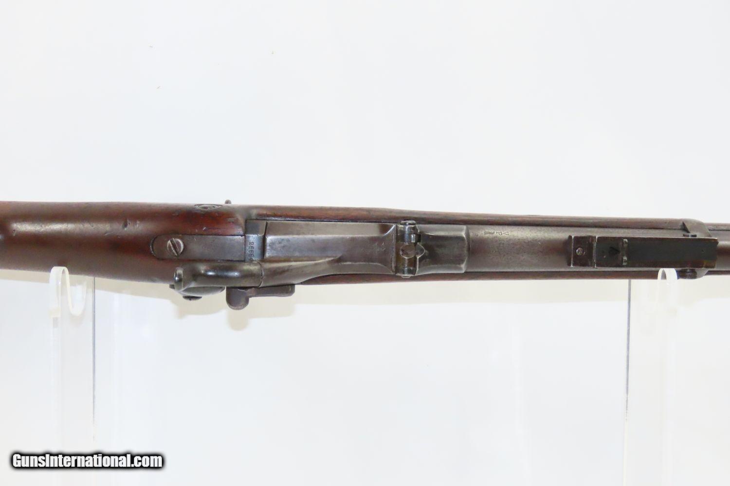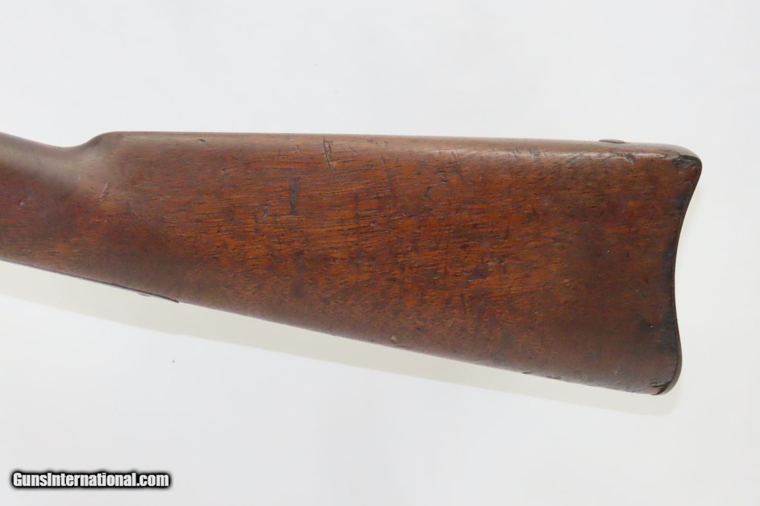 Description: c1877 INDIAN WARS Antique SPRINGFIELD Model 1873 U.S. Military TRAPDOOR Rifle Converted to Carbine Length Here we present an antique U.S. Springfield Model 1873 Trapdoor Rifle, made circa 1877. After the Civil War, the War Department wanted a breech-loading rifle. To be specific, it wanted a breech-loading rifle that would chamber a self-primed, metallic cartridge. Amazingly, despite the adoption of the ill-fated Model 1882 Chaffee-Reese Bolt Action Magazine Rifle, new models of trapdoor rifles continued to be produced and used all the way through the mid-1890s, until finally, the Krag-Jorgensen was adopted. The U.S. continued to see unrest and conflict with the displaced Native Americans during this time, including the Wounded Knee Massacre on December 29th, 1890. Trapdoors continued to see use all the way through the Spanish American War. This one was shortened to approximately carbine length and smooth bored. The bore measures .471” at the muzzle. The rear sight is marked with a “C”. The front sight is a replacement after the shortening. The overall condition is good. Robust action, though the firing pin is short and could use replacing to make it functional again. Bright, smooth bored barrel. Solid walnut stock with a cartouche remnant on the left stock flat that is dated 1877. “US” is stamped on the lock and butt plate tang. Own the original! This is a legitimate antique and not a reproduction. Barrel is 21-3/4 inches. Overall condition as seen in photos. Very Fast. Very Safe. FREE SHIPPING WORLDWIDE. Delivered directly to your door by express mail! Guaranteed AUTHENTIC & Includes CERTIFICATE OF AUTHENTICITY. ancestryguns $1215 #210647 SOLD Antique: Yes |
