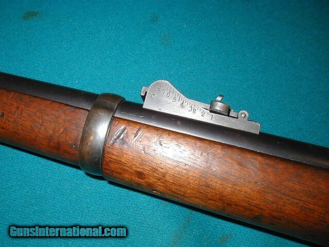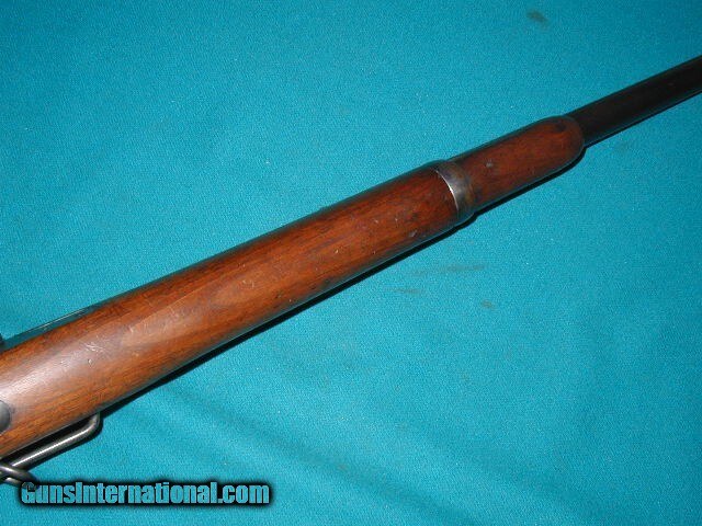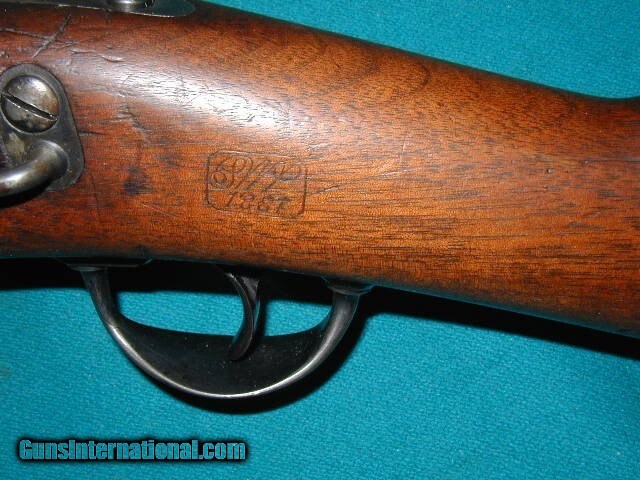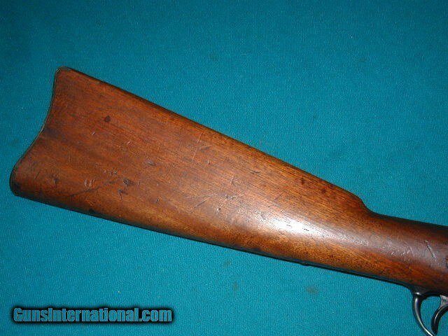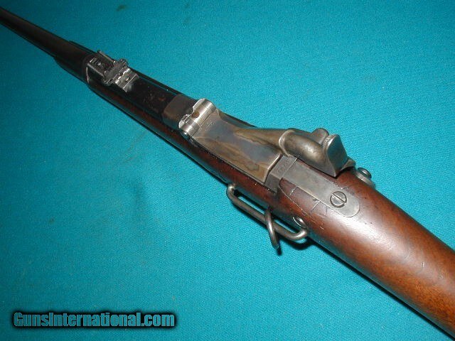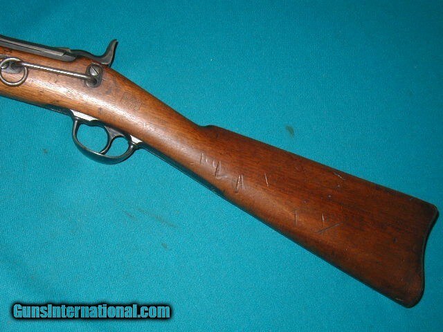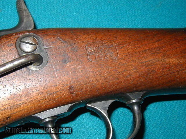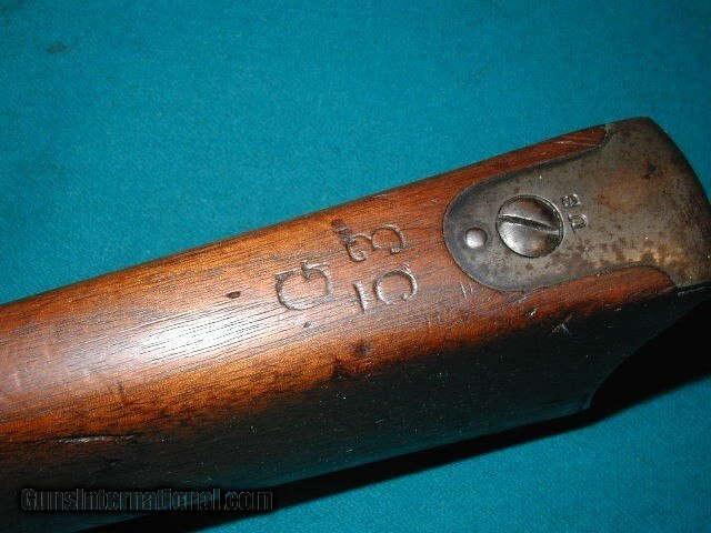 Description: THIS IS AN EXCELLENT ORIGINAL , UN-ALTERED MODEL 1879 SPRINGFIELD SADDLE RING CARBINE, 45-70. THE CELAR SWP CARTUCHE INDICATES IT WAS MADE IN 1881 AND ALSO HAS A SCRIPT "P" PROOF. IT RETIANS MOST OF THE ORIGINAL BARREL BLUEE, TURNING TO A BLUE PLUMB MIX JUST DISTAL TO THE STOCK FOREND. THERE ARE STILL SOME VISIBLE CASE COLORS ON THE BOLT. THE ROLLER COASTER REAR SIGHT IS MARKED WITH A "C" ON THE SIDE AS WELL AS THE LADDER AND STILL RETIANS IT'S ORIGINAL SCREW CAPS. IT HAS A BRIGHT SHARP EXCELLENT BORE. THERE IS ALSO A UNIT MARKING ON THE TOP REAR OF THE BUTT STOCK. CLEAR MARKINGS THROUGHOUT WITH MUCH BLUE ON THE TRIGGER GUARD AND SIDEPLATE. THERE ARE CLEANING RODS IN THE BUTT. AN EXCELLENT ALL ORIGINAL VIRGIN SADDLE RING TRAPDOOR CARBINE. Antique: Yes Price: $2,450.00 Shipping: $40.00 Contact Seller |