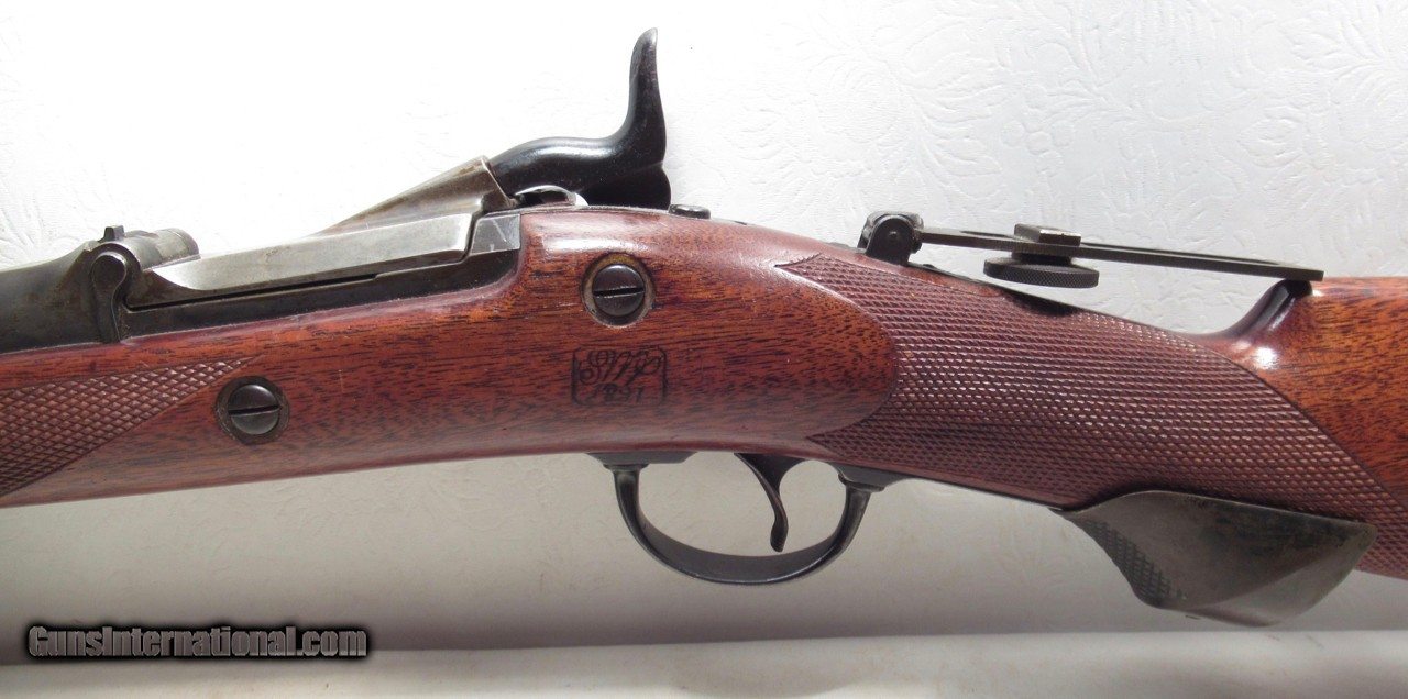Description: J.P. Gemmer Modified Springfield 1873 Trapdoor Officer’s Model Rifle; Serial No. 232230; Officer’s Model Configuration with J.P. Gemmer – St. Louis, MO. Modifications (See Photos); Perfect Action and Bore; Rare, Rare, Rare; 26 ½” Barrel; 45/70 Caliber; All Military Inspector Marks Present; Metal Pistol Grip; Very Fine Condition; Very Few Known to Exist; J.P. Gemmer was One of the Original Hawkens Gun Shop Owners; See All Photos for Condition; No Texts; Call (254)541-5765 or Email Only; PERSONAL PROPERTY of Harold Wieser; NOTICE: We Do Not Do Any Consignments - All Items Listed are Owned by Us - NO SALES to New Jersey or New York City - Antiques Only to Massachusetts and California; Price: $14,975 + $75 S&H Via USPS PRIORITY MAIL; Payment Address: Harold Wieser - 1466 U.S. Hwy 77 - Rosebud, TX 76570; SEND PAYMENTS VIA USPS PRIORITY MAIL; BEWARE of SCAMS!!! – DO NOT SEND MONEY or CORRESPONDENTS ELECTRONICALLY UNLESS YOU HAVE SPOKEN to HAROLD WIESER FIRST! 254-541-5765 SOLD Antique: Yes Manufacturer: Springfield Model: 1873 - J.P. Gemmer Serial Number: 232230 |