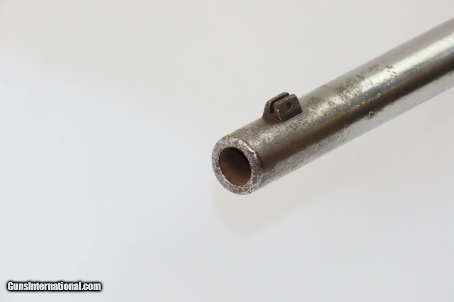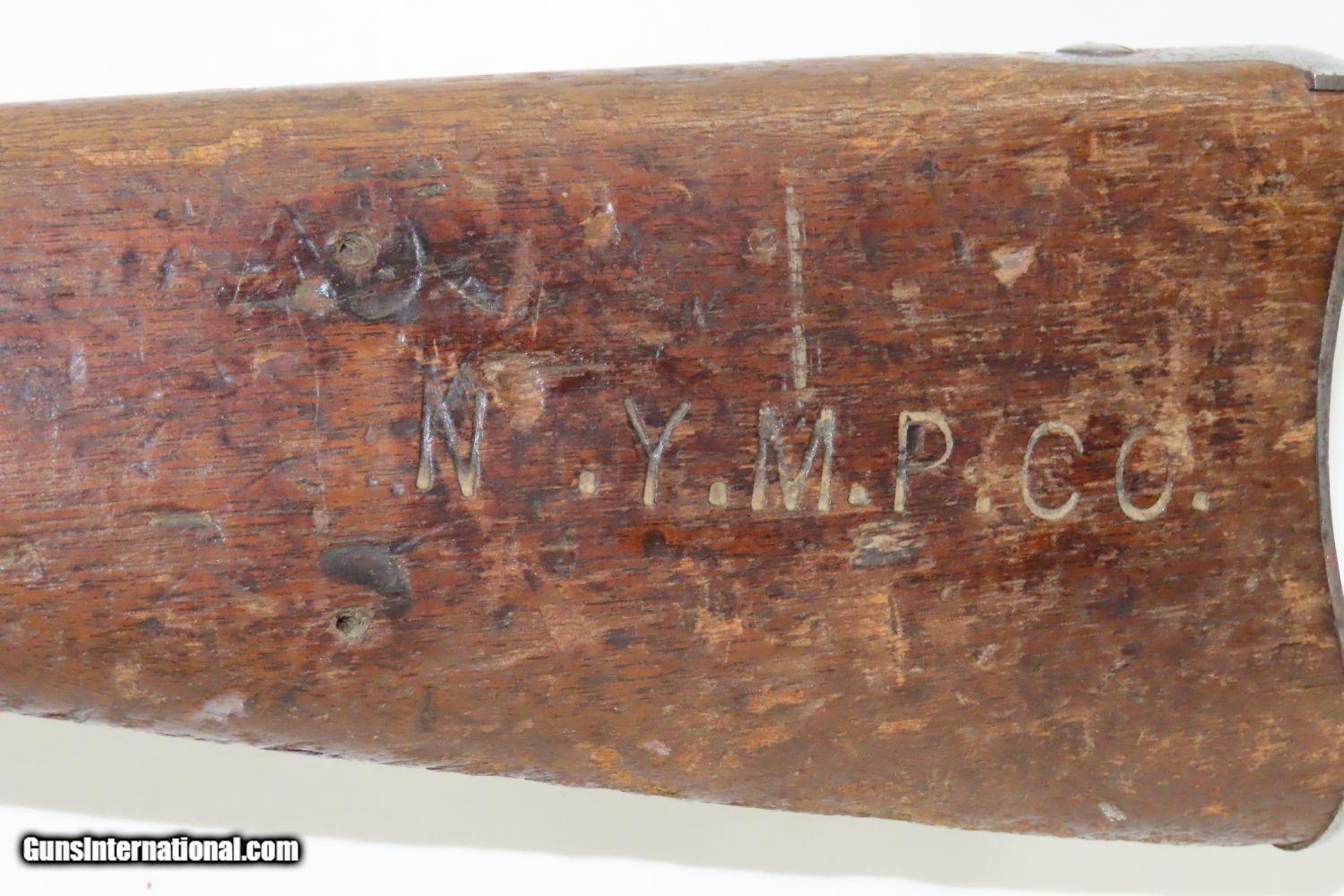 Description: FOX FILM/NEW YORK MOTION PICTURE Co. Prop SPRINGFIELD TRAPDOOR .45-70 GOVT Antique Carbine Used in Early Westerns! Here we present an antique U.S. Springfield Model 1890 Trapdoor Rifle, made by Springfield Armory. This carbine is an authentic firearm used by both the New York Motion Picture Company and Fox Film as a movie prop. The NYMPCo was in business under that name from about 1909 until about 1915, when the company merged with (or was integrated into) Keystone Studios and moved to California. This might have been when Fox Film came to own this piece as they were also in New York and began in 1915. Fox Film would move out to California in 1925. Fox Film would continue to grow and would merge with 20th Century in 1934 to make 20th Century Fox. NYMPCo both distributed and made films under the trade names of 101 Bison (this one is particularly interesting for its partnership and use of 101 Ranch in Ponca, Oklahoma), Kay-Bee, Broncho, Domino, and Reliance. Interestingly, there was a brief merger with Universal Film Mfg. Co. in 1912, but there was strife and the NYMPCo backed out, while Universal continued to use the 101 Bison name to sell films. There were many, many Western films made during this period, some of them still available and some lost to history when the originals were misplaced or burned up in fires. This carbine is marked “N.Y. M.P. CO.” on the left side of the stock, as well as “FOX” on the receiver and “FOX FILM” on the bottom of the stock. There is also a faint “GPC” stamp right over the circle “P” stamp on the bottom of the stock, alluding perhaps to a third picture company owner. This rifle was manufactured in 1887, around the Indian the end of the Indian Wars and just before the Wounded Knee massacre. These so-called “Model 1890” carbines are actually Model 1873, 1877, and 1884 carbines that were altered by fitting front sight protectors and fitting a special barrel band that cradles the top of the rear sight ladder and protects it from snagging or being struck. This example is a Model 1884 and has the standard 1884/1890 features. These upgraded features include an unmarked stock replacement with a compartment for the cleaning rod and a broken shell extractor, a butt plate with a sliding access cover, a Buffington rear sight with a carbine “C” marking on the sight leaf, and a rear sight protector. It is believed that these upgrades were undertaken at Fort Riley, Kansas. This carbine has been there and done that. Its stock shows a lot of use, probably due to the fact that it did get used a lot, though not by people whose lives depended on the condition of their weapon. Robust action. The bore is dim. This is a piece that we decided to leave in its present state. It could be cleaned up significantly, but this is a relic of a different sort, and we will let the new owner decide what they will do with it! An incredible piece of early motion pictures, film studios, Hollywood, and Western history! Own the original! This is a legitimate antique and not a reproduction. Barrel is 22 inches. Caliber: .45-70 GOVT Overall condition as seen in photos. Very Fast. Very Safe. FREE SHIPPING WORLDWIDE. Delivered directly to your door by express mail! Guaranteed AUTHENTIC & Includes CERTIFICATE OF AUTHENTICITY. ancestryguns $2245 #210644 SOLD Antique: Yes |