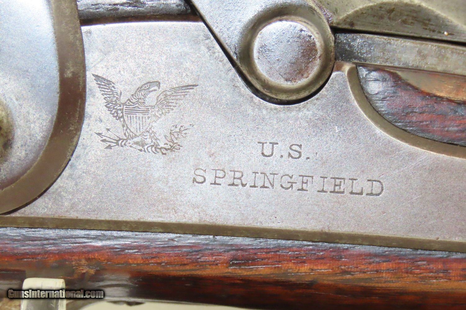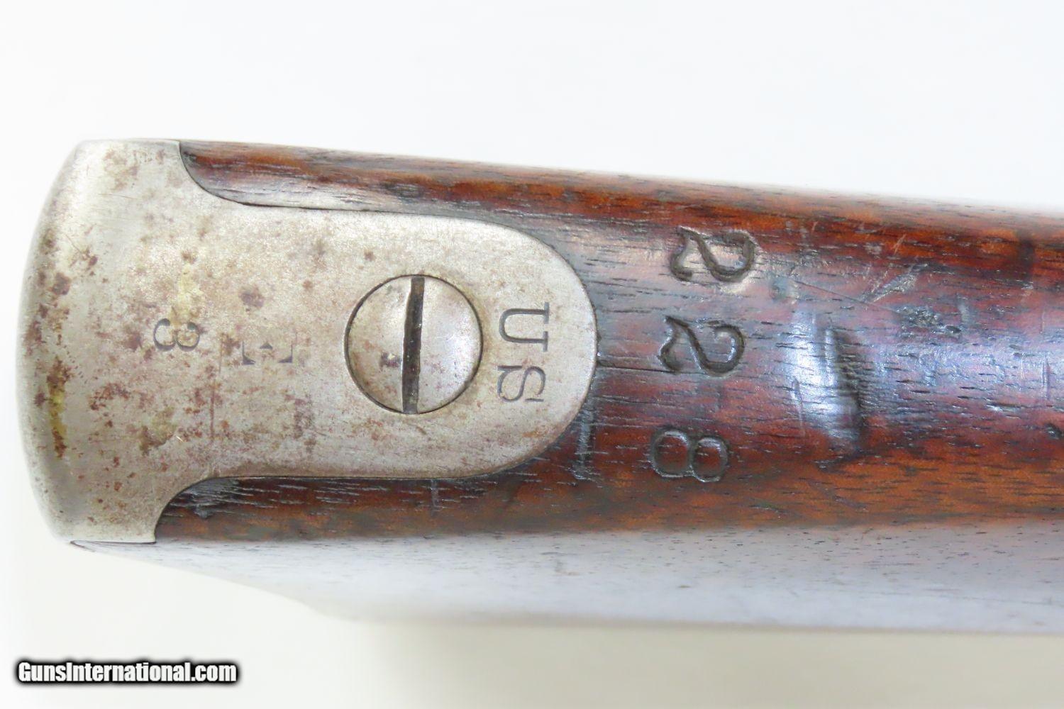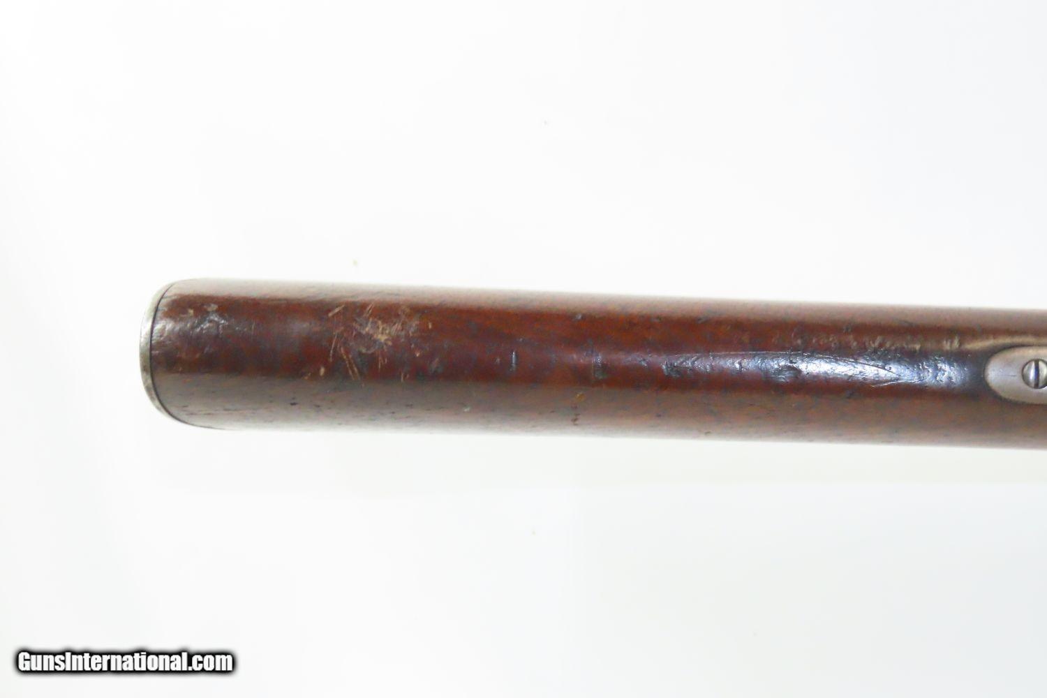 Description: INDIAN WARS Antique SPRINGFIELD Model 1868 Breech Loading TRAPDOOR Rifle 1863 Dated Lock & 1870 Dated Breech with SLING! Here we present a Springfield U.S. Model 1868 Trapdoor Rifle, made circa 1870 in Springfield, Massachusetts for the U.S. Military. Over 51,000 Model 1868 rifles were produced at the Springfield Armory between 1868 and 1872. These arms feature the distinctive “Trap Door” breech loading system designed by Master Armorer Erskine S. Allin, who was the key to many military issued and experimental arms between 1865 and 1894. Some Model 1868 rifles, including this one, were produced with lock plates bearing the dates of 1863 or 1864, while barrels are dated 1869 or 1870. The Trapdoor Rifle was the primary weapon in the U.S. military from the end of the Civil War to the end of the 19th Century, encompassing the Indian Wars and even the Spanish-American War in Cuba. It was still being used when the Springfield 1903 was adopted. These rifles were initially made by converting muzzle loading Civil War muskets to single load cartridges from the breech by installing a “trapdoor”. Later iterations were purpose built from the ground up and chambered for .45-70 GOVT, but these early conversion examples were chambered for the even more massive .50-70 GOVT. The overall condition is very good. Strong and tight action. Mostly bright bore throughout. The walnut stock is solid with two visible cartouches, one of which is legible and contains the initials of inspector Erskine S. Allin, for which this system happens to be named. “1863” dated lock from the original Civil War era musket and “1870” on the breech block of the conversion. Every collection deserves a Trapdoor rifle from Springfield! Own the original! This is a legitimate antique and not a reproduction. Barrel is 32-1/2 inches. Caliber: .50-70 GOVT Overall condition as seen in photos. Very Fast. Very Safe. FREE SHIPPING WORLDWIDE. Delivered directly to your door by express mail! Guaranteed AUTHENTIC & Includes CERTIFICATE OF AUTHENTICITY. ancestryguns $2465 #210853 SOLD Antique: Yes |