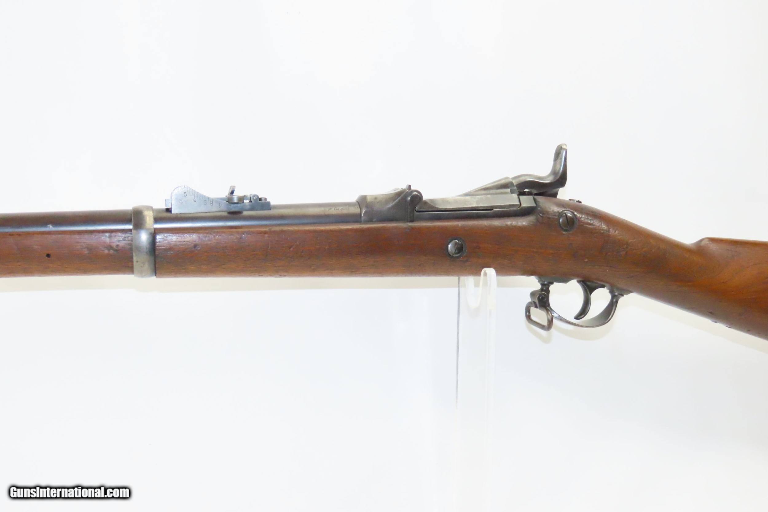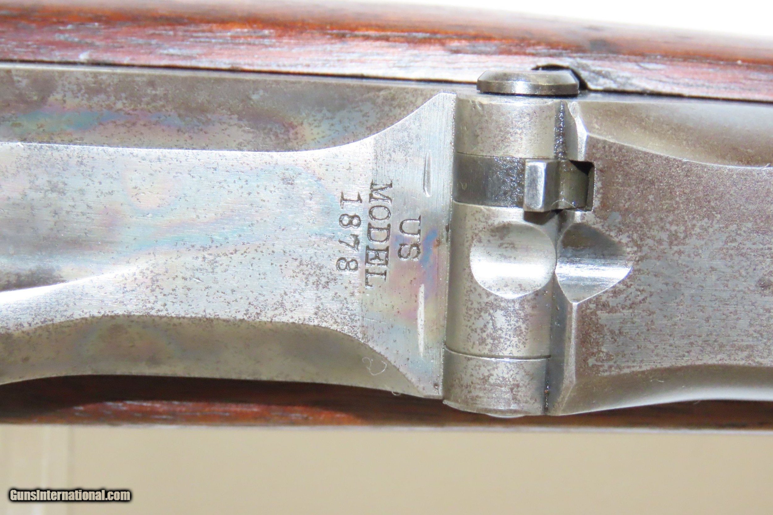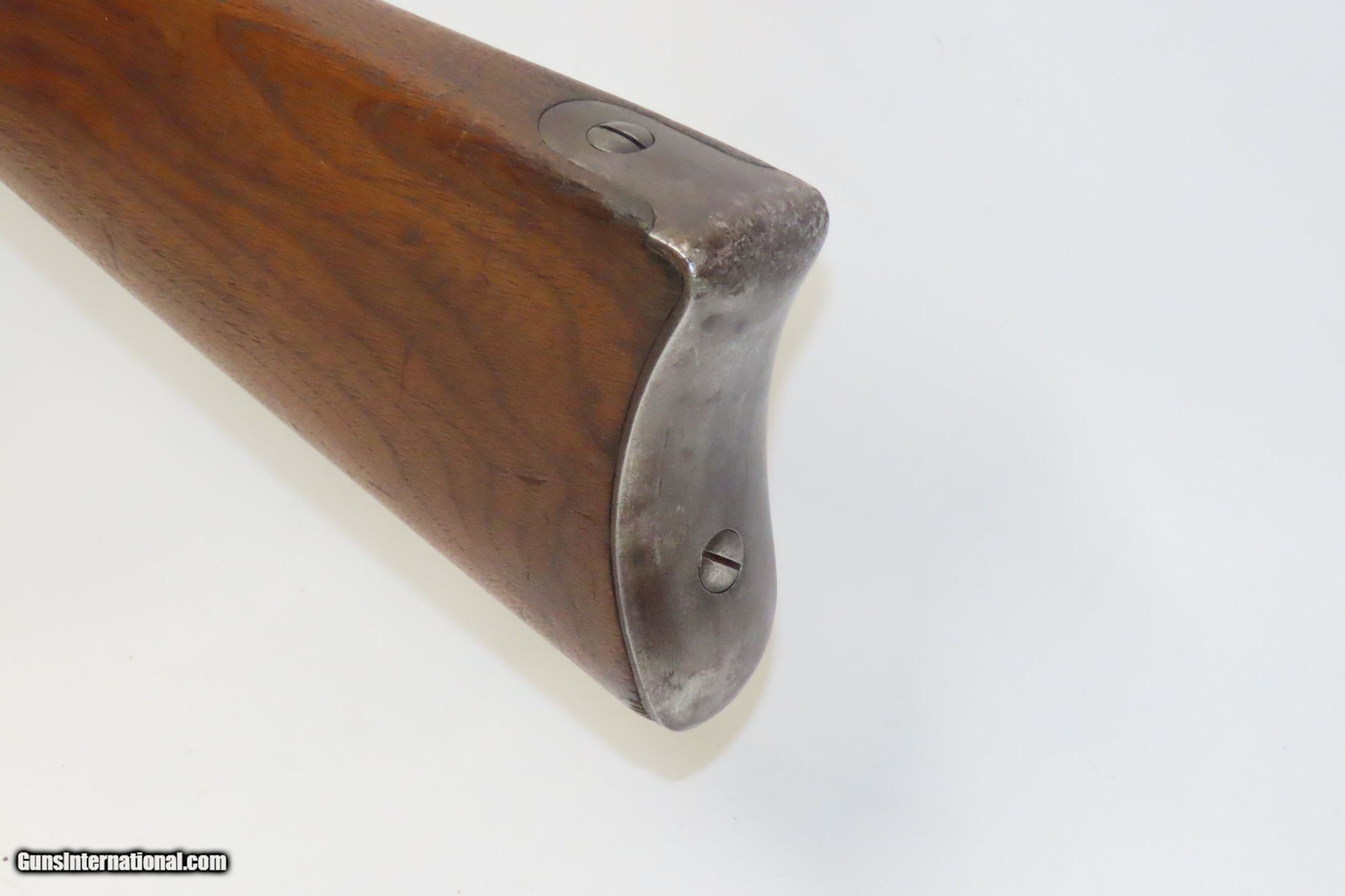 Description: INDIAN WARS Antique US SPRINGFIELD Model 1879 Breech Loading TRAPDOOR Rifle With U.S. BAYONET and SCABBARD w/U.S. LEATHR FROG Here we present an antique U.S. Springfield Model 1879 Trapdoor Rifle, made in 1883 at the Springfield Armory in Springfield, Massachusetts. After the Civil War, the War Department wanted a breech-loading rifle. To be specific, it wanted a breech-loading rifle that would chamber a self-primed, metallic cartridge. Amazingly, despite the adoption of the ill-fated Model 1882 Chaffee-Reese Bolt Action Magazine Rifle, new models of trapdoor rifles continued to be produced and used all the way through the mid-1890s, until finally, the Krag-Jorgensen was adopted. The U.S. continued to see unrest and conflict with the displaced Native Americans during this time, including the Wounded Knee Massacre on December 29th, 1890. Trapdoors continued to see use all the way through the Spanish American War. This example has an 1883 dated inspector cartouche with the initials “SWP”, for Master Armorer and Ordnance Inspector Samuel W. Porter The overall condition is fine. Original blue and case color finish. Excellent action. Bright, rifled bore. Solid stock all around, contains an inspector’s cartouche on the left wrist (SWP/1883). Legible markings. “US” marked bayonet, lock, and buttplate tang. “1878” dated trap door. Own the original! This is a legitimate antique and not a reproduction. Barrel is 32-5/8 inches. Caliber: .45-70 Government Overall condition as seen in photos. Very Fast. Very Safe. FREE SHIPPING WORLDWIDE. Delivered directly to your door by express mail! Guaranteed AUTHENTIC & Includes CERTIFICATE OF AUTHENTICITY. ancestryguns $2200 #220244 SOLD Antique: Yes |