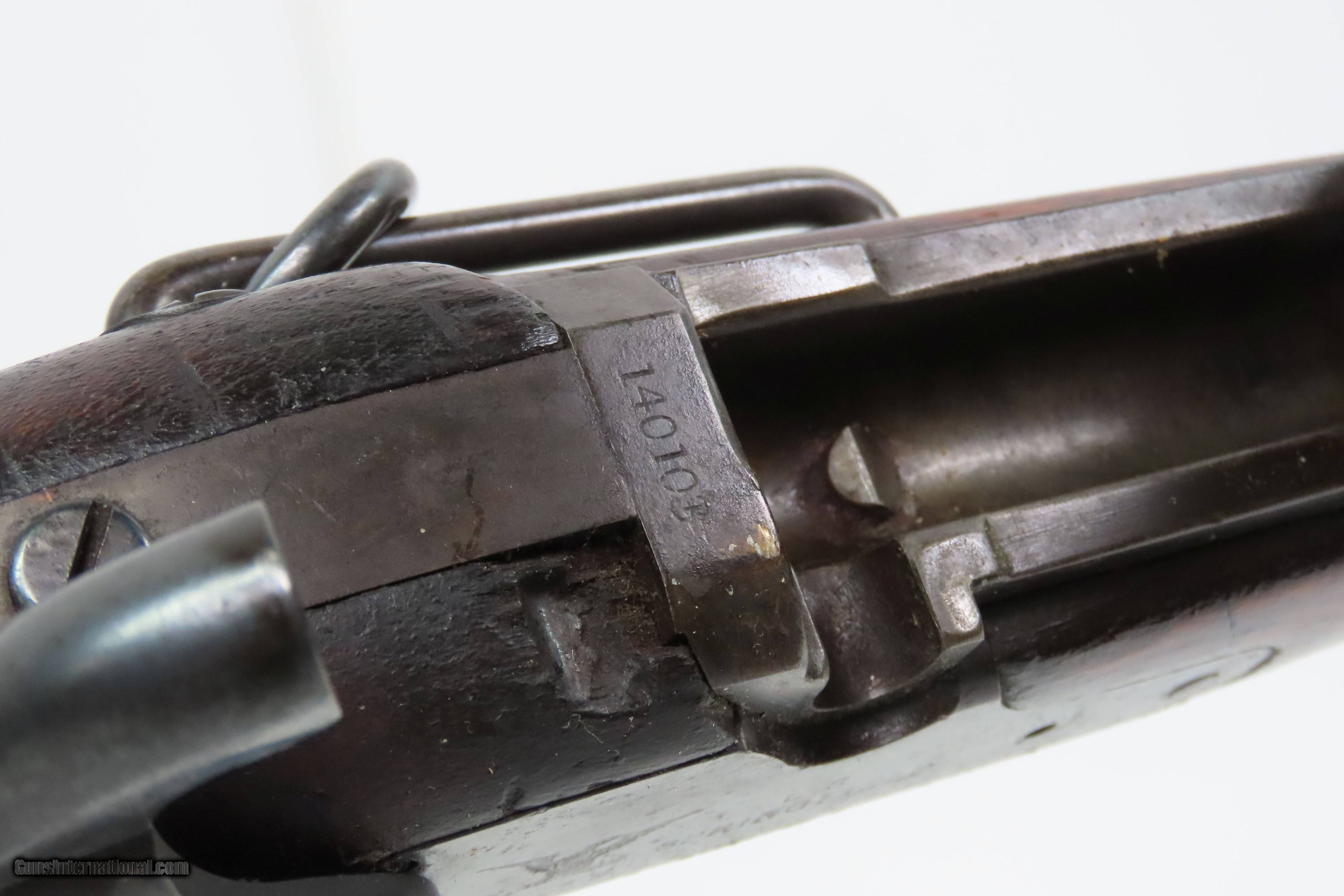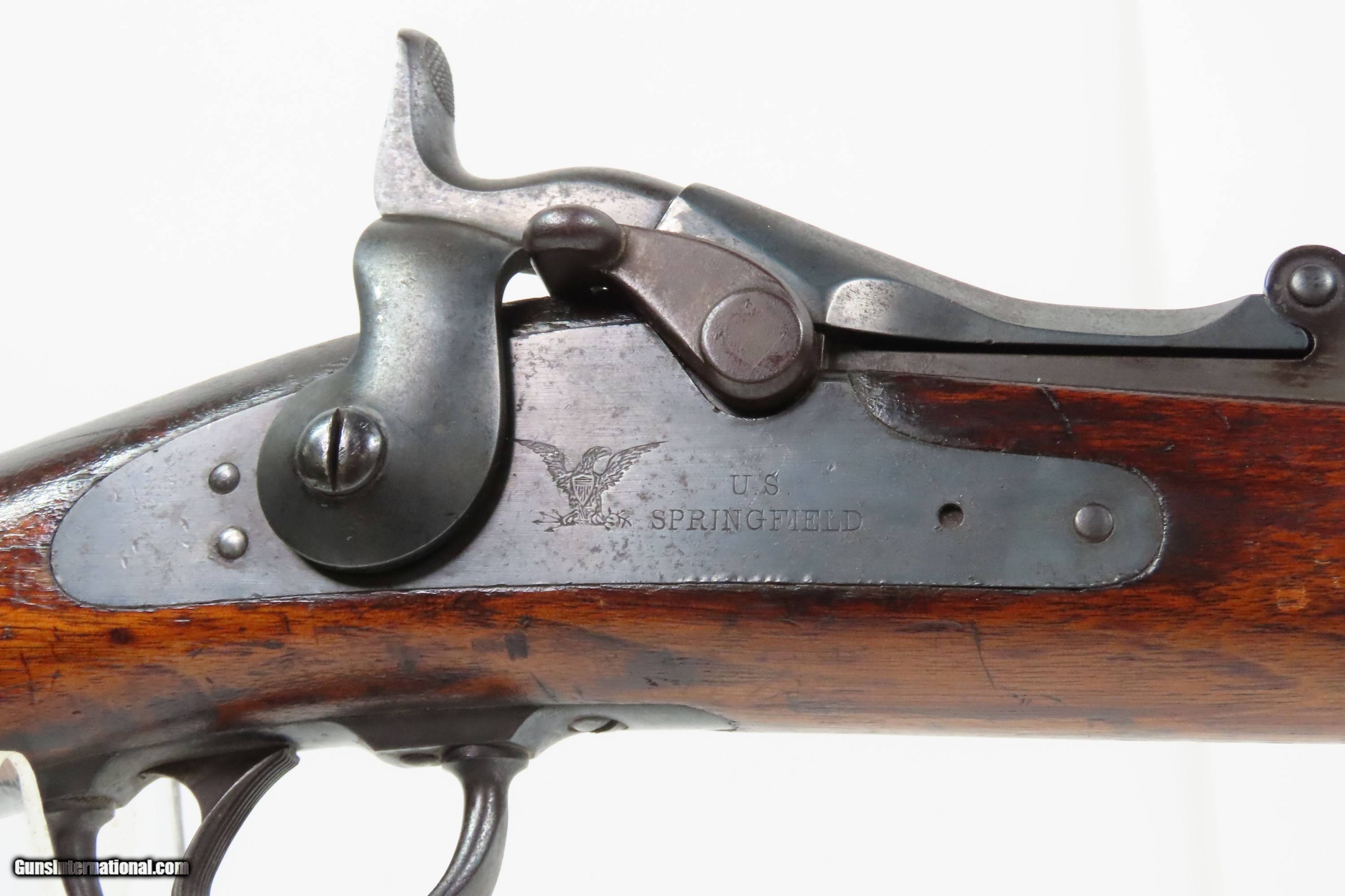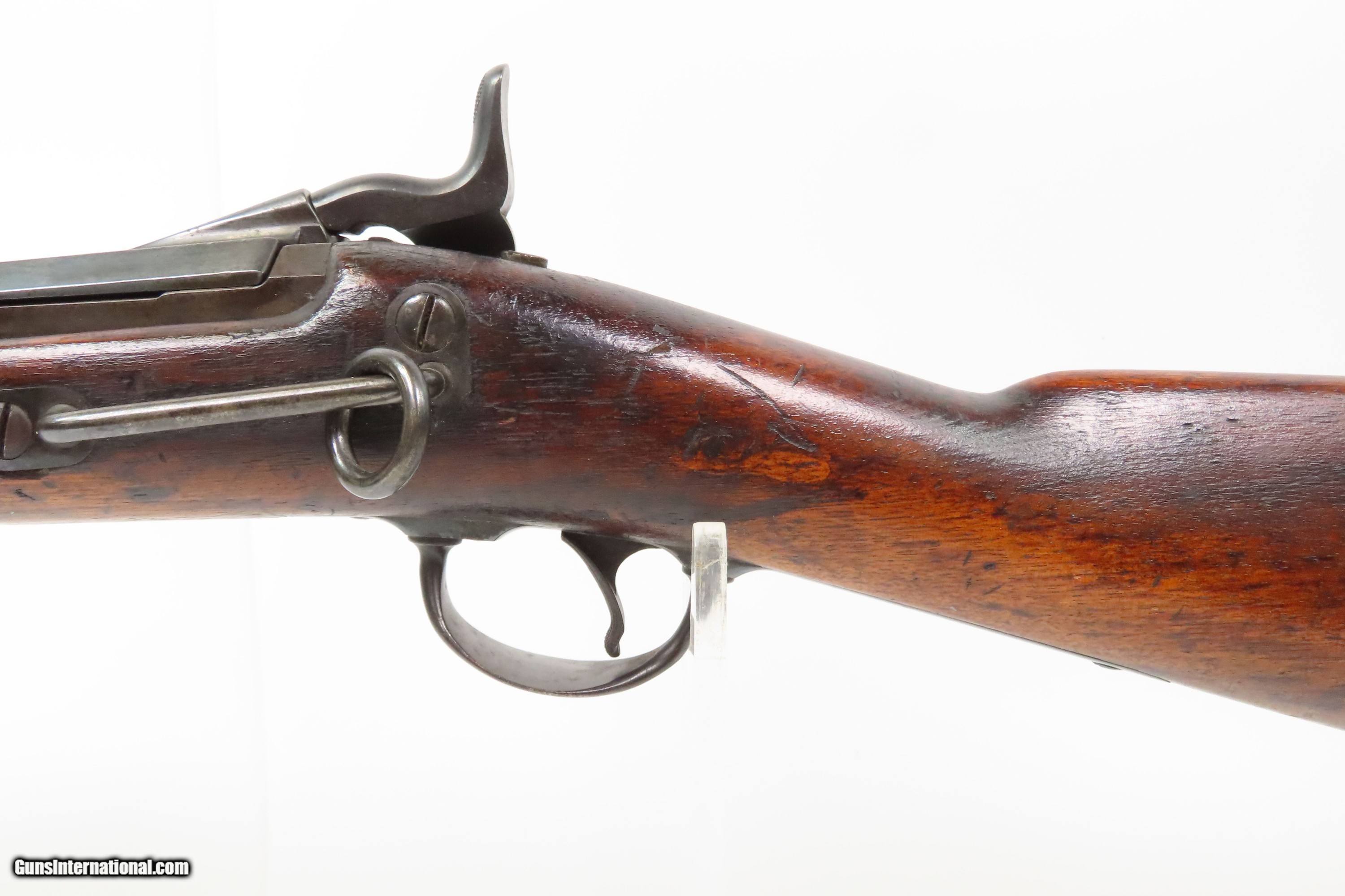 Description: INDIAN WARS Antique US SPRINGFIELD Model 1879 TRAPDOOR SADDLE RING CARBINE c1880 mfr. .45-70 GOVT CAVALRY WEAPON Here we present an antique U.S. Springfield Model 1879 Trapdoor Rifle, made in 1880 at the Springfield Armory in Springfield, Massachusetts. After the Civil War, the War Department wanted a breech-loading rifle. To be specific, it wanted a breech-loading rifle that would chamber a self-primed, metallic cartridge. These were initially chambered in .50-70 caliber as compared to the .58 caliber percussion Minié ball using the Allin Conversion. In 1873 the caliber of the “Trapdoor” rifle was again reduced, this time to .45-70 GOVT. Since it was not practical to convert .58 caliber muskets to this small size, the Springfield Armory began new construction of the “Trapdoor” rifles. They remained in production, with modifications, until 1893. This was the weapon, both rifle and carbine, that served the U.S. Army so well during the Indian Wars on the Western Frontier and in the Spanish-American War. In twenty years of production almost half of a million .45-70 caliber weapons were manufactured at Springfield. Amazingly, despite the adoption of the ill-fated Model 1882 Chaffee-Reese Bolt Action Magazine Rifle, as mentioned above, new models of trapdoor rifles continued to be produced and used all the way through the mid-1890s, until finally, the Krag-Jorgensen was adopted. The U.S. continued to see unrest and conflict with the displaced Native Americans during this time, including the Wounded Knee Massacre on December 29th, 1890. Trapdoors continued to see use all the way through the Spanish American War. The overall condition is very good. Original finish and patina. The action is excellent. The bore is bright with sharp rifling. The stock has a small sliver on the left side of the forestock, just forward of the barrel band, and is otherwise solid. Own the original! This is a legitimate antique and not a reproduction. Barrel is 22 inches. Caliber: .45-70 GOVT Overall condition as seen in photos. Very Fast. Very Safe. FREE SHIPPING WORLDWIDE. Delivered directly to your door by express mail! Guaranteed AUTHENTIC & Includes CERTIFICATE OF AUTHENTICITY. ancestryguns $2200 #250152 SOLD Antique: Yes |