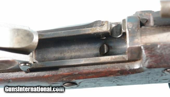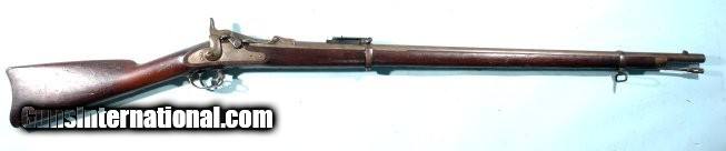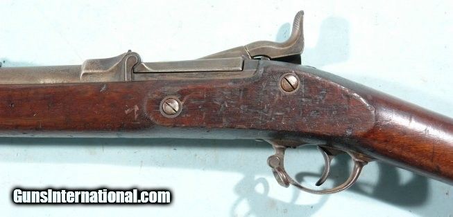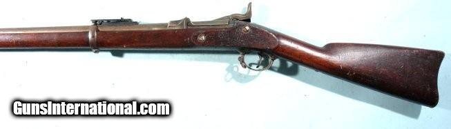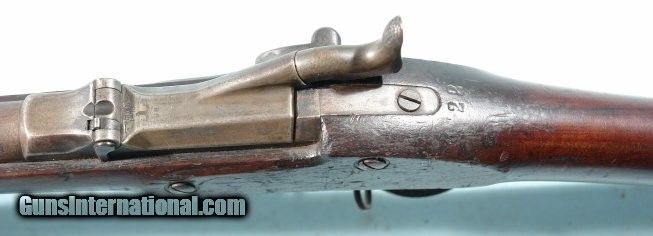 Description: INDIAN WARS EARLY SPRINGFIELD U.S. MODEL 1873 TRAP DOOR .45-70 INFANTRY RIFLE CA. 1875. Serial numbered in the 45xxx range manufactured in early 1875. Falls within the serial range of original issues to the 5th U.S. Infantry that saw extended service in the Indian Wars from the 1870’s to the 1890’s. Later but all original parts added by Bannerman when they offered these for resale in the early 1900’s. They added the Model 1884 Buffington rear sight which has the rear screw missing. Has the original 1873 barrel, receiver and breech block. Very nice Bannerman Trap Door with excellent dark attic patina on metal and fine wood with the original finish and two nice inspector’s cartouches. Very tight working order and excellent bright bore. Nice historic serial range. SOLD Antique: Yes Rifle Caliber: .45-70 Government |
