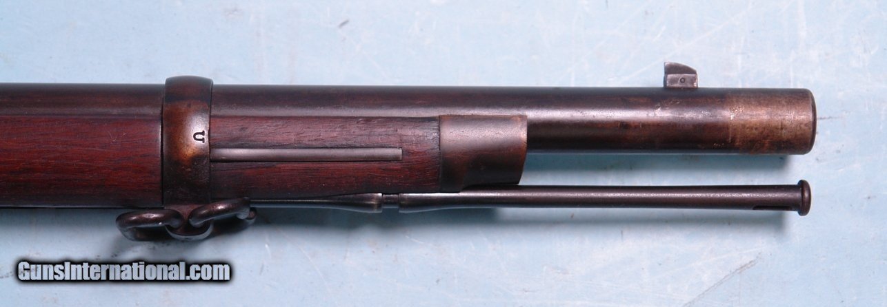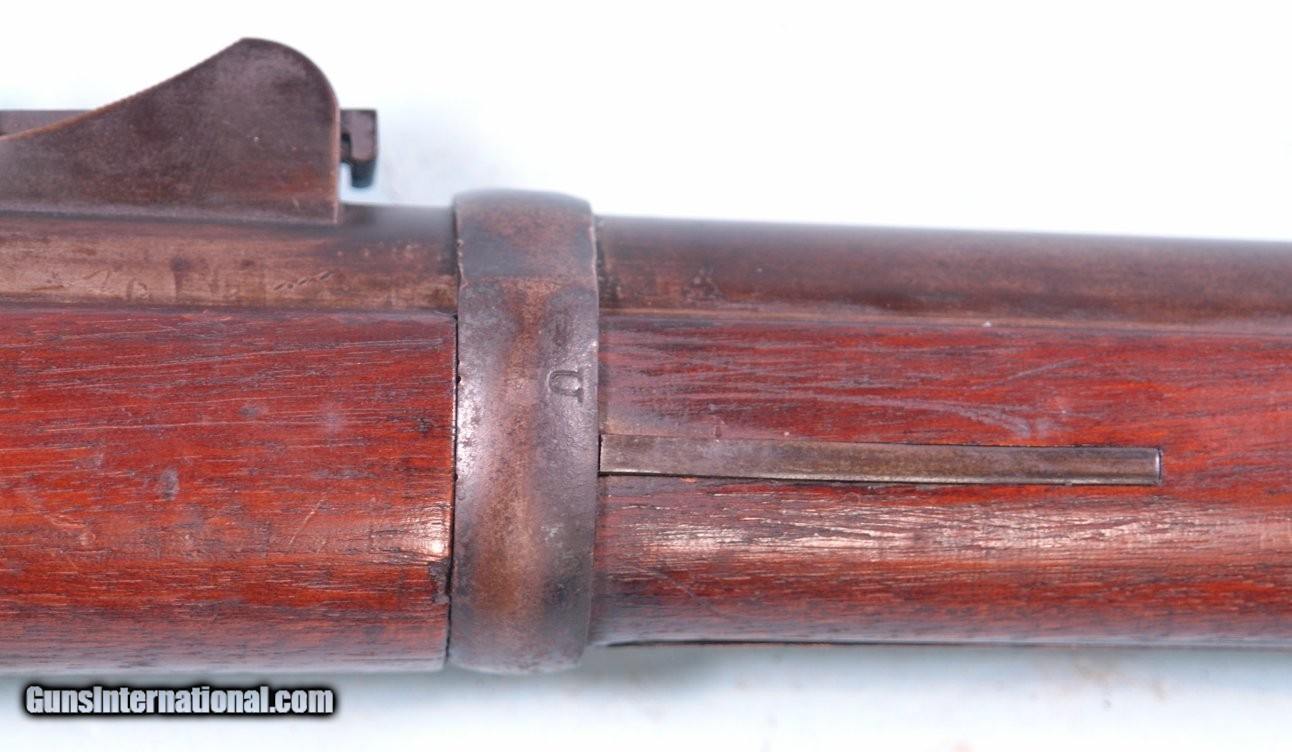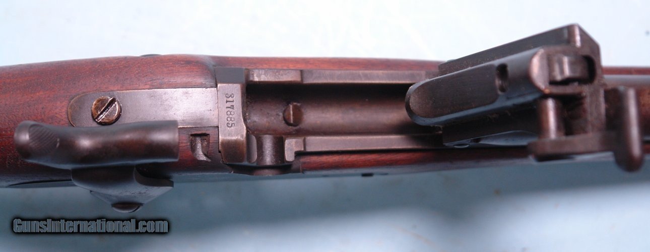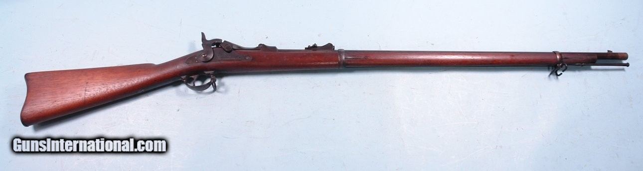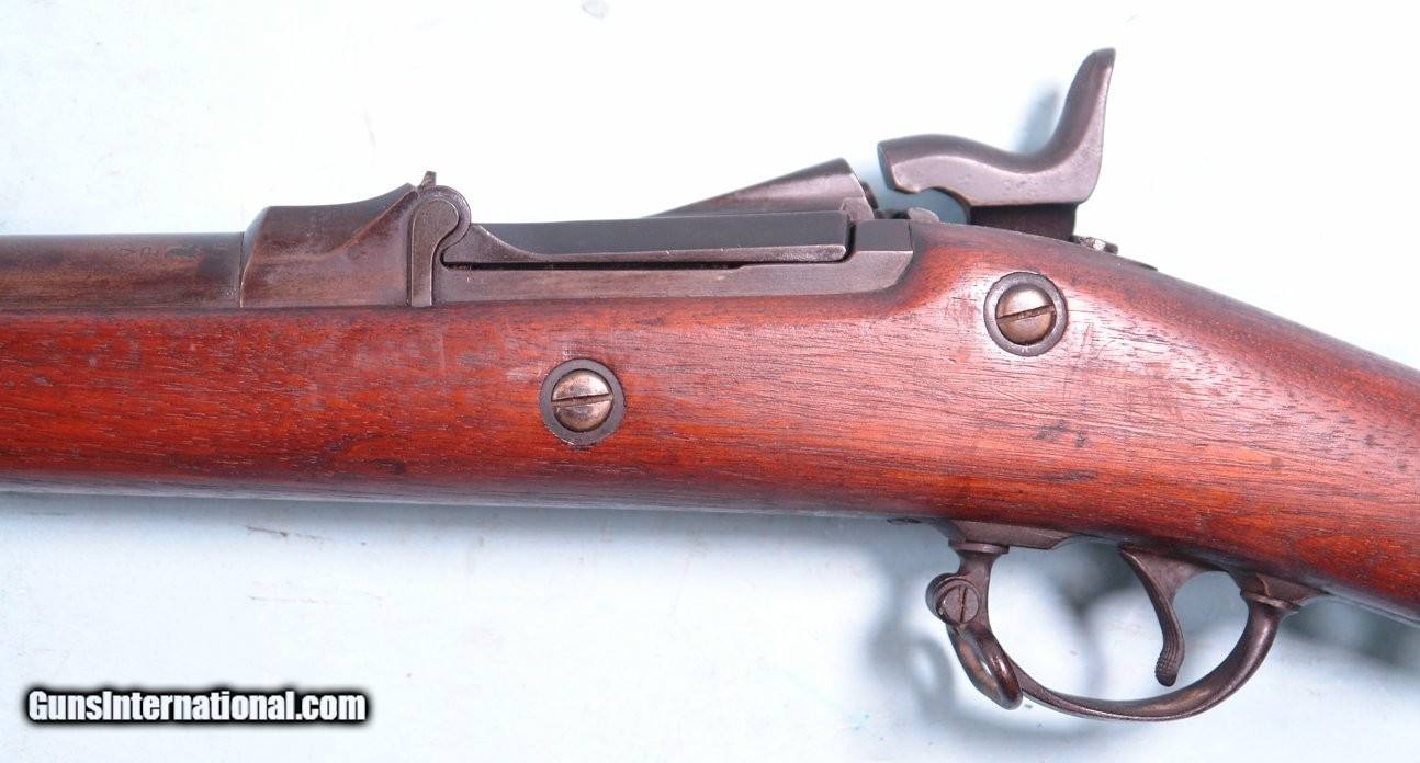 Description: INDIAN WARS SPRINGFIELD U.S. MODEL 1884 TRAPDOOR .45-70 CAL. RIFLE. All original 1886 production date during the Geronimo-Apache War and has the Model 1879 rear sight seen on these transition Model 1884 rifles. Very good to fine with even 50-60% blue and patina. Excellent markings on metal faint trace of cartouche on left side of stock. Extra nice bore and perfect working order. SOLD Antique: Yes Rifle Caliber: .45-70 Government |