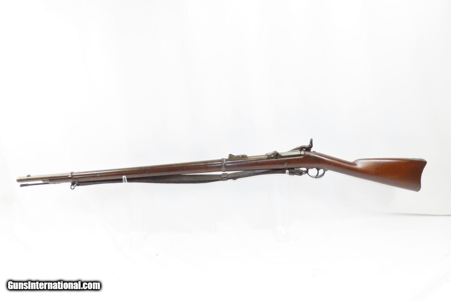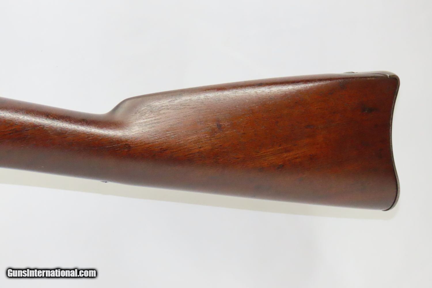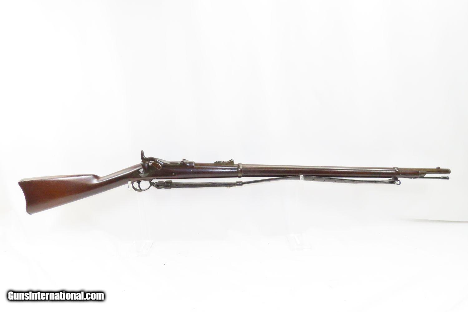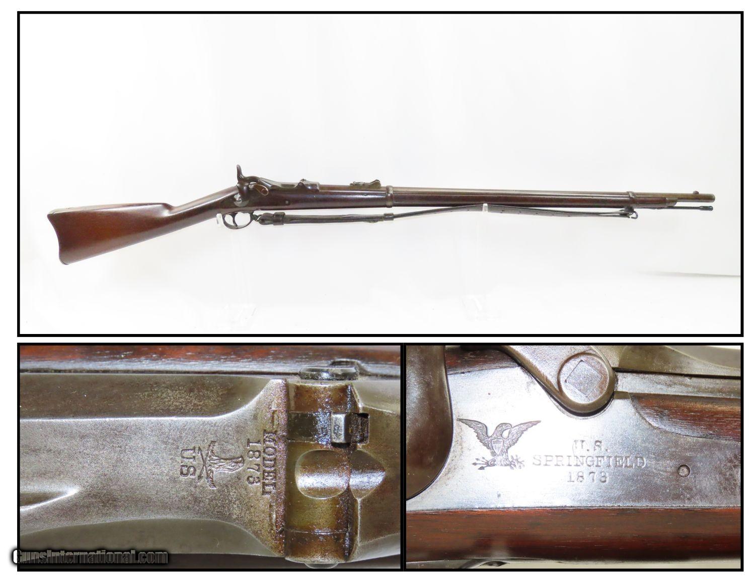 Description: Indian Wars U.S. SPRINGFIELD Model 1873 TRAPDOOR .45-70 GOVT. Caliber Rifle Manufactured at the Start of the GREAT SIOUX WAR! Here we present an antique U.S. Springfield Model 1873 Trapdoor Rifle, made by the Springfield Armory in 1876. After the Civil War, the War Department wanted a breech-loading rifle. To be specific, it wanted a breech-loading rifle that would chamber a self-primed, metallic cartridge. Amazingly, despite the adoption of the ill-fated Model 1882 Chaffee-Reese Bolt Action Magazine Rifle, new models of trapdoor rifles continued to be produced and used all the way through the mid-1890s, until finally, the Krag-Jorgensen was adopted. As white settlers moved into the Great Plains region, they battled the Plains Indian tribes in a series of conflicts known as the Sioux Wars, which lasted from 1854 to 1890. In 1875, the discovery of gold in the Black Hills region of South Dakota brought prospective miners into the area and onto the hunting grounds of the Sioux Indians. The US Army responded to the pleas of the white settlers and miners for protection against the Sioux, and the Great Sioux War of 1876-77 erupted. It was the last major conflict between the US Army and the Sioux tribe. The U.S. continued to see unrest and conflict with the displaced Native Americans during this time, all the way through to the Wounded Knee Massacre on December 29th, 1890. Trapdoors continued to see use all the way through the Spanish American War. The overall condition is fine. Excellent action! Bright bore. “1873” dated. The stock is in very fine shape with minimal wear. “SIC” is tamped onto the left wrist. “B/14” is marked atop the comb near the butt plate tang. Here is a truly wonderful, must have, Springfield trapdoor! Own the original! This is a legitimate antique and not a reproduction. Barrel is 32-5/8 inches. Caliber: .45-70 GOVT Overall condition as seen in photos. Very Fast. Very Safe. FREE SHIPPING WORLDWIDE. Delivered directly to your door by express mail! Guaranteed AUTHENTIC & Includes CERTIFICATE OF AUTHENTICITY. ancestryguns $1885 #210364 SOLD Antique: Yes |