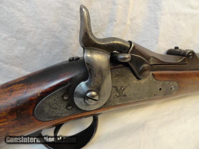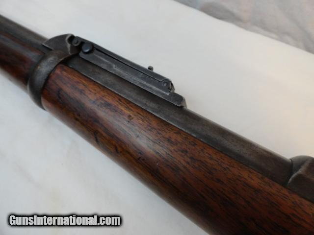 Here is a nice been there carbine. It has the 1884 dated breech block with 1884 rear carbine sight and front sight cover. Stock is excellent but has been redone long , long ago with beautiful patina but cartouche not visible. Factory stamps are perfecdt. Basically a clean as a whistle patina with no pits, no damage. Bore is not mint shiny but lands are strong and sharp and grooves are pretty clean with no rings. Works like new. Should make a great shooter. Antique so can ship right to your door. Real Indian wars used 1884 carbine with bar and ring and correct stock, not cut down rifle.