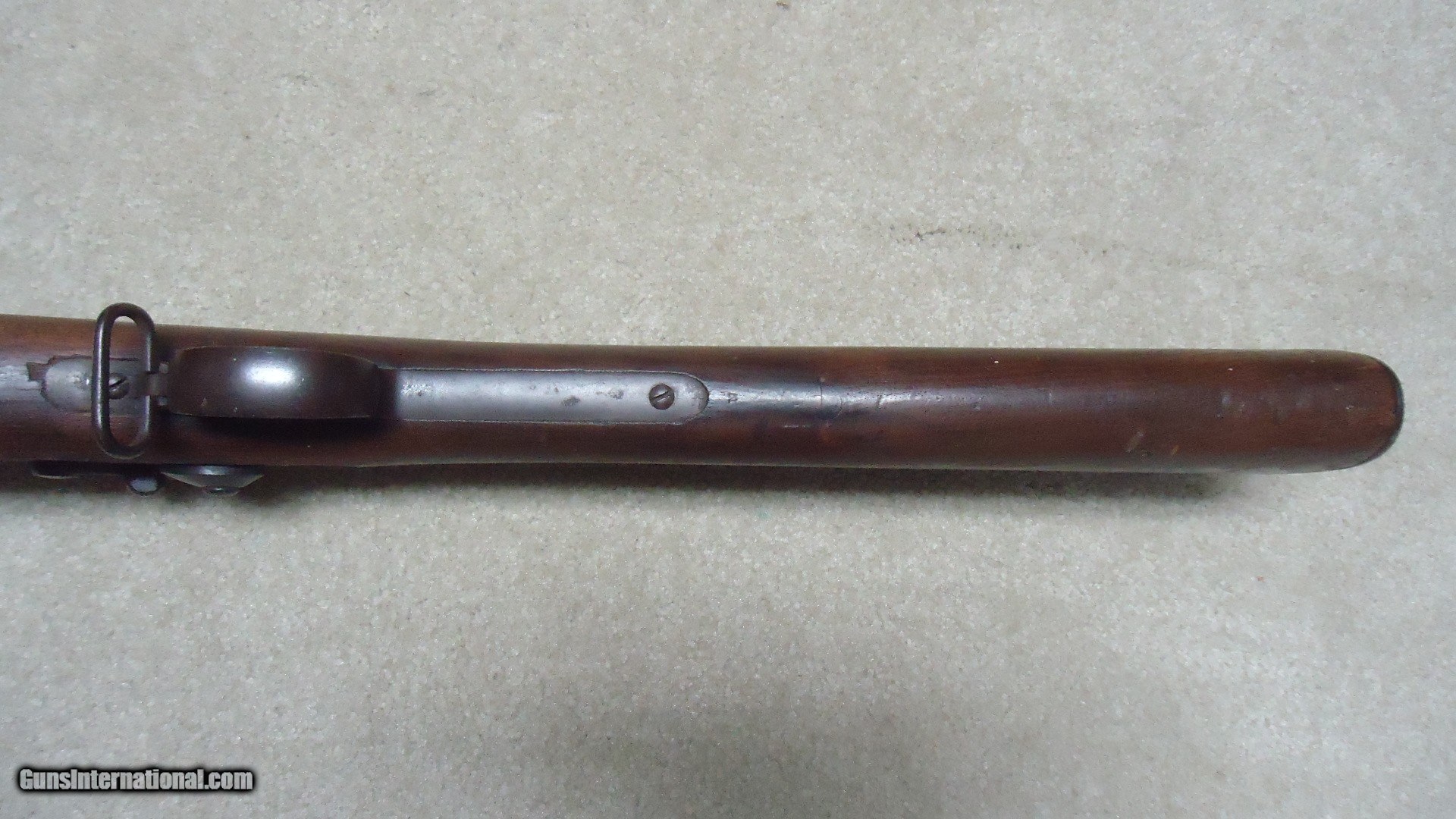 Description: ONE OF THE VERY LAST OF THE GREAT .45-70 TRAPDOOR SPRINGFIELD RIFLES, MODEL 1888 "ROD BAYONET" MODEL #560XXX, MADE IN THE FINAL PRODUCTION YEAR OF 1893. This example looks like it was simply stored away for the last hundred years or so. The metal is s soft aged blue turning plum. All markings are fine. A few storage dings on the left high edge of the breech block and on the right forward portion of the rod bayonet housing- all minor. Correct 1884 dated breech block and Springfield markings on the lock plate. Has a light 1893 dated cartouche in the stock along with the correct circle P cartouche. Correct Buffington rear sight. Tight action, generally excellent bore with a few small spots of very light roughness toward the middle of the bore. Wood is fine with one hairline crack on the right side by the upper barrel band that appears solid. 1893 was the final year of production with serial numbers running up to about 568000. Many of these saw extensive service in the Spanish American War in Cuba and in the Philippines. Considered the finest shooting of all the Trapdoor Models. SOLD Antique: Yes Rifle Caliber: .45-70 Government Manufacturer: SPRINGFIELD Model: 1888 TRAPDOOR Serial Number: 560XXX Condition: VG Bore Condition: FINE+ |