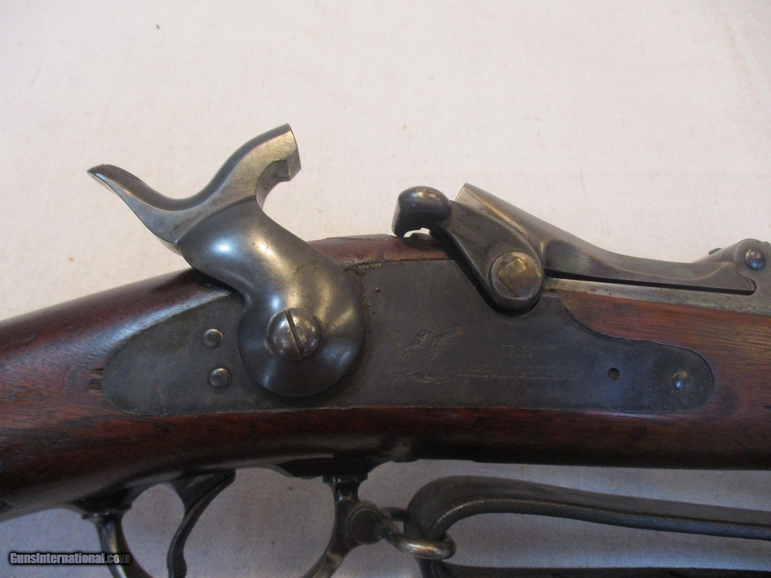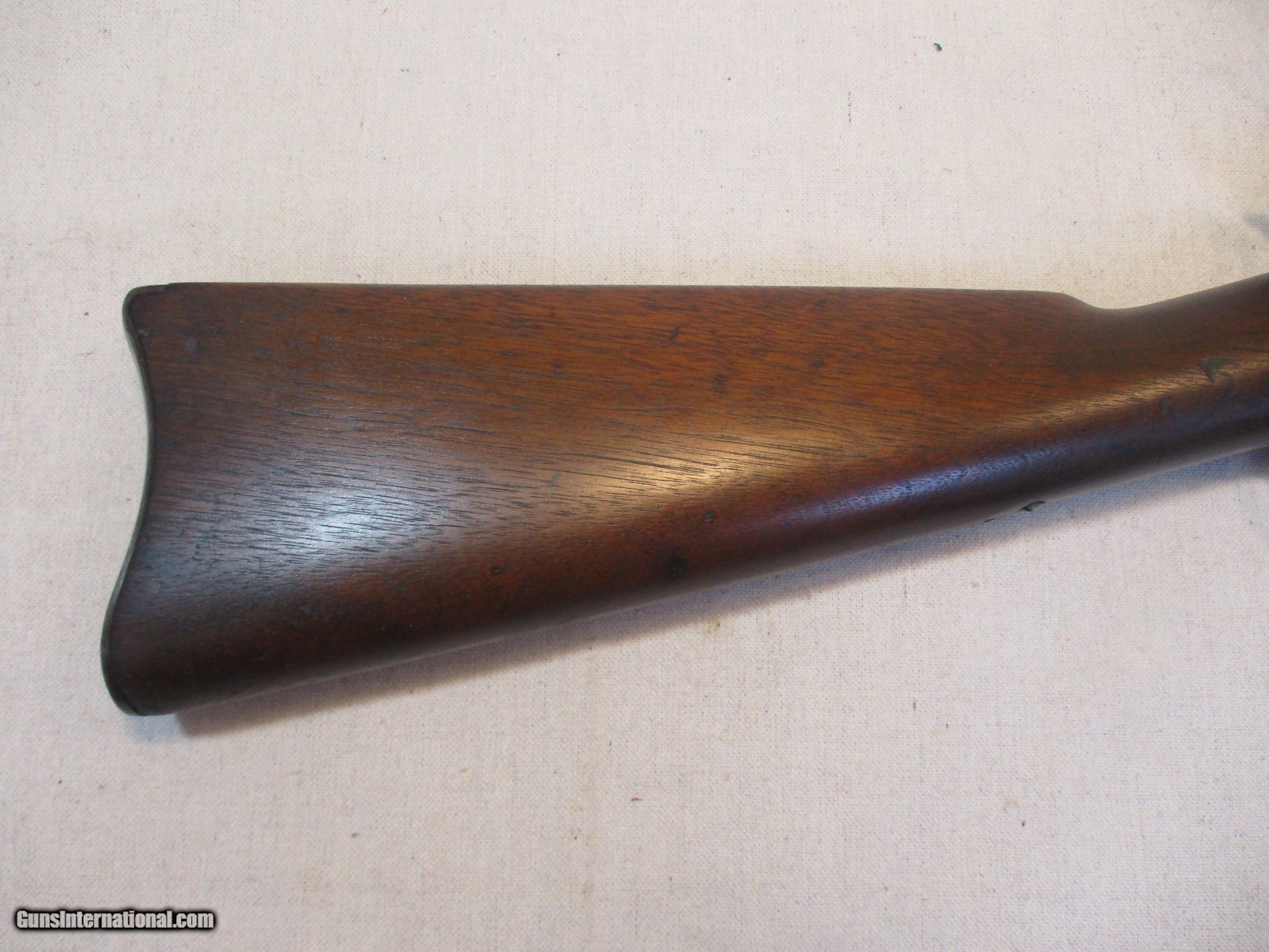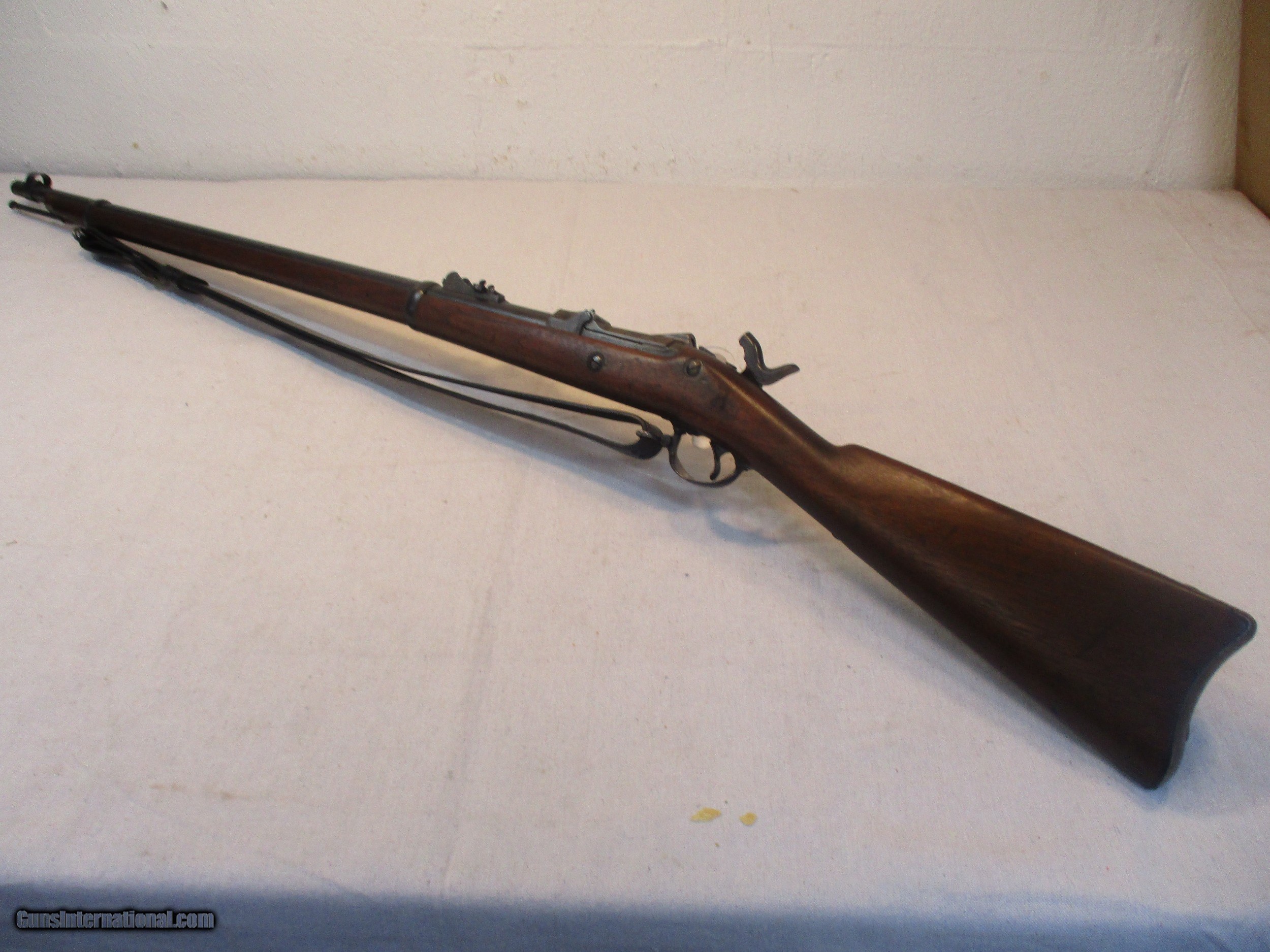 Description: Make: Springfield Armory Model: U.S. Model Springfield 1873 .45-70 Govt. Trapdoor rifle Serial Number: 267010 Year of Manufacture: 1884 Caliber: .45-70 Govt. Action Type: Single Shot with Trapdoor Breech Markings: The lock plate is marked U.S. over SPRINGFIELD with an eagle to the rear of this marking. The top of the breech block is marked U.S./Model/1873. The barrel has a V over P over eagle over P at the breech. Left side of barrel in front of breech is marked "R". The rear sight is marked "R" The two barel bands are marked with "U". The top of the butt plate is marked "US". The stock has a cartouch with initials and stamped 1884 on left wrist area. There is a cicle P behind the rear trigger tang. Barrel Length: Approximately 32 5/8" Sights / Optics: The front sight is a blade atop a raised base, with an added hood. the rear is a ladder sight with 1-5 graduation. Stock Configuration & Condition: The stock is hardwood with a straight grip, cutout for the included ram rod, metal nose cap, two sling loops, two barrel bands and a metal buttplate. The stock is in very nice condtion with only minor handling marks, and one thin crack next to right barrel tang. Type of Finish: The barrel finish is deep blue with very light areas of corrosion. No signs of wear, nicks or pitting. The case hardening on the trapdoor, and rear tang are in very fine condition. Finish Originality: See picture Bore Condition: The bore and breech are in excellent condition, very bright and shiney. Overall Condition: The finish shows only very minor corrison. The lock plate shows no rust or pitting. The case hardening is very strong. The buttplate shows some swear and surface erosion.The screw heads are still crisp. The markings are very readable. Comes with reprouction leather sling . Overall, this rifle is is in very fine condtion. Mechanics: The action functions correctly with very strong hammer spring and 3 cocking position. Box, Paperwork& Accessories: None ******************************************************rcf PLEASE READ OUR FULL DISCLAIMER! Customer Service is available Monday - Friday 10 AM to 5 PM Central Time, to answer questions and emails, or take payments. Reserve prices are not disclosed, so don't ask. Layaway is not offered. Shipping available only within the lower 48 states. We do our best to show everything in the pictures so you know exactly what you are getting. Check out our feedback & purchase with confidence. All items are sold AS IS with NO warranty or guarantees, implied, expressed, or otherwise (Inquire with manufacturers to verify any warranties they may offer). The buyer is ultimately responsible for determining the condition of the item, please ask for additional information or more photos before purchasing if you're unsure. A valid FFL is required for most transactions (C&R Type 3 FFL's are not accepted, NO EXCEPTIONS), and a file copy of the seller FFL will be shipped with the item. Shipping rates will vary based on final sale value, and include ground rates with insurance and signature. Shipping is available within the lower 48 states only. Local pickup is available Monday - Friday, from 10 AM to 5 PM. Accepted forms of payment are charge/debit cards (All Major Credit Cards Accepted), cash (Wire Transfer), money order, Cashiers/Teller/Certified Check or personal check (Item is held for 10 business days to allow ANY checks or money orders (except USPS money orders) to clear). A 3% convenience fee will be added to purchases made with charge/debit cards. Returns are only accepted on a case by case basis depending on the circumstances, and a 20% restocking fee will be charged on all returned or incomplete sells. Have questions, ask. Buyers are solely responsible for determining the safety of items purchased. No firearm should be fired without having the weapon initially inspected by a qualified gunsmith. The firearms offered have NOT been TEST FIRED unless otherwise stated, but have been given a visual inspection for sale purposes only. We are not gunsmiths and can sometimes miss things. It is recommended that buyers have all firearms inspected by a competent gunsmith prior to use. Buyers are solely responsible for their awareness of and compliance with all laws and regulations in their state of residence regarding firearms, ammunition, magazines, accessories, and blades. By purchasing, buyer agrees to release seller from all liability, whether criminal or civil, arising from the purchase, ownership, possession, or use or misuse of items, and against damages, injury or death caused by use or misuse, or defective merchandise. Thank you for your interest & please check out my other listings. SOLD Antique: Yes |