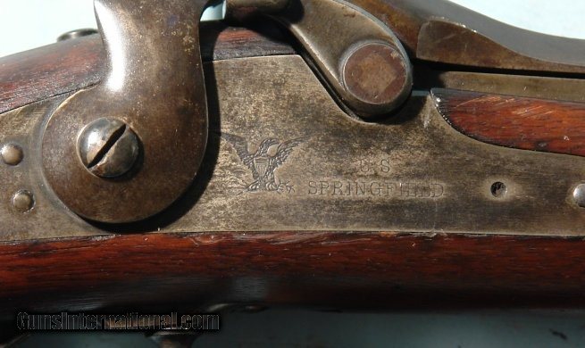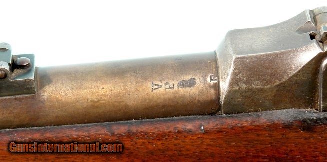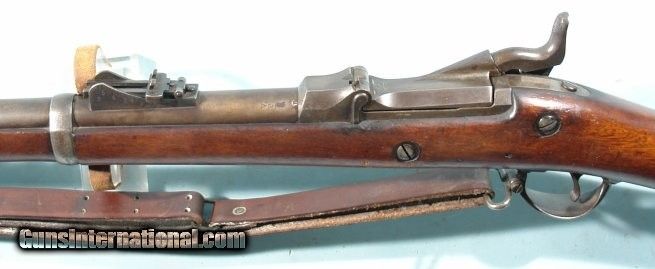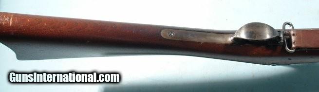 Description: SPANISH AMERICAN WAR SPRINGFIELD U.S. MODEL 1879 TRAPDOOR .45-70 RIFLE. Serial number "2504XX" and correct to rest of gun so not a parts rifle. Correct original case colored receiver and tang. Crisp "Eagle" and "U.S./ Springfield" flush lockplate with solid hammer(no wiggle). Correct three stage hammer. Correct grooved trigger. Two barrel bands never been off with their original color and stamped "US". Trapdoor with correct "US/ Model/ 1873" stamp and solid lockup. Original barrel color just fading to patina and crisp correct "Eagle-head", "V/P" proofs. Correct sights. Solid original stock with "SWP/date" cartouche is a bit faded so can't make out date but visible. Original stock finish bever been sanded or lacquer added. Original buttplate and slinf swivels. Honest trapdoor been together since it left armory and issued in the 31st Michigan Inf. Volunteers serial range which saw service in Cuba during the Span-Am War. With later aftermarket correct style leather sling. SOLD Antique: Yes Rifle Caliber: .45-70 Government |