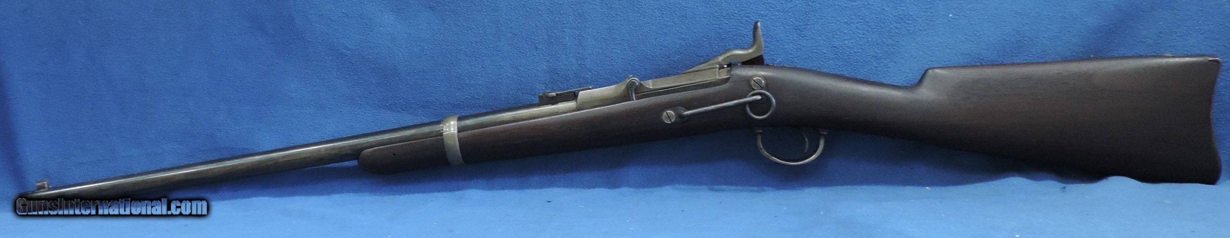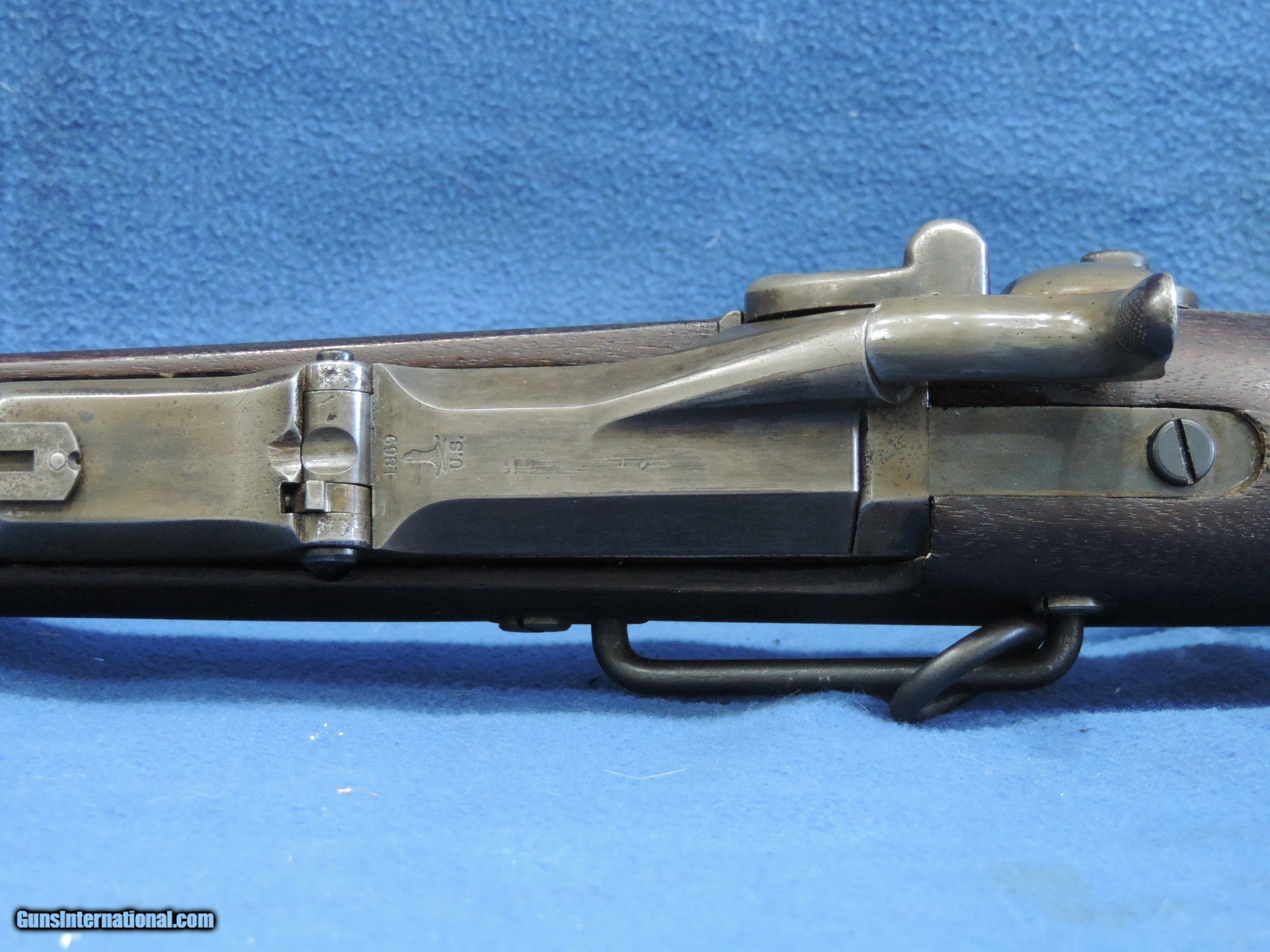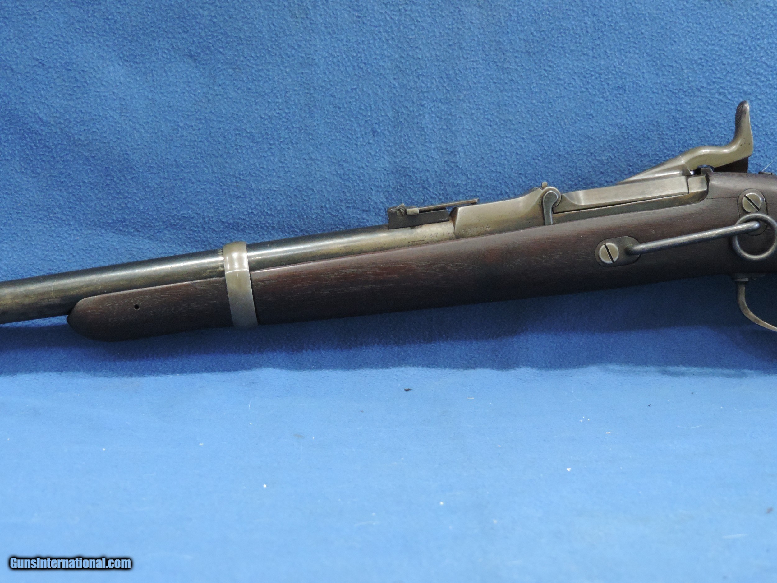 Description: INV. 9521 SPRINGFIELD 1868 ALLEN CONVERSION, CAL. 50-70 SER. 33784, MFG. 1869. THE CONDITION OF THIS SADDLE RING CARBINE IS VERY NICE. IT HAS RETAINED ABOUT 40% OF THE ORIGINAL BLUE. THE BALANCE HAS TURNED TO A PLEASANT STEEL GRAY PATINA. THERE ARE NO RUST SPOTS, SCRATCHES OR RUB MARKS. ALL PARTS ARE CORRECT FOR THE GUN. THE SIDE PLATE IS STAMPED, 1864, EAGLE, AND SPRINGFIELD. THE STOCK IS IN SUPER CONDITION. IT HAS NO NICKS, DINGS OR SPLITS ANYWHERE. THE LEFT SIDE HAS THE "EJA'" INSPECTOR'S CARTOUCHE. THE BORE IS GREAT, SUNSHINE BRIGHT WITH RAZOR SHARP RIFLING AND SOME LIGHT SCATTERED FROST. IT'S REALLY GRAT FIND FOR THE CIVIL WAR COLLECTOR OR RE-ENACTOR. MODESTLY PRICED AT ....$995.** ** 100% SATISFACTION GUARANTEED. To purchase this firearm or if you want to request more information contact us at: Email ckguns[at]ymail[dot]com Phone 201-512-0002 Cell 201-575-6838 FAX 201-215-4759 We accept most major credit cards. Prices shown are Discounted 3% for Cash or Check. The buyer must be familiar with all the laws governing the purchase and the ownership of firearms in their own city and state. The Yankee Armorer, Inc is not responsible for any failure to comply with or observe these laws. The Yankee Armorer, Inc will only ship after full payment and receipt of all required documents. Shipping: Add $35.00 for handguns, $45.00 for long guns. New Jersey buyers are subject to a 7% sales tax. The Yankee Armorer, Inc offers a 3 day inspection period with full refund upon return of intact firearm and in the original condition. The Yankee Armorer, Inc offers a no interest lay away program - 25% down; 25% in 30 days; 25% in 60 days; and full payment in 90 days. Any violation of this policy is subject to restocking and forfeiture of all payments. Any variation from this policy must be agreed to in advance. Unshipped Cancelled sales are subject to a 20% restocking fee. Be advised that all firearms sold by The Yankee Armorer, Inc. or the Gun Exchange, LLC (SELLER) are sold as collector’s items. They have not been fired or tested for safety and must be examined by a license gunsmith prior to use. By purchasing any item from the (SELLER), you are agreeing to hold the (SELLER) free from any damages or lawsuits of any nature. Any item left for transfer or storage will be charged to $25.00 per month, per item from the day of its receipt. Any variation from this policy must be agreed to in advance. Store hours 10:00 am to 5:00 pm Tuesday -Saturday. It's always best to call for appointment. Store 201-512-0002, cell 201-575-6838. SOLD Curio/Relic: Yes Antique: Yes Rifle Caliber: .50-70 Government |