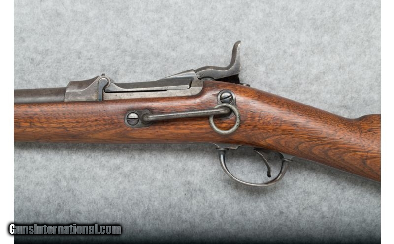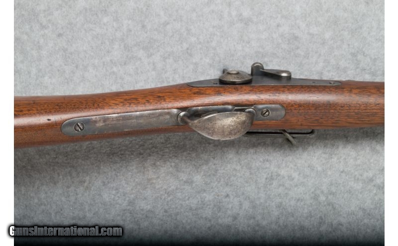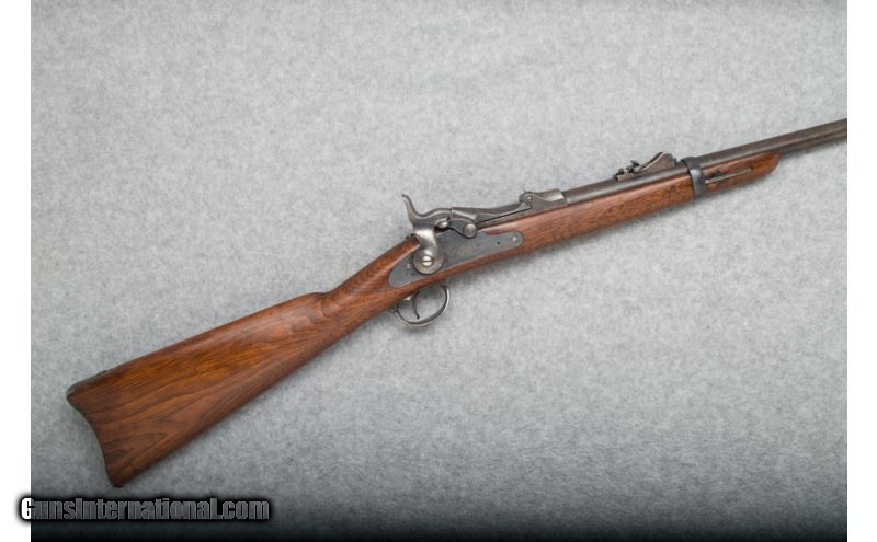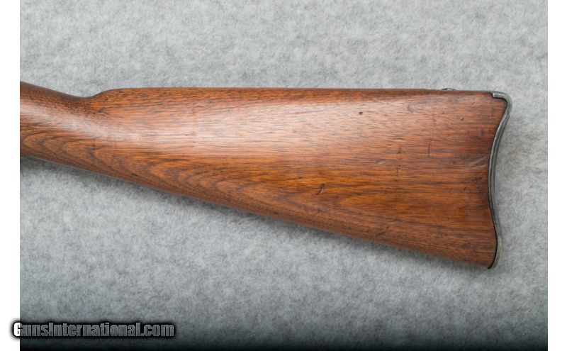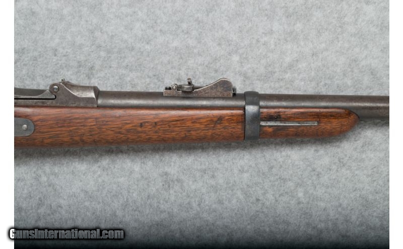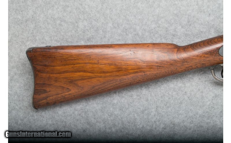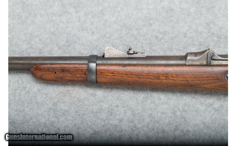 Description: Very nice condition; proof and inspection marks clearly visible. SOLD Caliber Info: .45-70 Government Metal Condition: Good overall; some original finish still shows; very little pitting Wood Condition: Very good for it's age; probably has been re-done. Bore Condition: Fair; corrosion consistant with its age; rifling is decent. Barrels: 22 Triggers: Grooved steel Stock: Straight grip walnut Stock Dimensions: LOP - 13 1/4 Fore End: Smooth walnut with barrel band Butt Pad: Curved steel butt plate; hinged compartment with cleaning rod. Weight: 7 lbs. 12 oz. Sights: Folding vernier rear; blade front Item Location: Sun Prairie, WI |