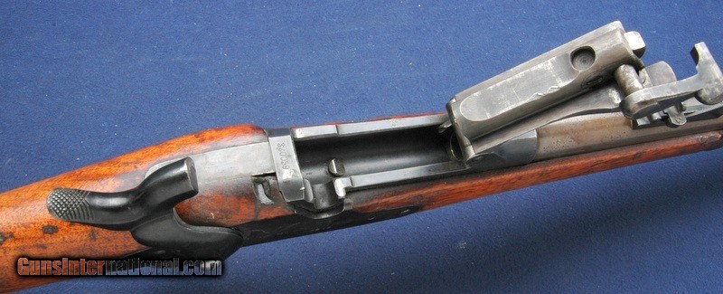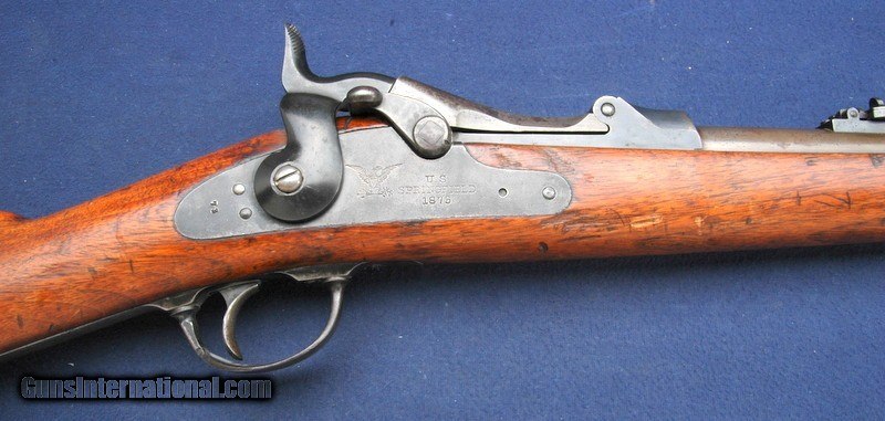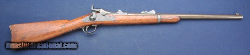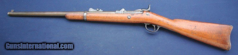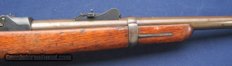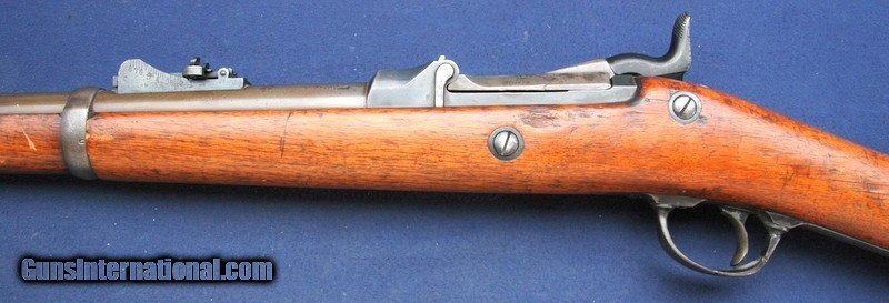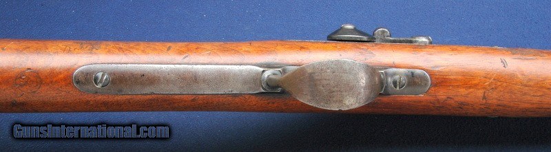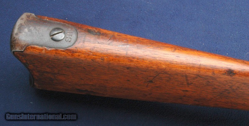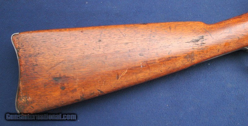 Description: I'm just going to describe this rifle and let the chips fall where they may. First, the lock is dated 1873, the breechblock is marked 1884. Serial number is 320xxx. The barrel is smoothbore. Bannerman? The rear sight is marked C for carbine. No door in the buttplate. The stock appears to be a cut down rifle stock, as you can see where the hole for the cleaning rod was filled. There is a serifed P proofstamp on the stock behind the trigger bow tang. Several numbers stamped in the wood at the heel. U.S. stamped on the buttplate by the top screw. The number 73 is stamped into the lockplate an inch back from the hammer. And that's it. Check the pics, and see if you like it. $40 shipping to the lower 48, 3% surcharge for using a CC. If you choose to pay with a personal check, we will hold the item for up to 10 days to make sure that it clears. Please expedite such pymts as we will hold an item on your word for 5 days. SOLD Antique: Yes Rifle Caliber: .45-70 Government |