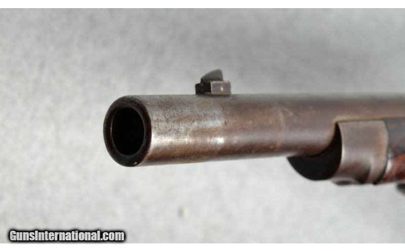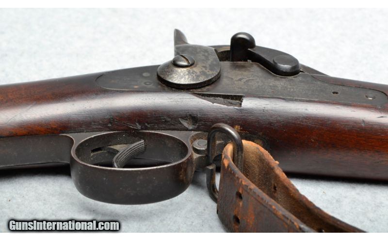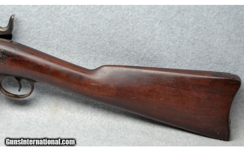 Description: Nice example of an 1873 Trap Door. Cleaning rod is missing, but bore is very nice. SOLD Antique: Yes Caliber Info: Unmarked Metal Condition: Plumb patina over most of the gun - little original finish left. Wood Condition: Nice for its age. Chip of wood missing near hammer. Otherwise a few dings and dents Bore Condition: Beautiful - bright with sharp rifling. No pitting. Barrels: 30 Stock Dimensions: LOP = 14 Butt Pad: U.S. Weight: 10 lbs. Sights: Adjustable leaf sight Extras: With bayonet. Item Location: Cheektowaga, NY |