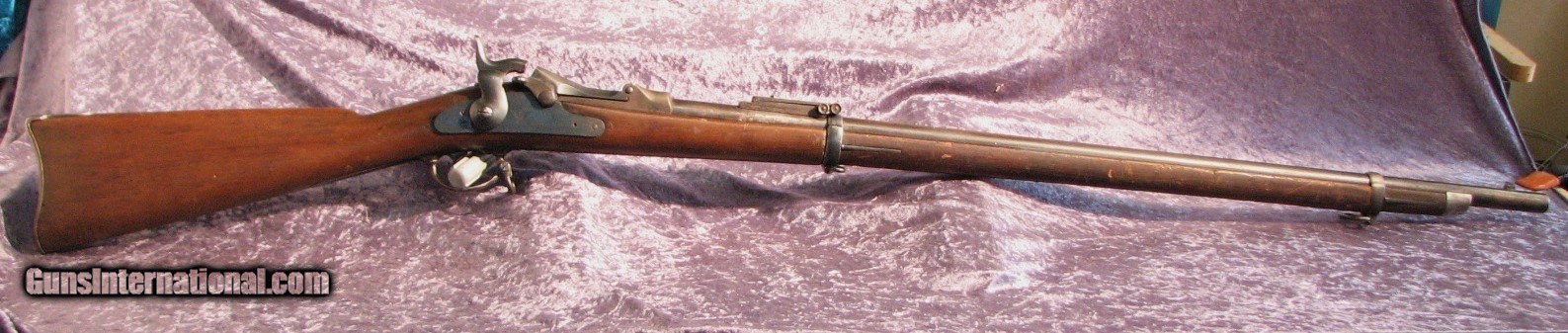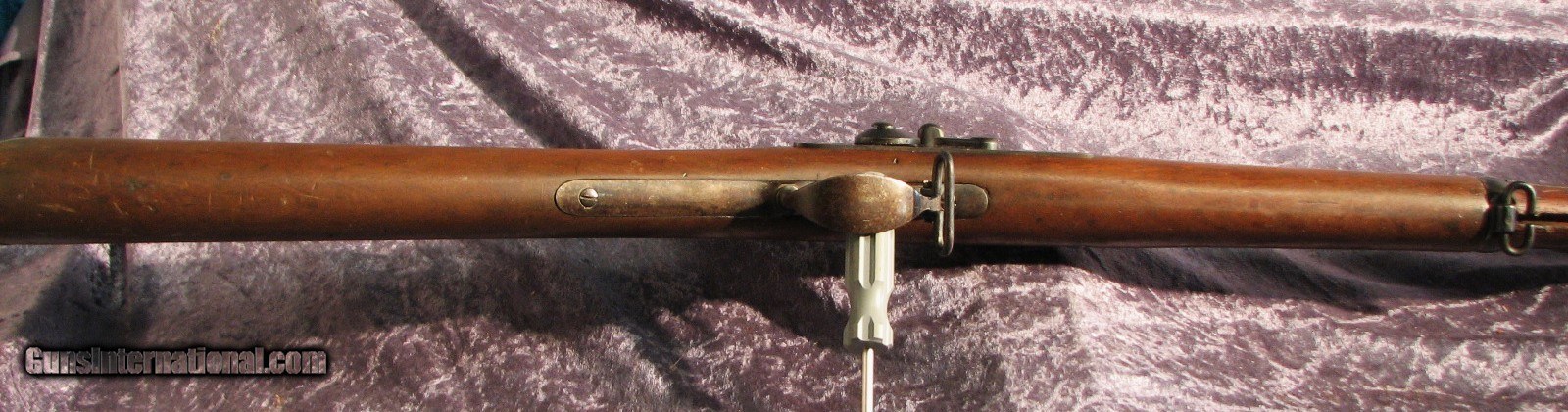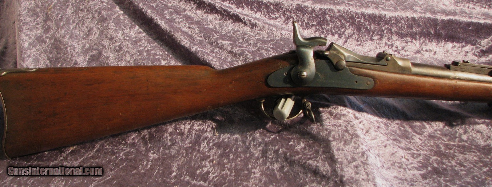 Description: This Trapdoor .45-70 is a 'shooter' not a collector. The bore is bright and shiny, the rest of the rifle is in good condition, and is fitted with the desirable Buffington rear sight. The stock has been repaired beneath the rear barrel band to correct the broken wrist on the original stock. There is some pitting on the exterior of the barrel, with barrel finish about 85% as snown in photos. Action and lock finish are good, barrel band finish varies, also as seen in photos If you want higher-definition photos, contact me. Shipping will depend on your location, though for a package this length will be around $70 in addition to the rifle cost.Rifle will ship in a hard case to an FFL or Curio and Relic holder only. Personal check, Bank Check or Money Order payment accepted, rifle will ship when check clears. SOLD Rifle Caliber: .45-70 Government Manufacturer: Springfield Armory Model: 1873 Serial Number: 305819 Barrel Length: 33 Condition: Very Good Metal Condition: Very Good Wood Condition: Very Good Bore Condition: Excellent Barrel Type: Factory round Action: Trapdoor Triggers: Single Butt Pad: Factory Finish: blued/case color Item Location: KS |