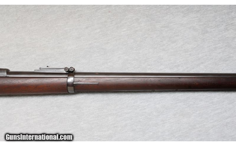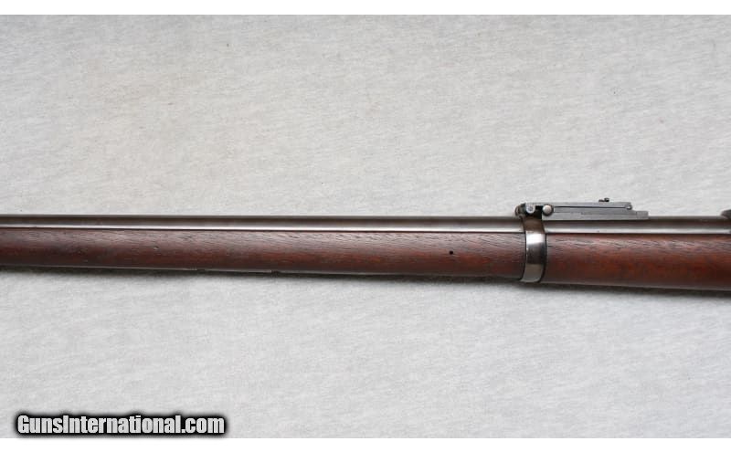 Description: US Springfield Model 1884 Trapdoor Single Shot chambered in 45-70 Government. This rifle features a 32 5/8-inch barrel with hooded pinned blade front sight and Buffington gradated leaf rear sight. Case colored low arch 1884 dated breech block. Springfield marked lock. 2 Band walnut stock. Left side of stock has a sharp cartouche with 1891 date. This rifle is in very fine condition as the barrel maintains over 90 percent blue and the receiver, lock and trigger guard retain 70% blue. .45-70 Government SOLD Antique: Yes Metal Condition: Excellent Wood Condition: Excellent Bore Condition: Bright with strong rifling Barrels: 32 5/8 Inches Triggers: Factory Stock Dimensions: LOP 13 1/4 Inches Fore End: Smoot walnut Butt Pad: Crescent plate with doot Sights: Hooded pinned blade front sight and Buffington gradated leaf rear sight Item Location: La Vista, NE |