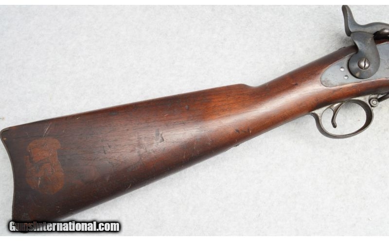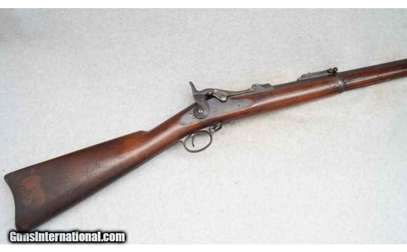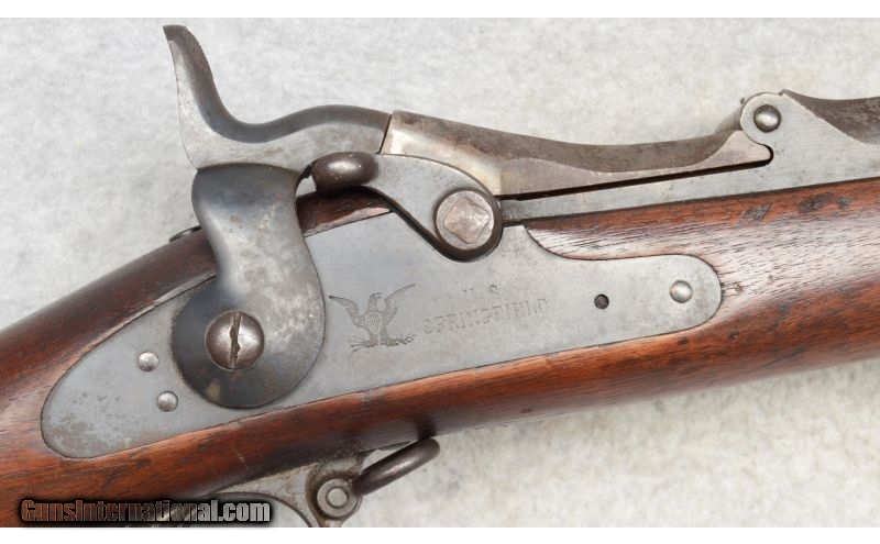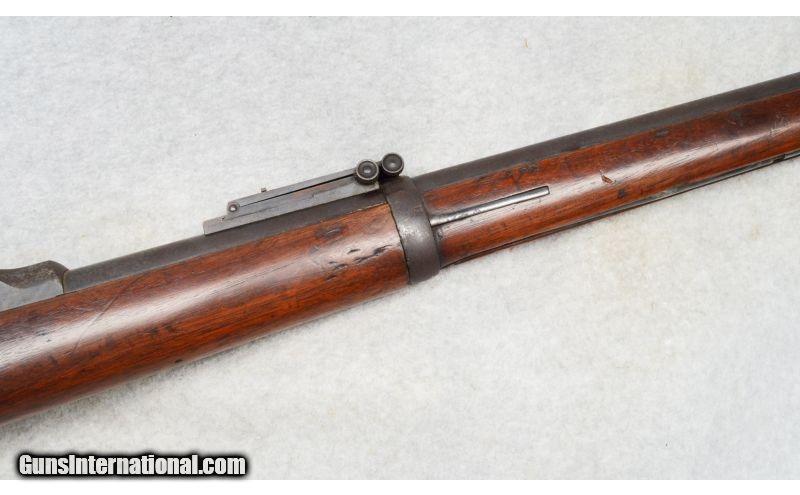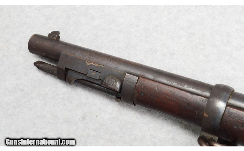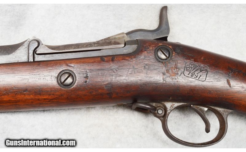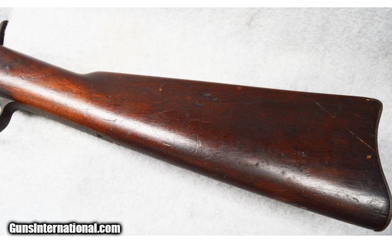Description: SOLD Antique: Yes Caliber Info: .45-70 Metal Condition: Fair with most of the finish remaining on the barrel and surface rust. Wood Condition: Good with handling marks. Bore Condition: Shing with some shadows and good rifling. Barrels: 32 Stock: Smooth walnut. Fore End: Smooth walnut. Butt Pad: Steel. Weight: 9-lbs., 5-ozs. Sights: front blade, rear blade and flip-up ladder sight. Item Location: Fort Worth, TX |