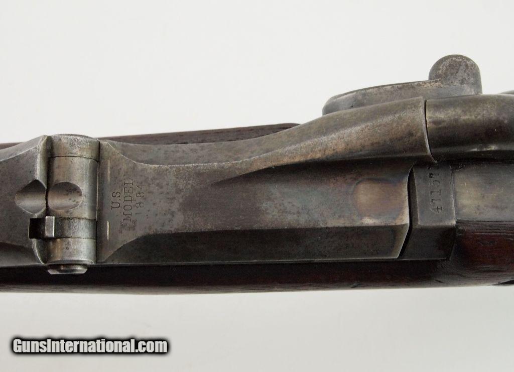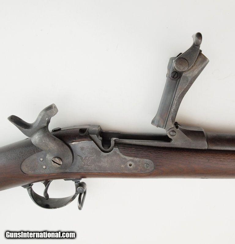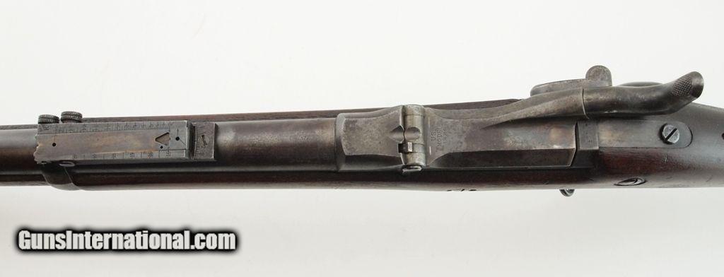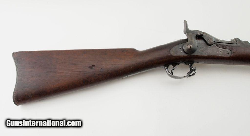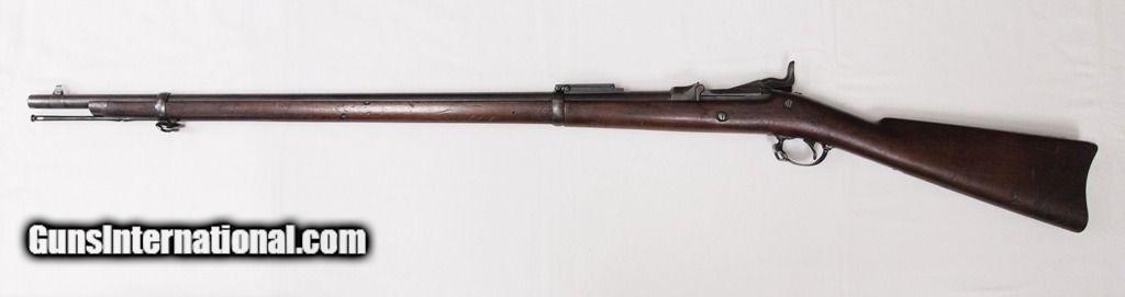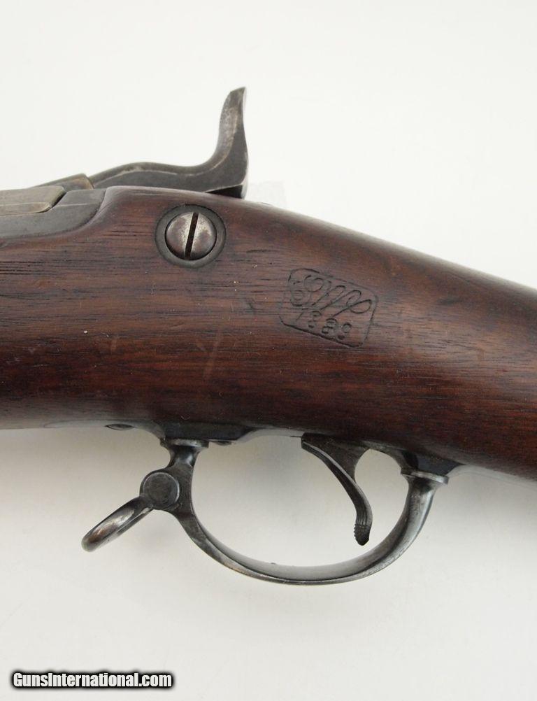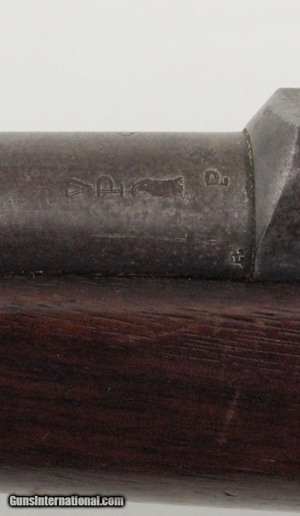 Description: Springfield 1884 Trapdoor, .45-70, 33" bbl, shiny bore, good rifling, adjustable rear sight, blade front sight, nice wood stock with some handling marks and a cartouche on left side, fitted with a metal butt plate. The left side of the barrel is marked with “V P (Eagle head) P", top of barrel with an "A", top strap marked with a "U" on left side, front strap has a "U" on the right side, right side action plate marked "US Springfield" with Eagle Crest, and the trapdoor is marked with "U.S. MODEL 1884" and the serial number is on the top of the action. This is a very nice rifle. Add 3% for Credit Card Shipping $35.00 SOLD |