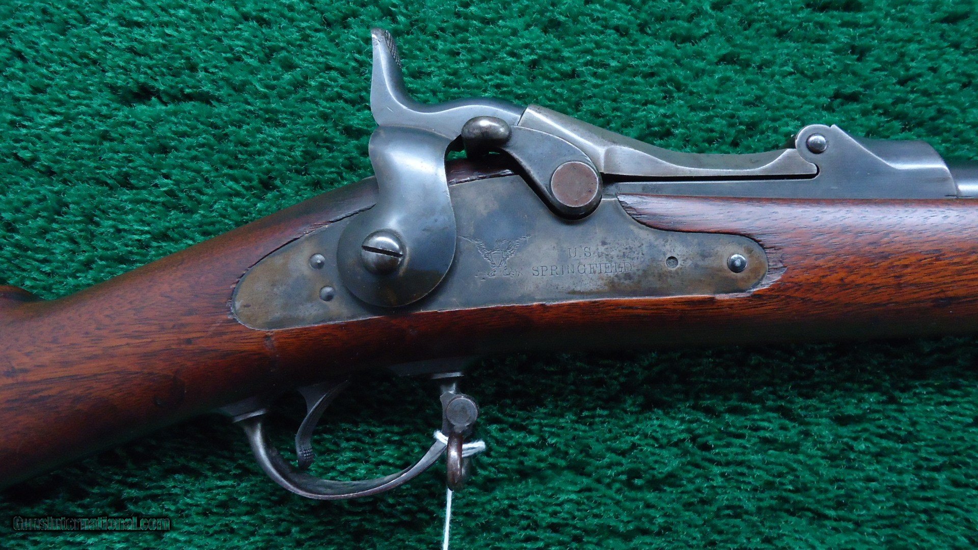 Description: Trapdoor is dated 1873. Wood is in excellent condition with visible cartouche. Fine functioning action. Bore is excellent. Correct sights and complete with original bayonet, correct sling swivels and correct cleaning rod. Leroy Merz Antique Firearms specializes in antique and vintage Winchesters and other fine American firearms. Since 1965 Mr. Merz has taken part in the world of firearms and has been a contributor to many well known reference books. We have hundreds of additional guns in every price range at our home online. Search for Merz Antiques in google. SOLD Antique: Yes |