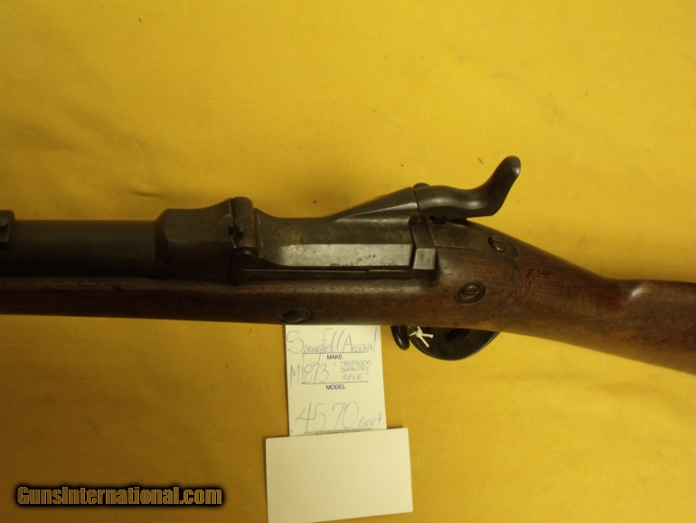 Description: Springfield Armory, 1873 " Trapdoor Infantry Rifle", .45-70 Gov't.,32' bbl., 9 lb 0 oz.,13 1/4" L.O.P. SOLD |