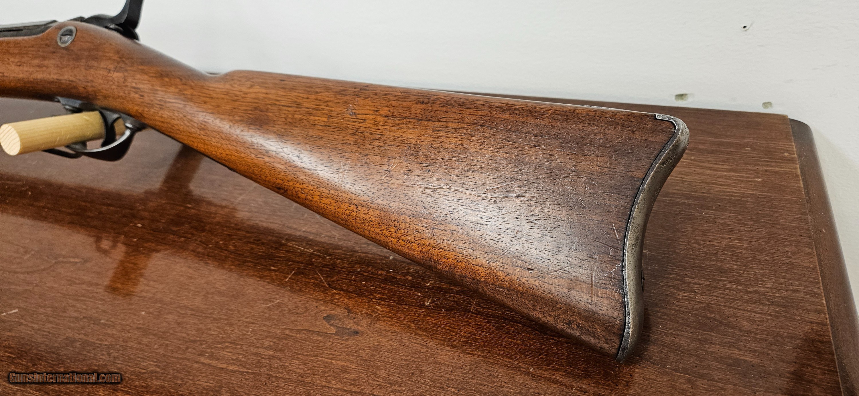Description: Up for sale is a Springfield Armory 1873 Trapdoor chambered in .45-70. This rifle was manufactured in 1889. Internet sales are managed 10am to 6pm MST M-F. Our inventory listed for sale is not live, meaning just because you click “BUY NOW” doesn’t mean you have purchased the firearm. We consider a sale final once we have received payment. All our listings are also available for sale in our retail store. Shipping starts at $75 for long guns and $50 for handguns We ship to the contiguous United States and Alaska, with some state law restrictions. SOLD Antique: Yes Rifle Caliber: .45-70 Government Manufacturer: Springfield Armory Model: 1873 Item Location: Lakewood, Co |