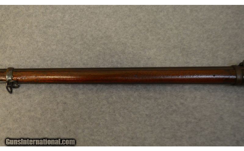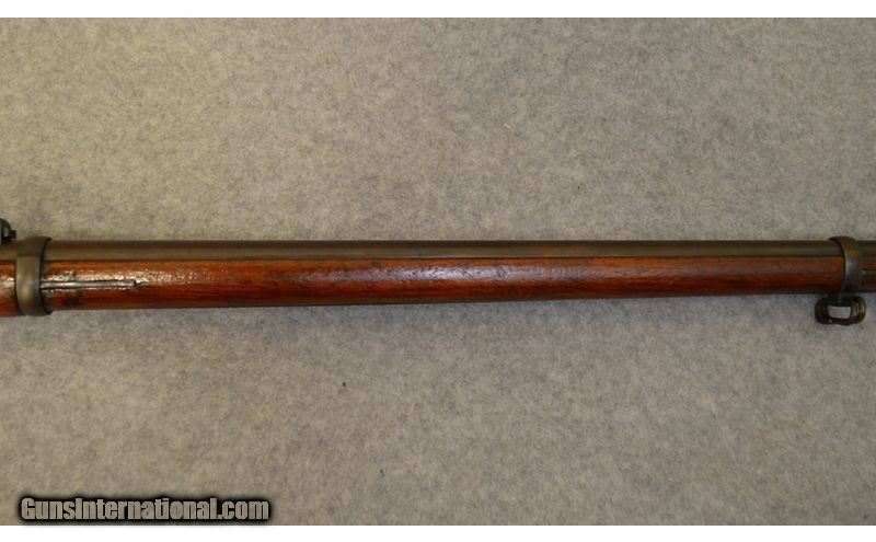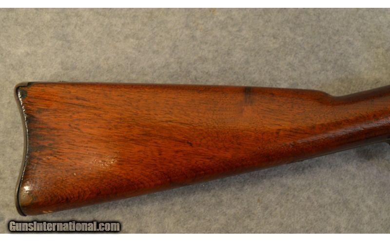 Description: This is a hinged breech block Springfield Armory 1884 "Trapdoor" rifle chambered in .45-70. It has 32.5" blued barrel and fixed blade front sight and ladder style rear sights. It has matching wooden fore end and stock that are in very good condition with some scratches. Metal is also in very good condition with some markings. The bore is bright and shiny. .45-70 SOLD Antique: Yes Chambers: Hinged breech block Metal Condition: Very good with some markings. Wood Condition: Very good with some scratches. Bore Condition: Bright and shiny. Barrels: 32.5" blued barrel. Triggers: Single curved trigger. Stock Dimensions: 13" LOP. Butt Pad: Blued metal back plate. Weight: 9 lbs. Sights: Fixed blade front sight and ladder style rear sights. Item Location: Huntsville, AL |