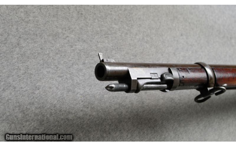 Description: This is a great example of a model 1884 Trapdoor manufactured in 1892. Typical of the 1884, it has the integratedrod bayonet/cleaning rod that can be pulled out or retracted with release springs near the muzzle. What a wonderful piece of history, these rifles saw use during the "Indian Wars" of the late 1800s and early 1900s. Don't miss your chance to have your very own. .45-70 SOLD Antique: Yes Caliber Info: .45-70 Government. Chambers: Single shot trapdoor action. Metal Condition: Good, heavy patina. Wood Condition: Good, typical dings, dents, scratches. Barrels: 32" blued. Triggers: Single blued trigger. Stock Dimensions: 13 1/2" LOP Fore End: Nearly full length stock. Butt Pad: Factory crescent butt with accessory compartment. Sights: Blade front and Buffington rear sight. Item Location: Dundee, MI |